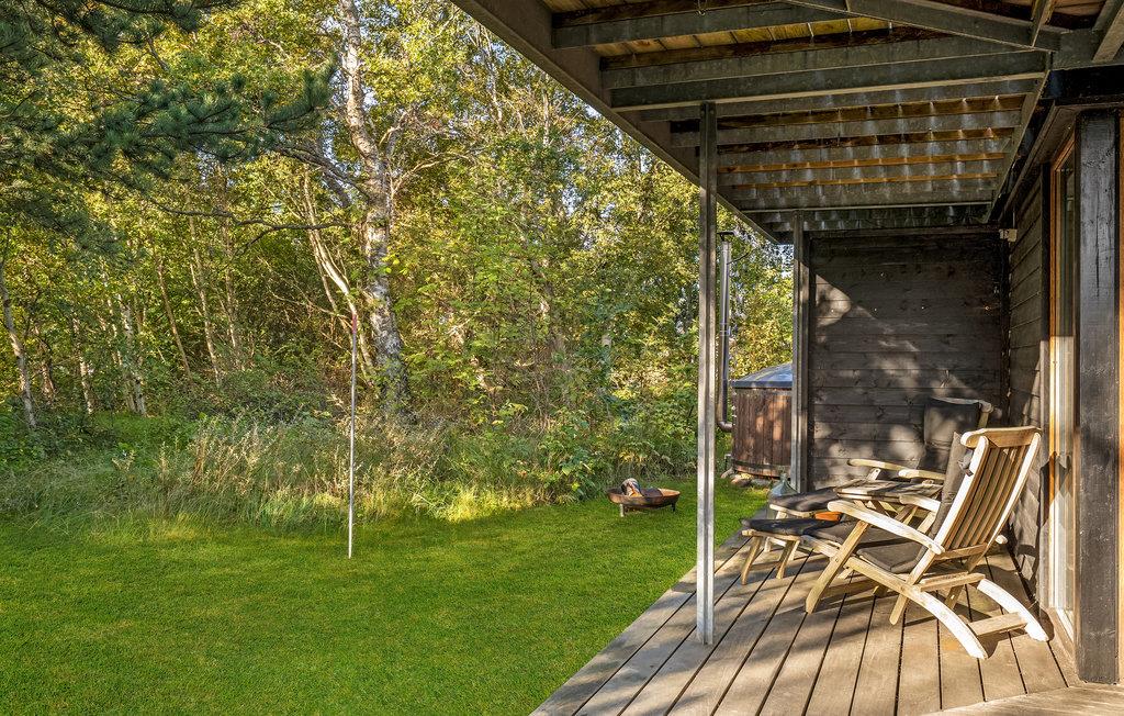 Dette unikke feriehus fortryller allerede ved første øjekast. Husets to etager byder på en vidunderlig kombination af skønne terrasser, spabad, brændeovn og moderne møbler af høj kvalitet. Udsigten til den grønne, ugenerte grund og nærheden til stranden fuldender ferieoplevelsen her. Afslappede feriedage kan tilbringes med at sole sig, læse og spise lækker mad på terrasserne, og nyde en drink i udespaet om aftenen.