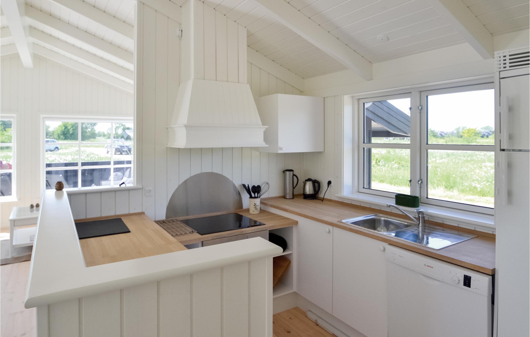 Huset er lyst og venligt indrettet med gode soveværelser og to badeværelser. Fra køkkenet er der udsigt over markerne, og fra stuen er der udgang til den dejlige terrasse.