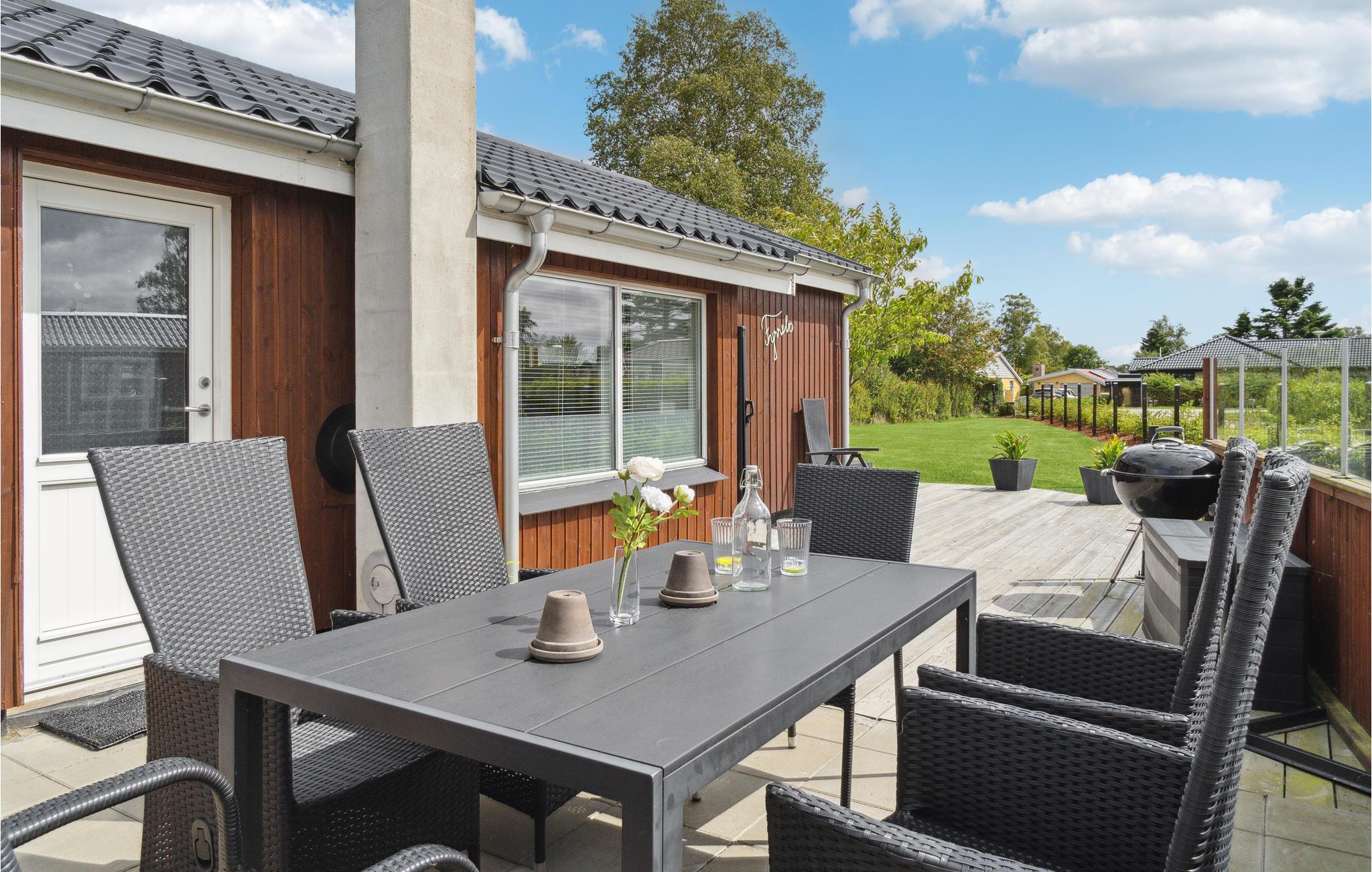 Børnene og deres kæledyr vil elske den store sommerhusgrund. Den øst- og sydvendte terrasse med havemøbler og grill er et vidunderligt sted at have en grillaften eller en lækker morgenmad. Bag huset finder I en lukket hundegård.