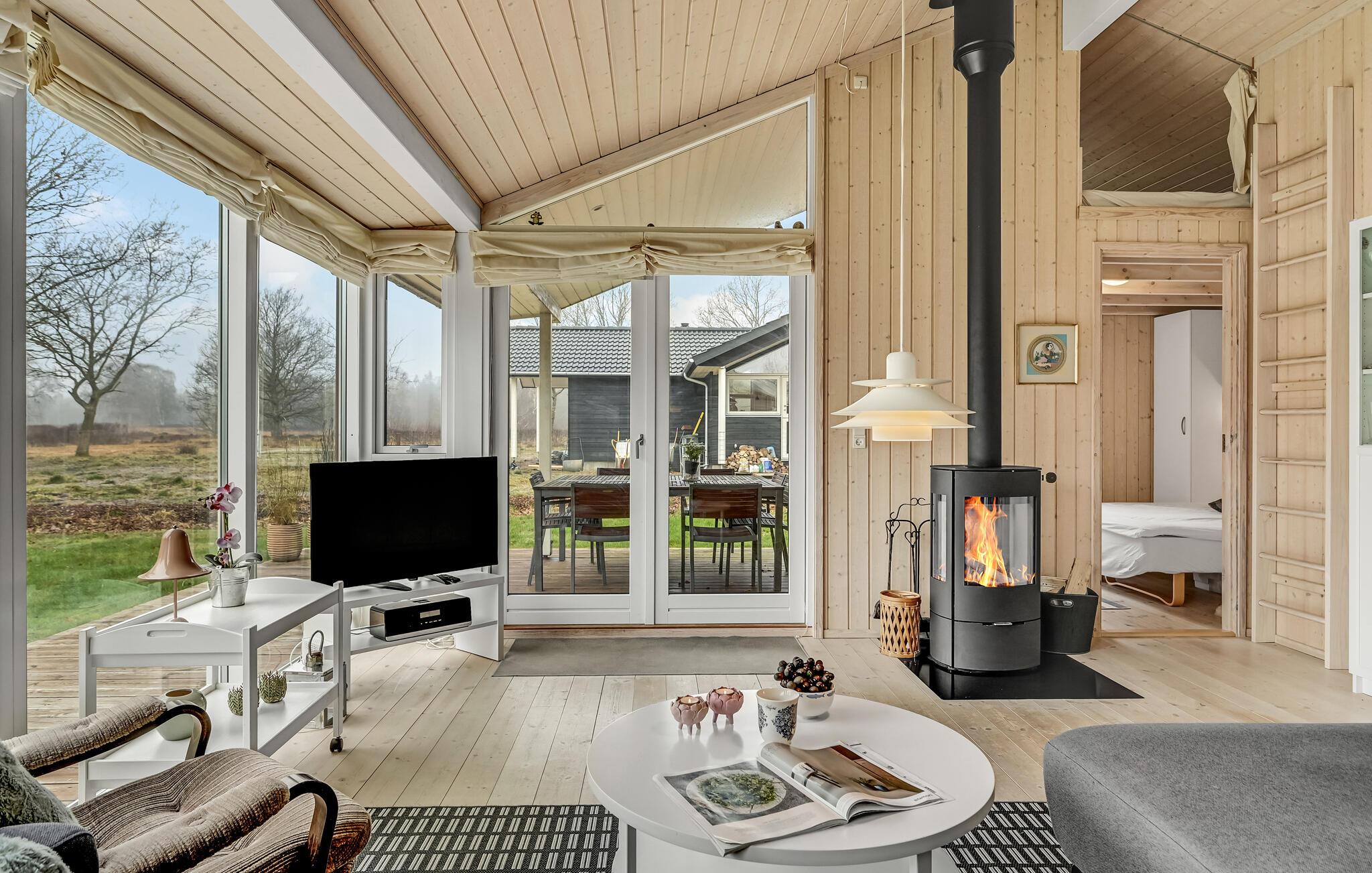 Der er en helt særlig stemning i dette komfortable sommerhus, som emmer af lys og stilfulde indretningsløsninger. Giv jer i kast med lækre ferieretter i det moderne køkken og nyd dagens måltider i den hyggelige spiseplads med udsigt til det grønne. Tænd op i brændeovnen og lyt til flammernes knitren, mens I læser en god bog eller tilbringer en hyggelig spilaften med familien.