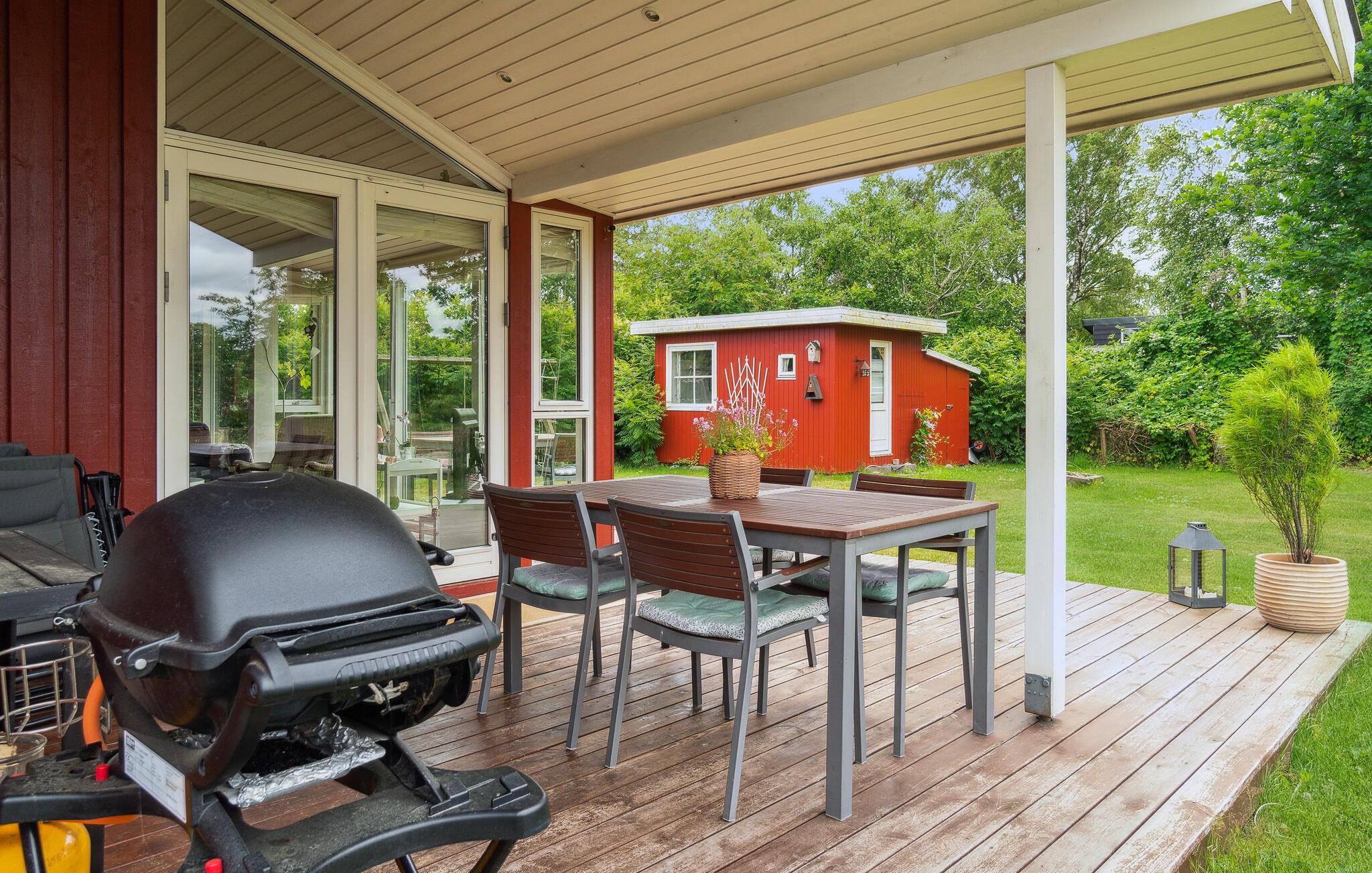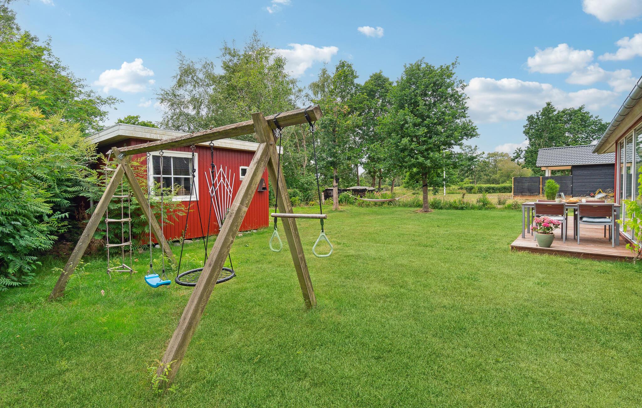 Nyd en kop kaffe i morgensolen og tag plads på den indbydende træterrasse. Børnene kan kaste sig over de farverige legemuligheder, mens I klargør grillen til en stemningsfuld middag under åben himmel.