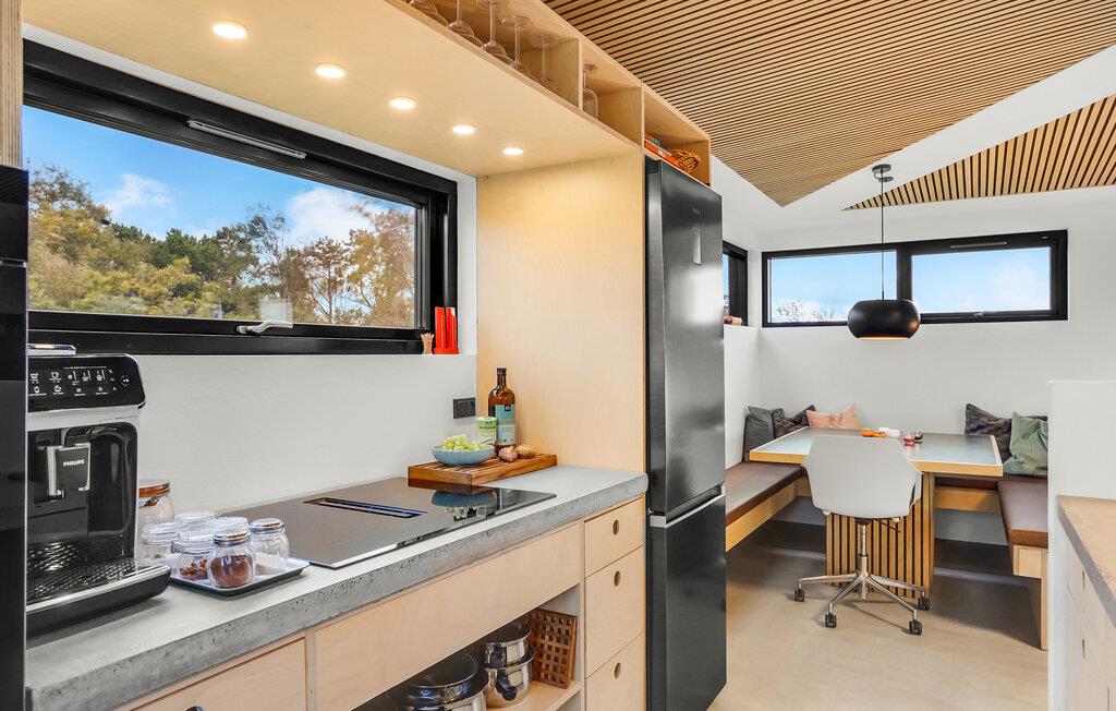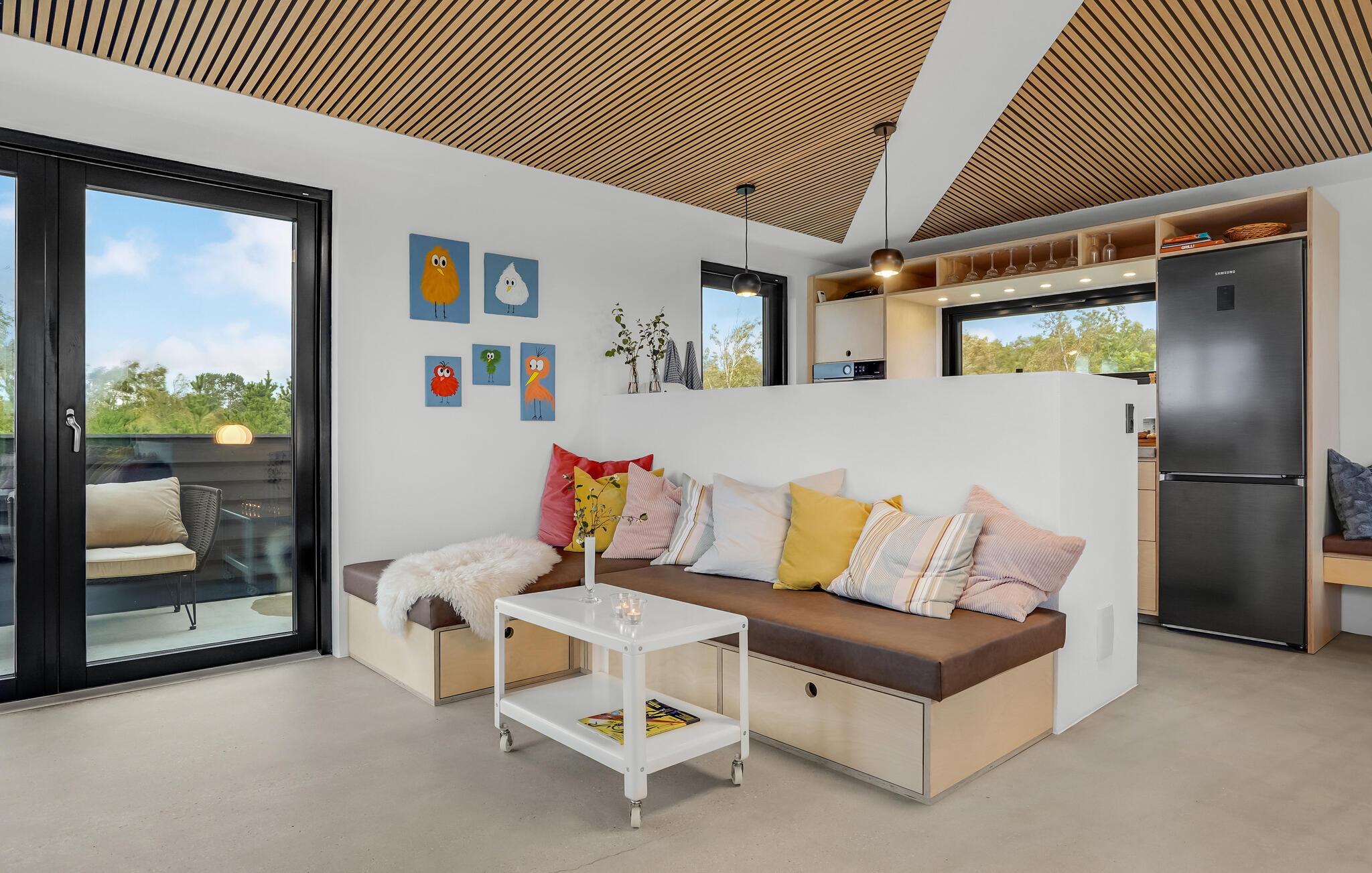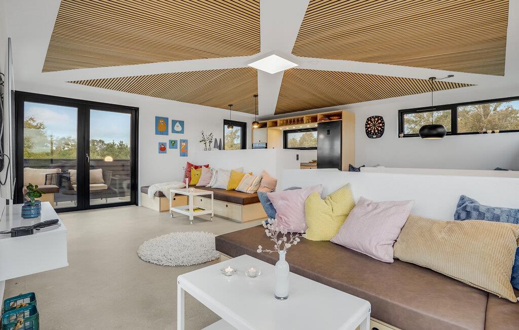 Feriestemningen indfinder sig lynhurtigt i dette skønne feriehus, som er noget helt særligt. Her lukker I døren op til en flot, moderne indretning med masser af charmerende detaljer, og der er god plads, for huset er fordelt over to etager.