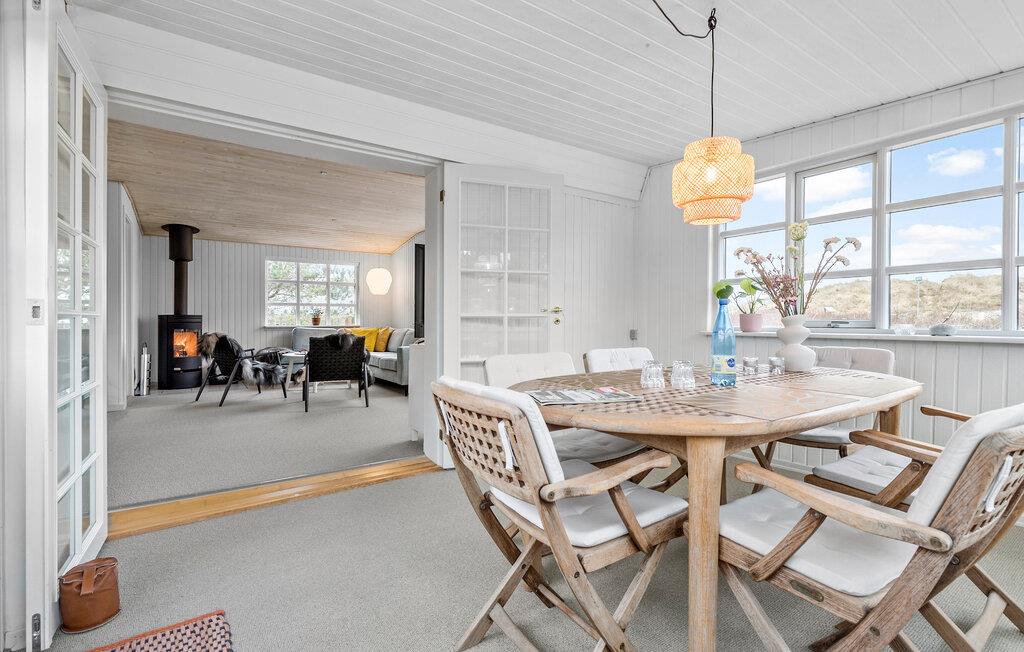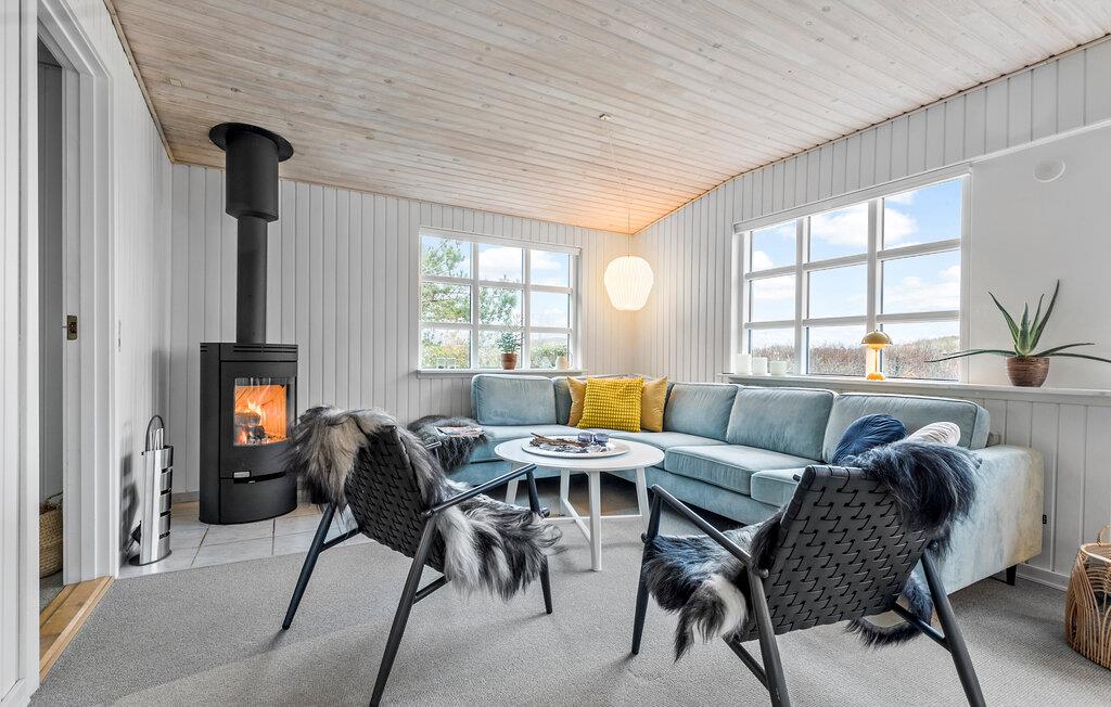 Dette lyse og hyggelige feriehus lægger op til harmoniske dage i et idyllisk klitlandskab tæt på havet. Glæd jer til afslappede madlavningsaftener i det moderne køkken og stemningsfulde måltider. Tænd op i brændeovnen, og hyg jer i sofaen til en spilleaften eller en spændende film.
