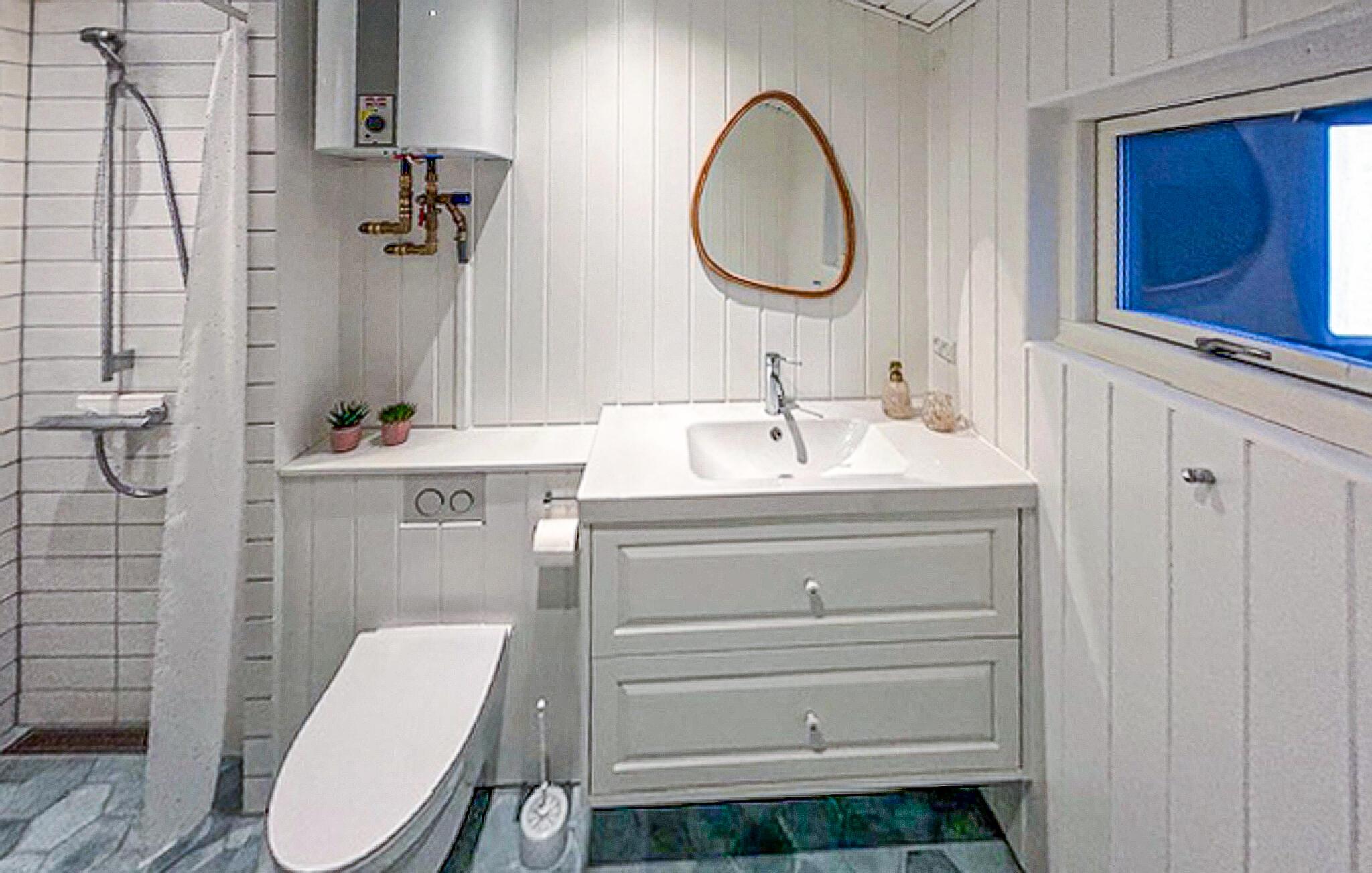 Badeværelse (nr. 1) - WC. Varmt og koldt vand. Bruser