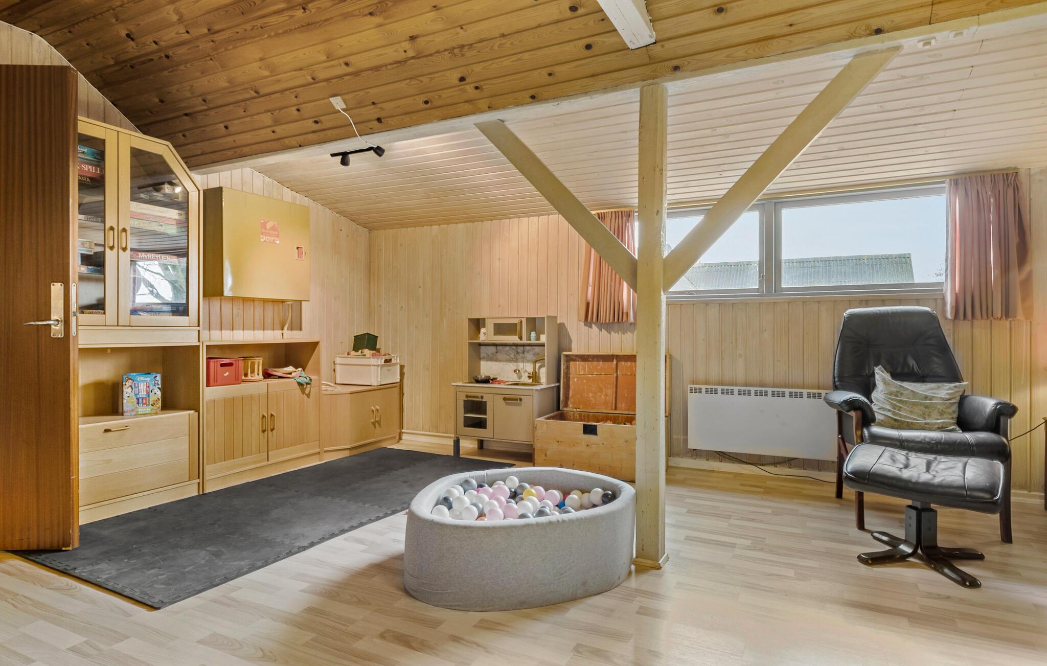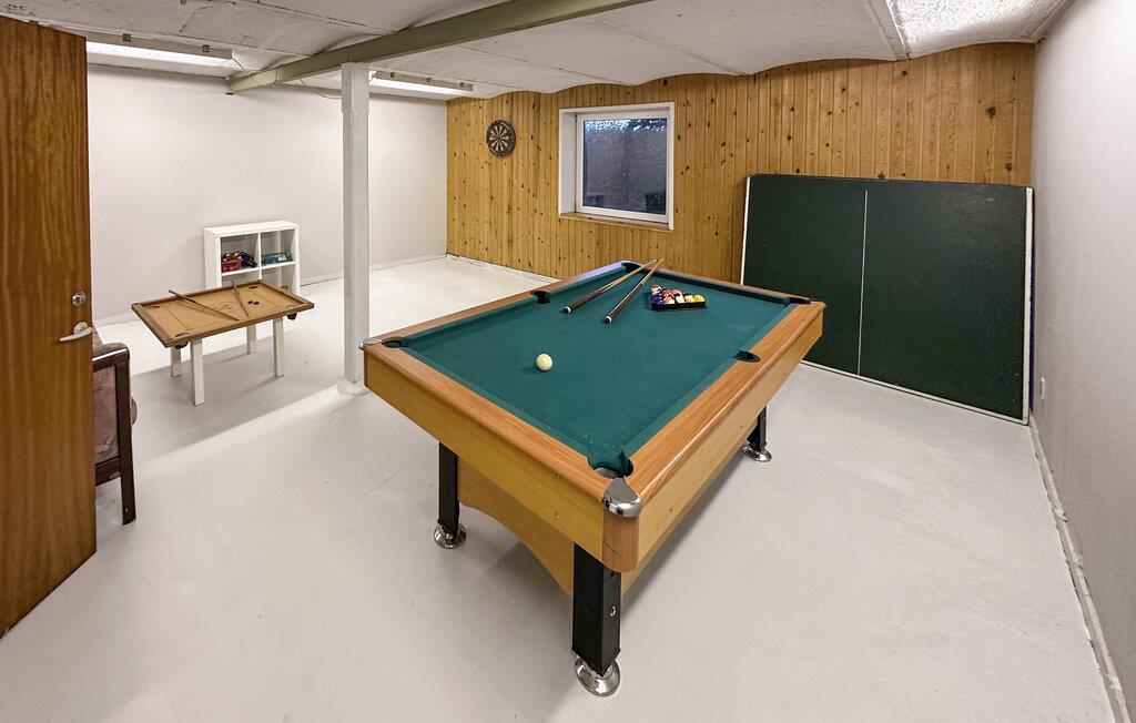 Dette rummelige sommerhus i Grenå er perfekt til store grupper eller familier, der ønsker at tilbringe afslappende og sjove dage sammen. Den praktiske indretning giver plads til alle, mens bordtennis- og poolbordet giver et godt afbræk til sofastunderne. Børnene kan boltre sig i legeområdet eller på legepladsen i haven, mens I kan bruge grillpladsen eller terrassen til afslappende timer. Her er noget for enhver smag – et sted, hvor man simpelthen har det godt.