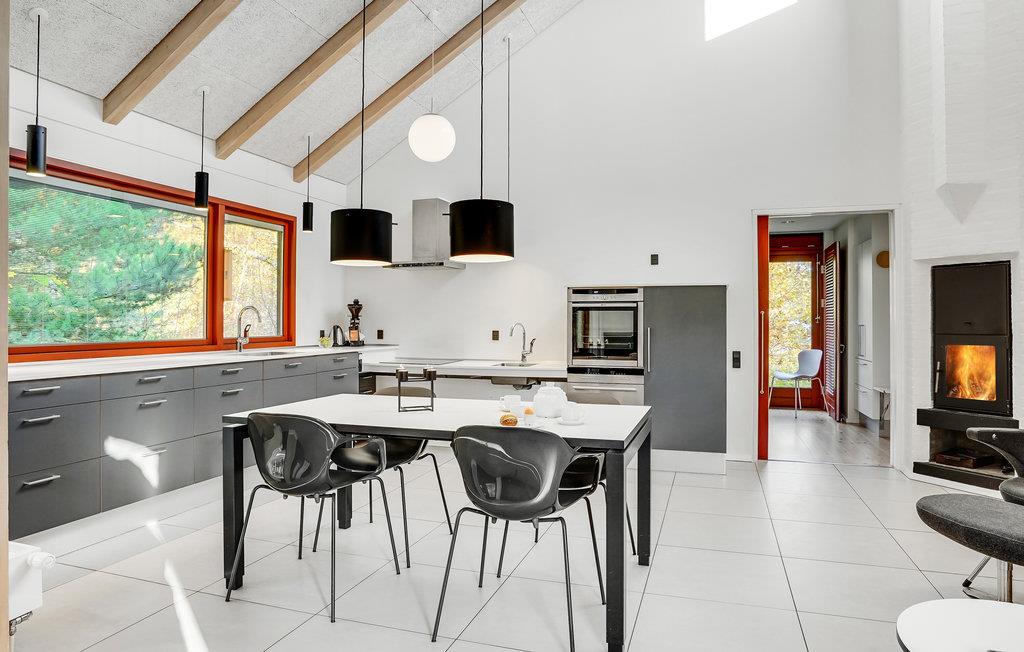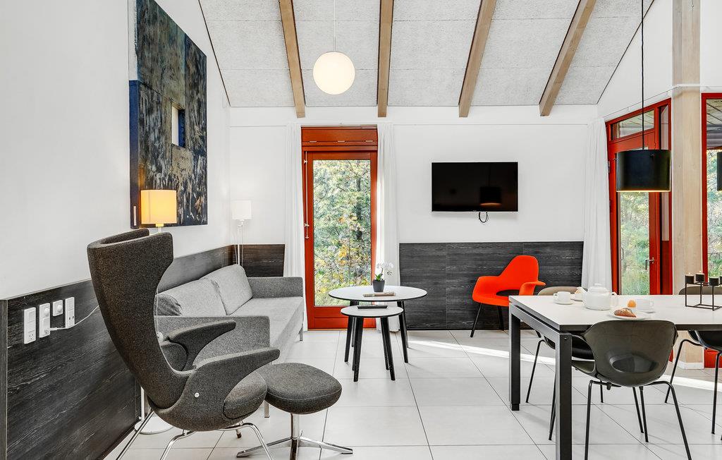 Dette lyse, indbydende og praktiske sommerhus byder op til fem gæster og et barn velkommen. Det har en hyggelig stue med køkken. Her kan I slappe dejligt af foran brændeovnen. Der strømmer dejligt meget lys ind gennem de store vinduespartier.
