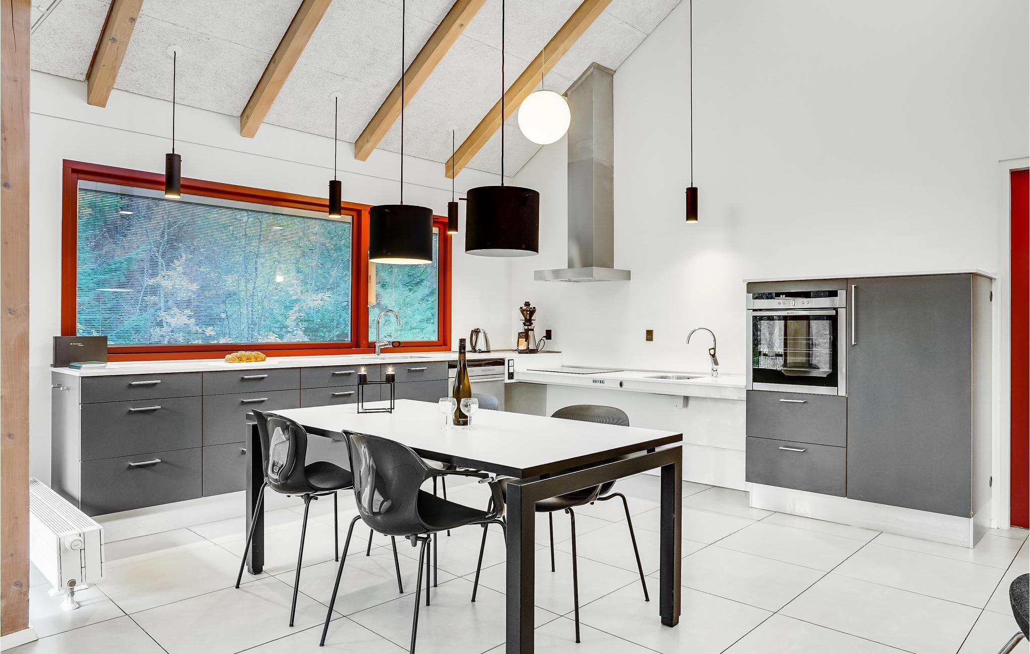 Dette lyse, indbydende og praktiske sommerhus byder op til fem gæster og et barn velkommen. Det har en hyggelig stue med køkken. Her kan I slappe dejligt af foran brændeovnen. Der strømmer dejligt meget lys ind gennem de store vinduespartier.