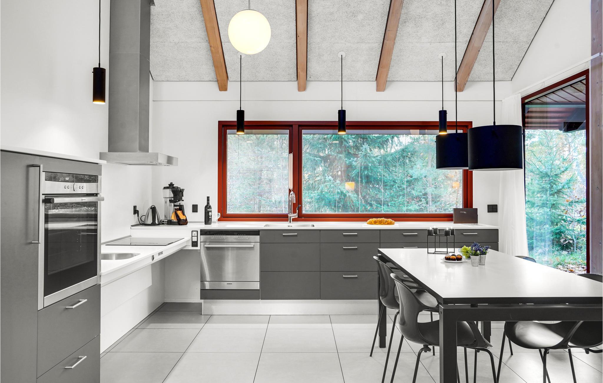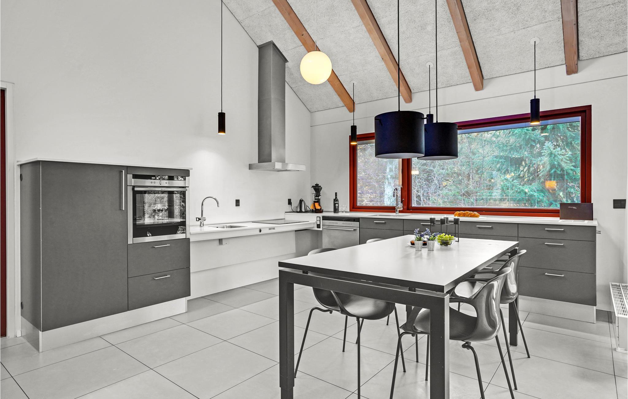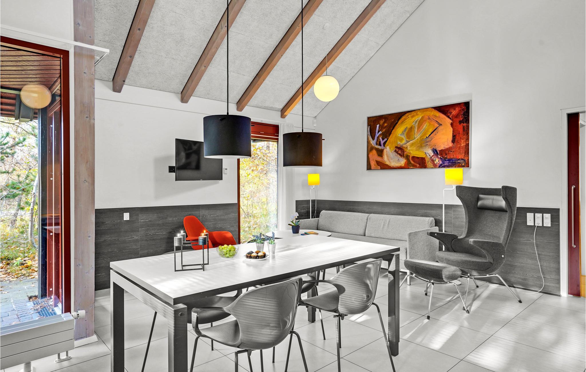 Dette lyse, indbydende og praktiske sommerhus byder op til fem gæster og et barn velkommen. Det har en hyggelig stue med køkken. Her kan I slappe dejligt af foran brændeovnen. Der strømmer dejligt meget lys ind gennem de store vinduespartier.