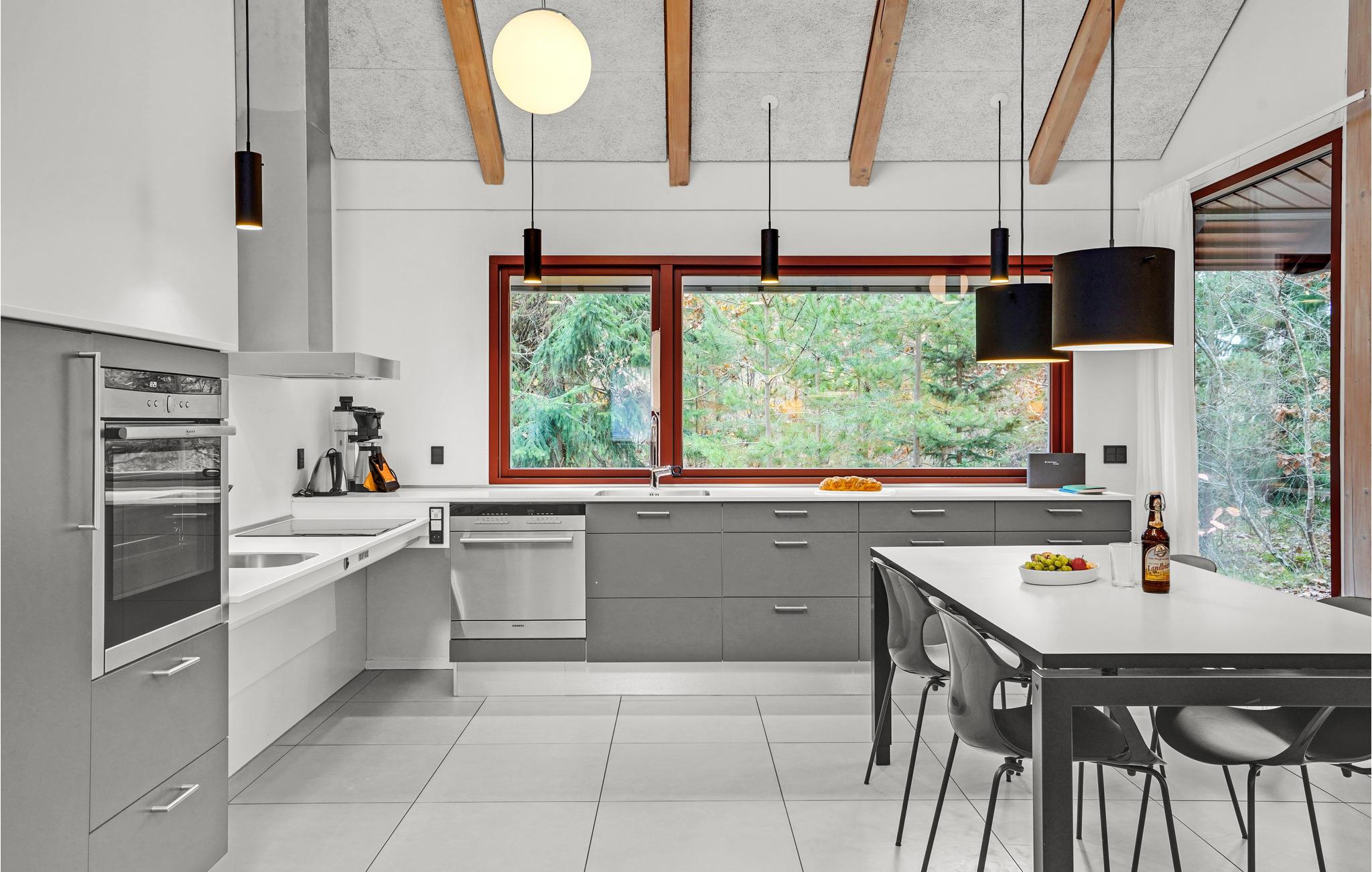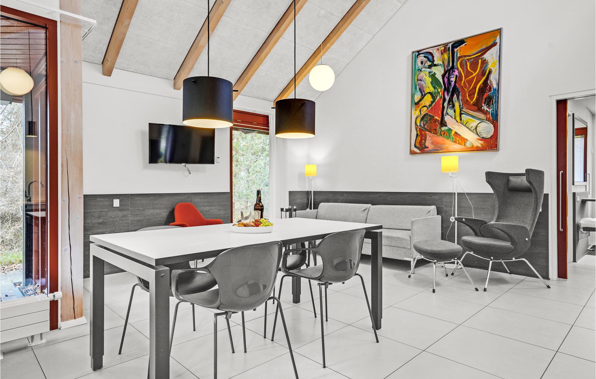 Dette lyse, indbydende og praktiske sommerhus byder op til fem gæster og et barn velkommen. Det har en hyggelig stue med køkken. Her kan I slappe dejligt af foran brændeovnen. Der strømmer dejligt meget lys ind gennem de store vinduespartier.