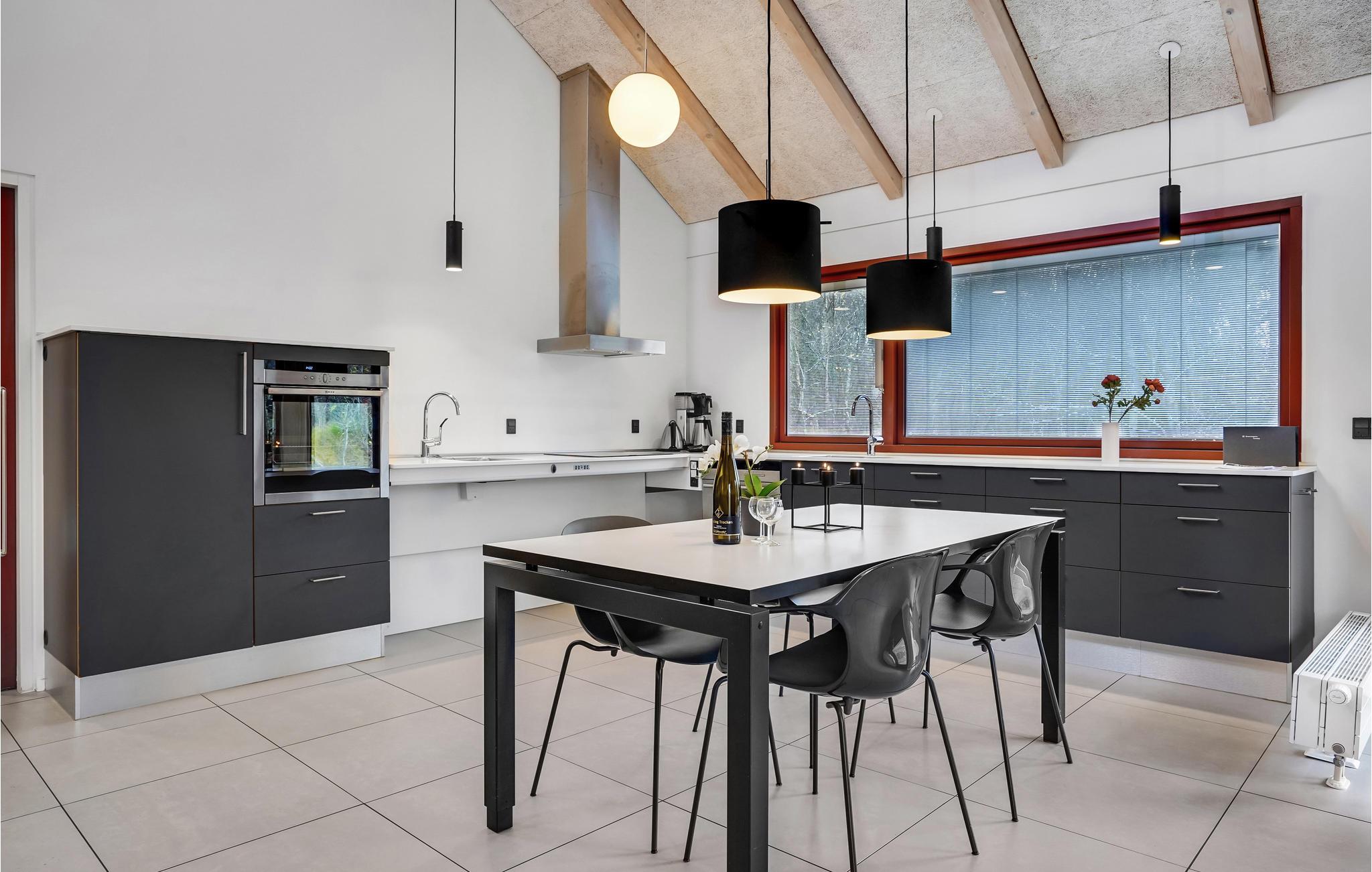 Dette lyse og venlige feriehus kan rumme op mod fem gæster og et lille barn. Huset er praktisk indrettet med gode detaljer som et stort opholdsrum, hvor I både kan sammensætte dagens menu og slappe af, mens ilden knitrer i brændeovnen. Vinduespartierne sørger for et skønt, naturligt lysindfald, hvilket giver jer ekstra behagelige rammer om indendørshyggen.