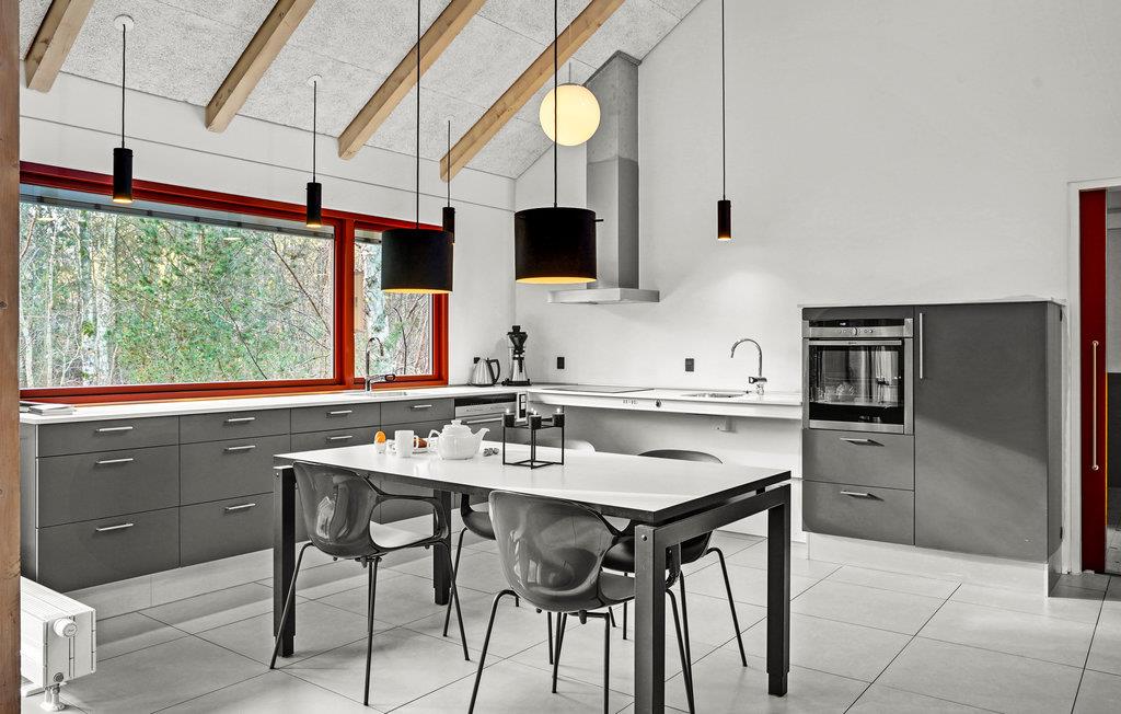 Dette lyse og venlige feriehus kan rumme op mod fem gæster og et lille barn. Huset er praktisk indrettet med gode detaljer som et stort opholdsrum, hvor I både kan sammensætte dagens menu og slappe af, mens ilden knitrer i brændeovnen. Vinduespartierne sørger for et skønt, naturligt lysindfald, hvilket giver jer ekstra behagelige rammer om indendørshyggen.