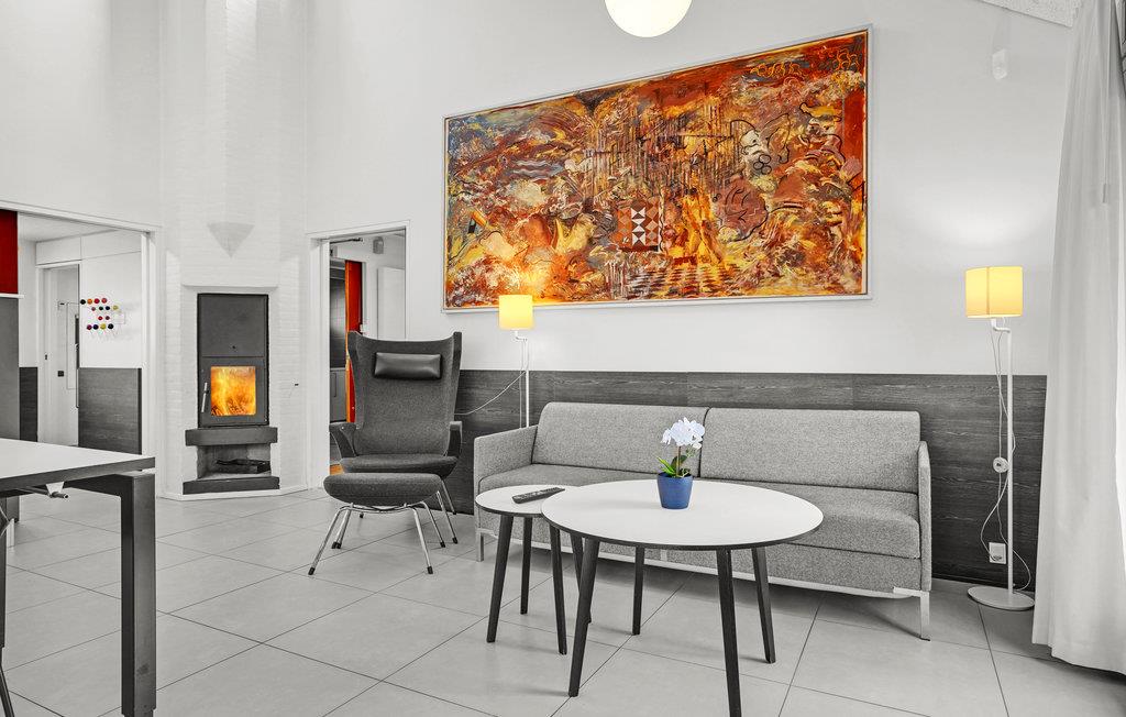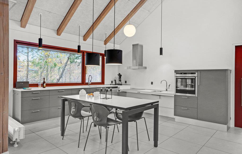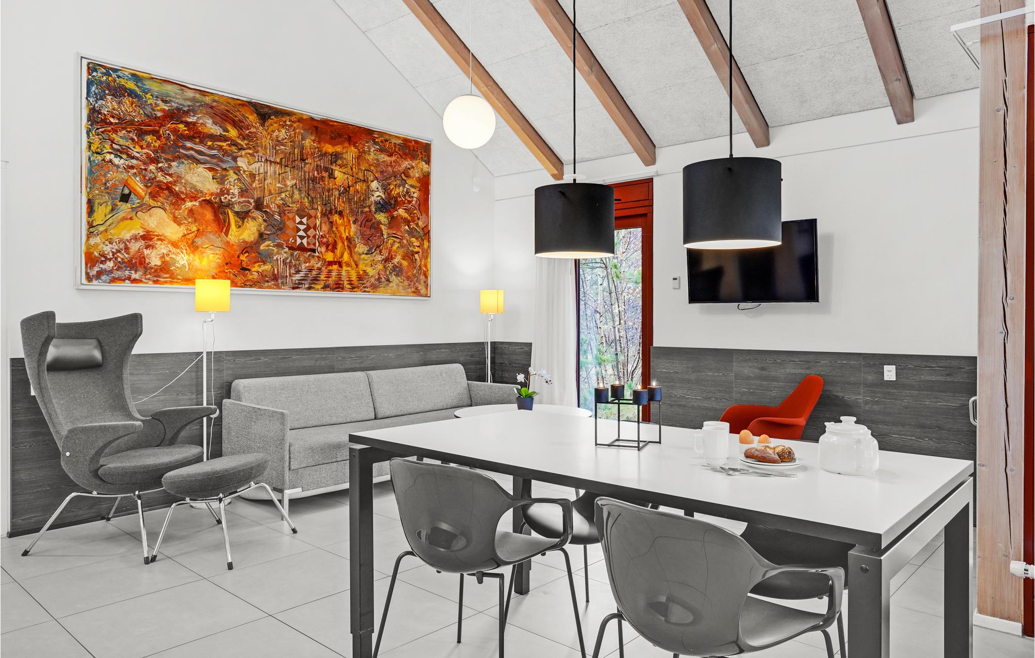 Dette lyse og venlige feriehus kan rumme op mod fem gæster og et lille barn. Huset er praktisk indrettet med gode detaljer som et stort opholdsrum, hvor I både kan sammensætte dagens menu og slappe af, mens ilden knitrer i brændeovnen. Vinduespartierne sørger for et skønt, naturligt lysindfald, hvilket giver jer ekstra behagelige rammer om indendørshyggen.