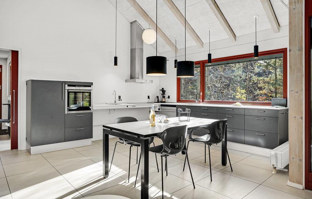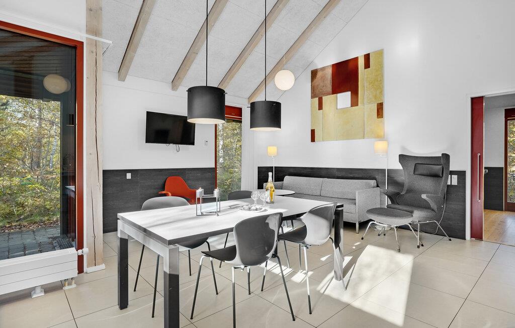 Dette lyse og venlige feriehus kan rumme op mod fem gæster og et lille barn. Huset er praktisk indrettet med gode detaljer som et stort opholdsrum, hvor I både kan sammensætte dagens menu og slappe af, mens ilden knitrer i brændeovnen. Vinduespartierne sørger for et skønt, naturligt lysindfald, hvilket giver jer ekstra behagelige rammer om indendørshyggen.