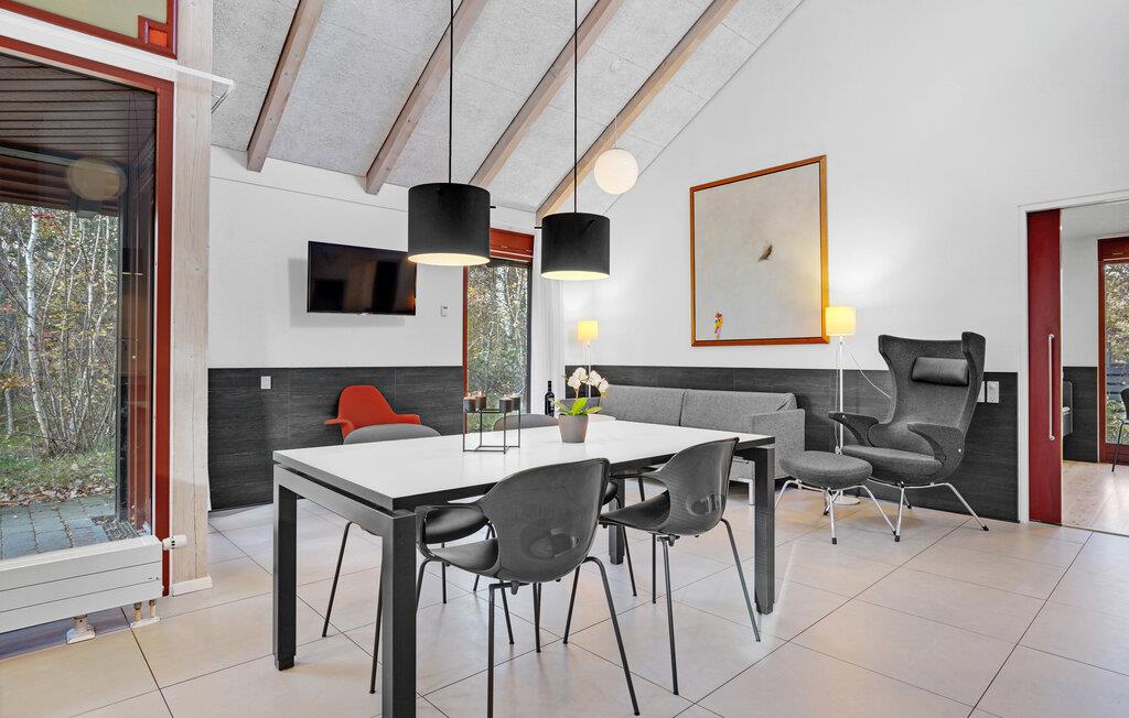 Dette lyse, indbydende og praktiske sommerhus byder op til fem gæster og et barn velkommen. Det har en hyggelig stue med køkken, hvor I kan slappe af foran brændeovnen. Der strømmer dejligt meget lys ind gennem de store vinduespartier.