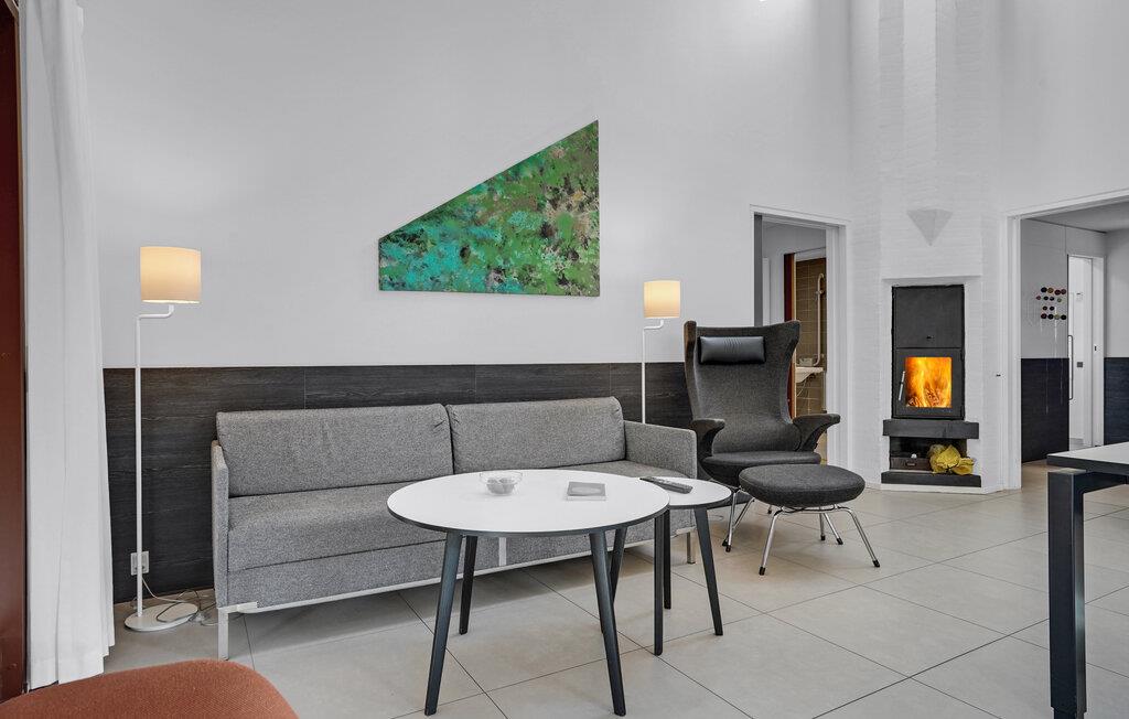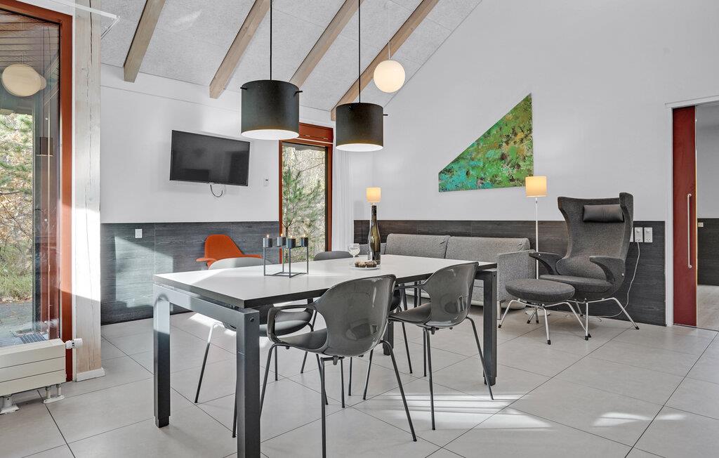 Dette lyse, indbydende og praktiske sommerhus byder op til fem gæster og et barn velkommen. Det har en hyggelig stue med køkken, hvor I kan slappe af foran brændeovnen. Der strømmer dejligt meget lys ind gennem de store vinduespartier.
