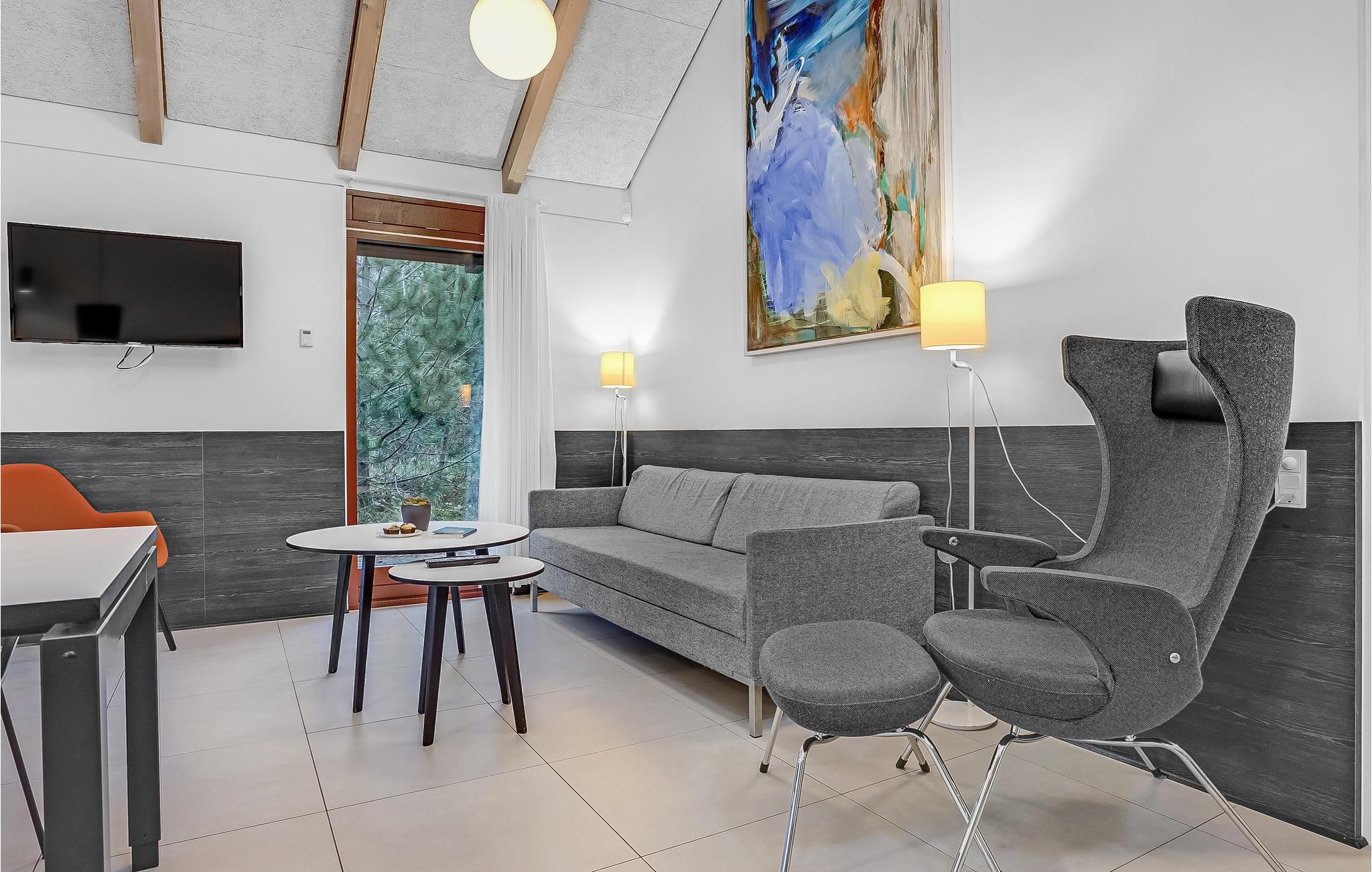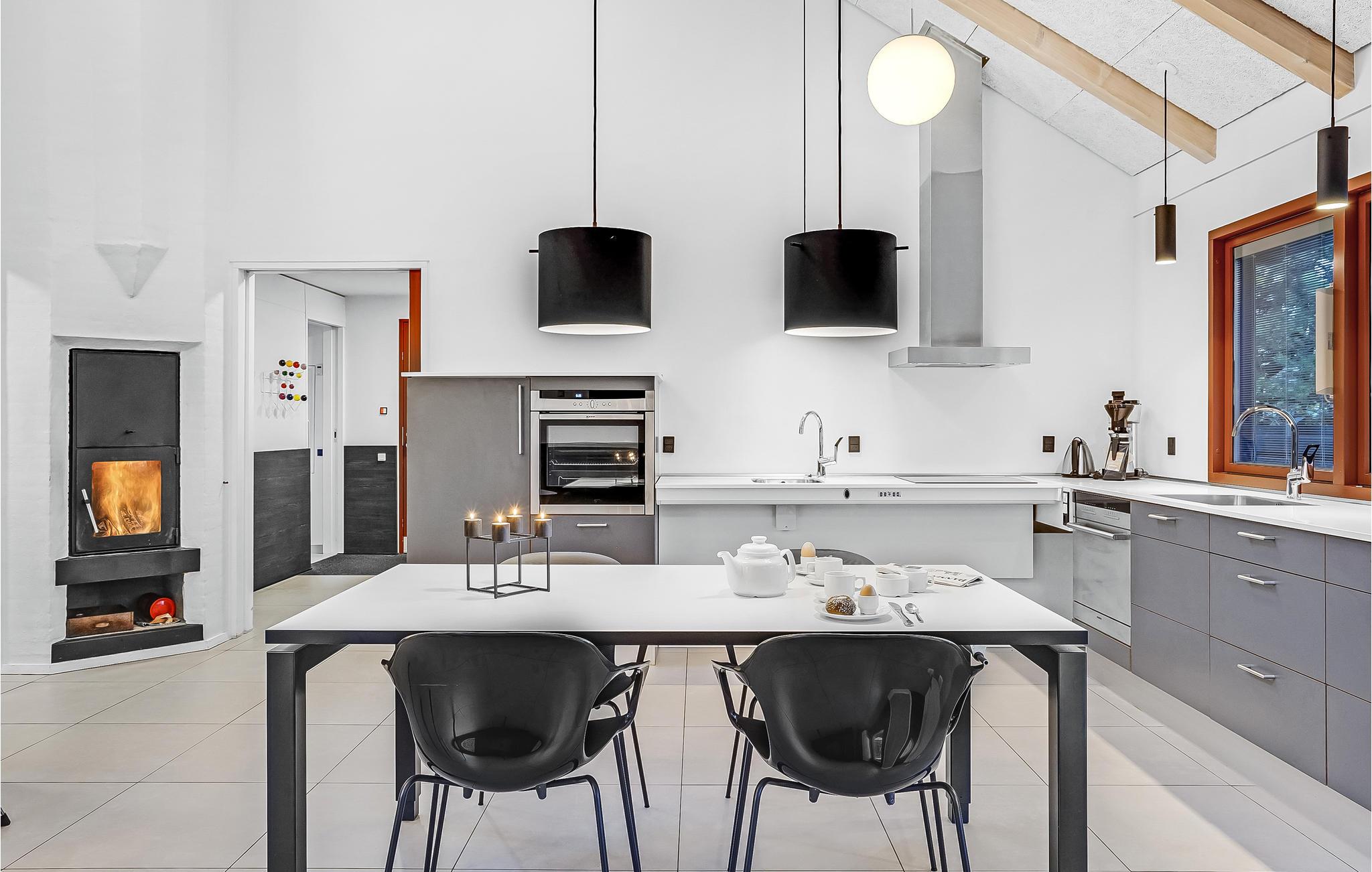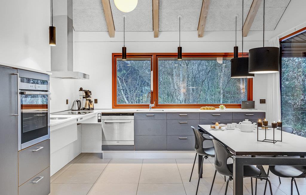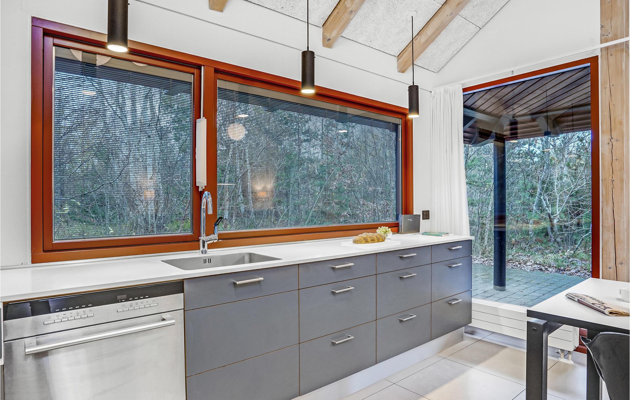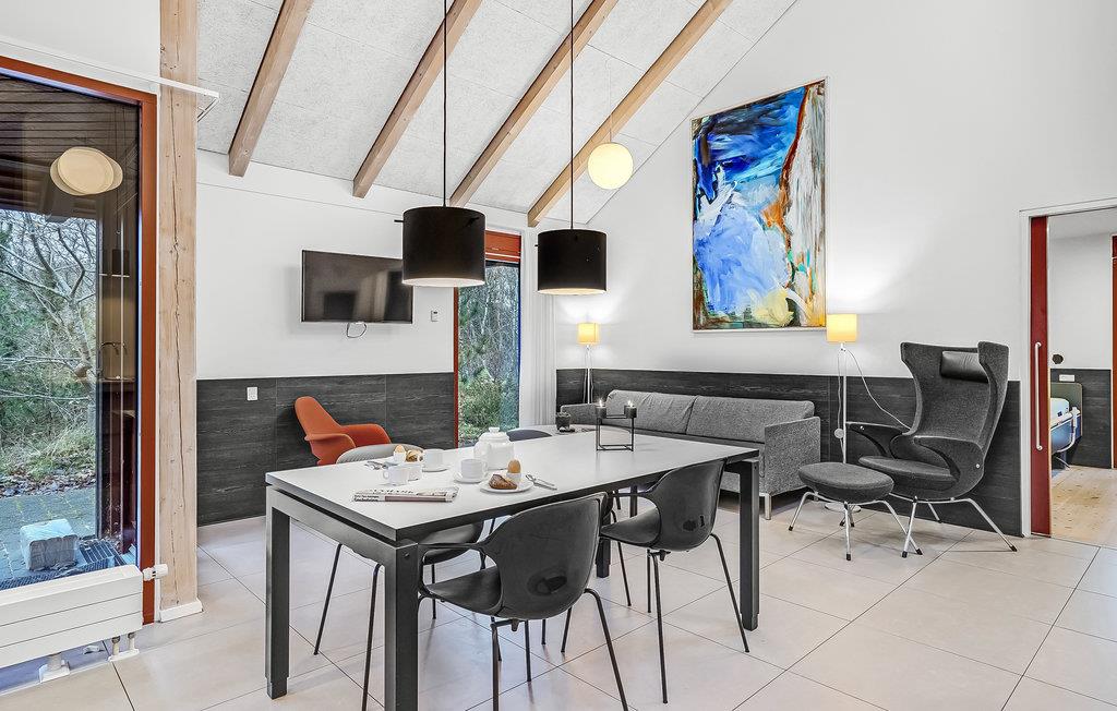 Dette lyse, indbydende og praktiske sommerhus byder op til fem gæster og et barn velkommen. Det har en hyggelig stue med køkken, hvor I kan slappe af foran brændeovnen. Der strømmer dejligt meget lys ind gennem de store vinduespartier.