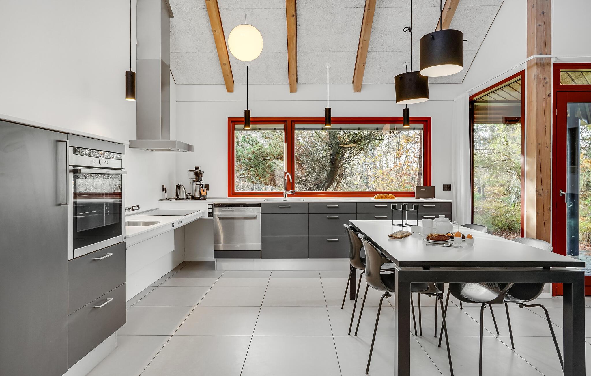 Dette lyse, indbydende og praktiske sommerhus byder op til fem gæster og et barn velkommen. Det har en hyggelig stue med køkken, hvor I kan slappe af foran brændeovnen. Der strømmer dejligt meget lys ind gennem de store vinduespartier.