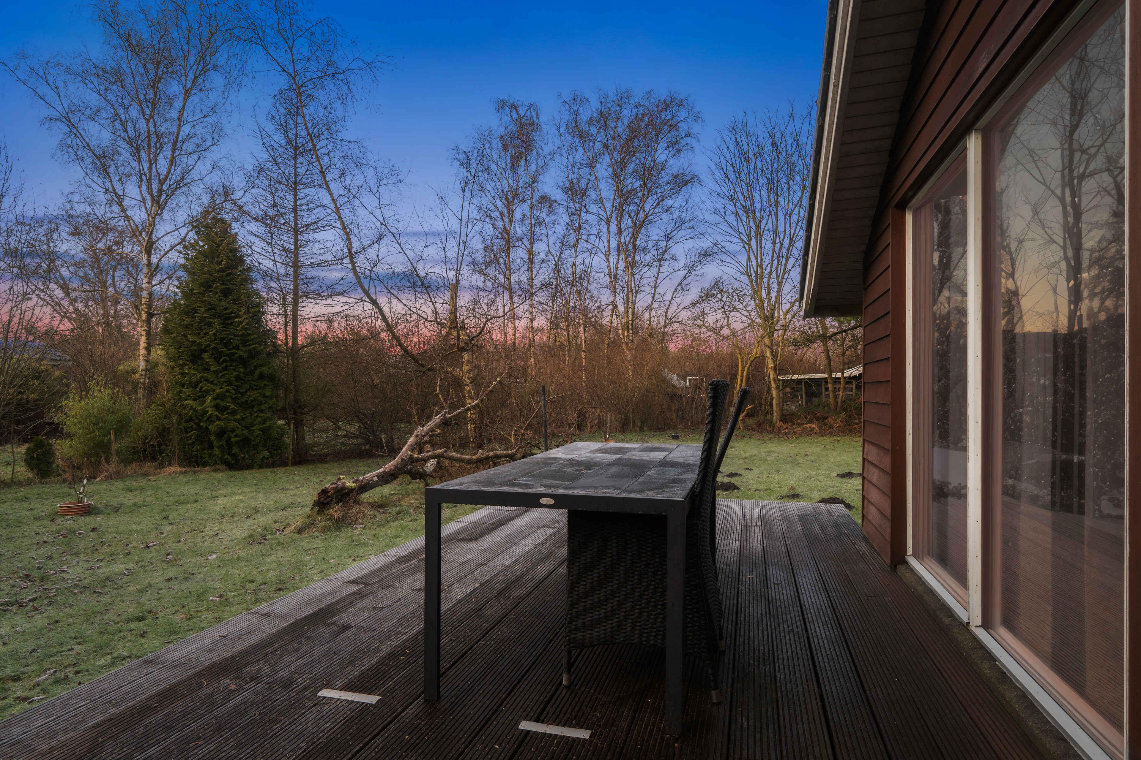 god badestrand, ligger for enden af lukket vej, stor grund med god plads til leg, ca. 15 minutters kørsel til Grenå, sydvendt terrasse med morgensol, udendørs fiskerenseplads,