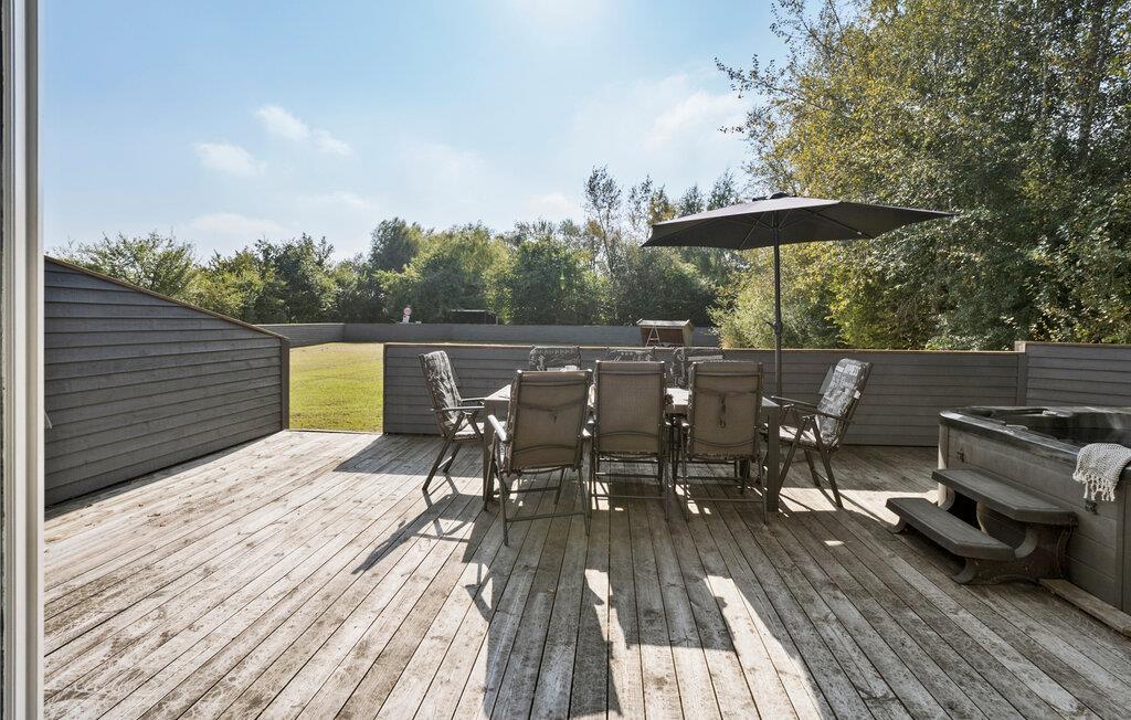 Fritidshus ved Lammefjorden med stor terrasse, spabad, aktivitetsrum og stor have perfekt til en afslappende ferie.