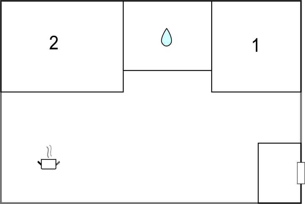 Badeværelse (nr. 1) - WC. Varmt og koldt vand. Bruser