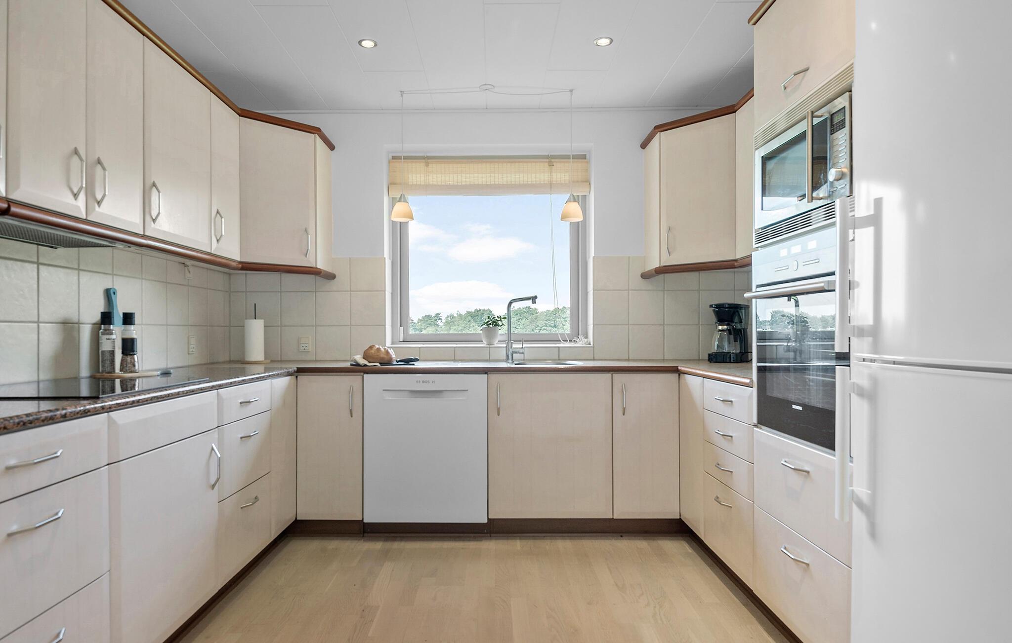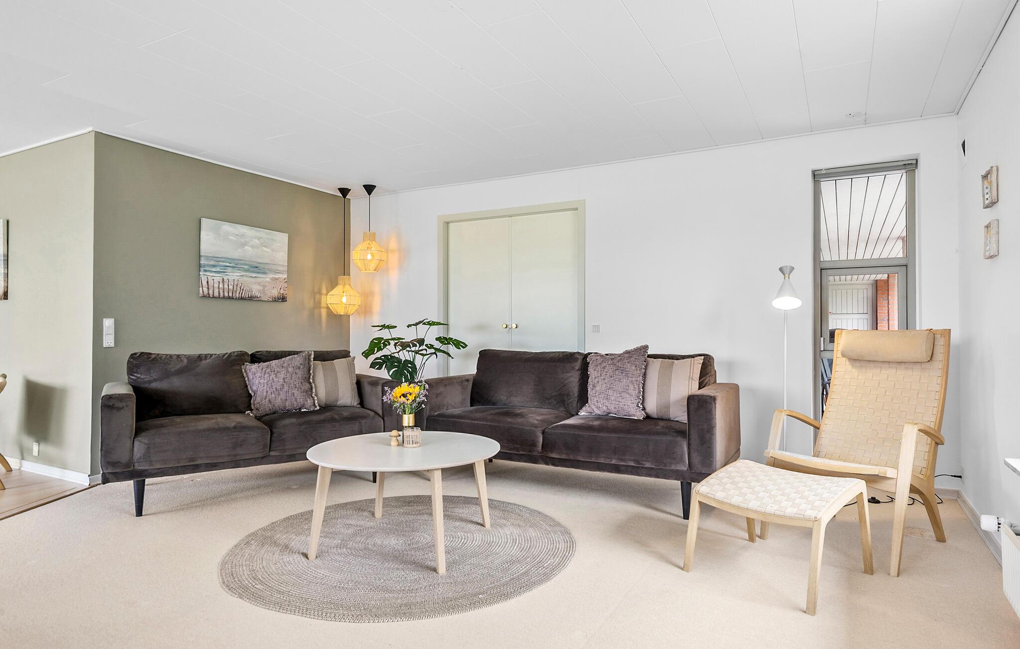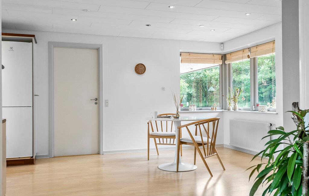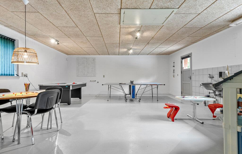 Velkommen til dette store sommerhus med plads til den store familie, hvor afslapning og underholdning er i fokus. Indretningen er elegant og enkel, og de store vinduer sørger for både et skønt lysindfald og en vidunderlig udsigt til søen. Her er flere loungespot, hvor I kan hvile jer og lade batterierne op efter en lang dag. I køkkenet er der plads til, at alle kan deltage i forberedelserne. Om det er at skrælle kartoflerne eller sidde ved det runde bord og underholde med spændende samtaler. Efter mad kan I bruge en hyggelig aften i aktivitetsrummet. Her kan I dyste mod hinanden i aithockey, bordtennis eller brætspil, eller I kan tegne og klippe-klistre.