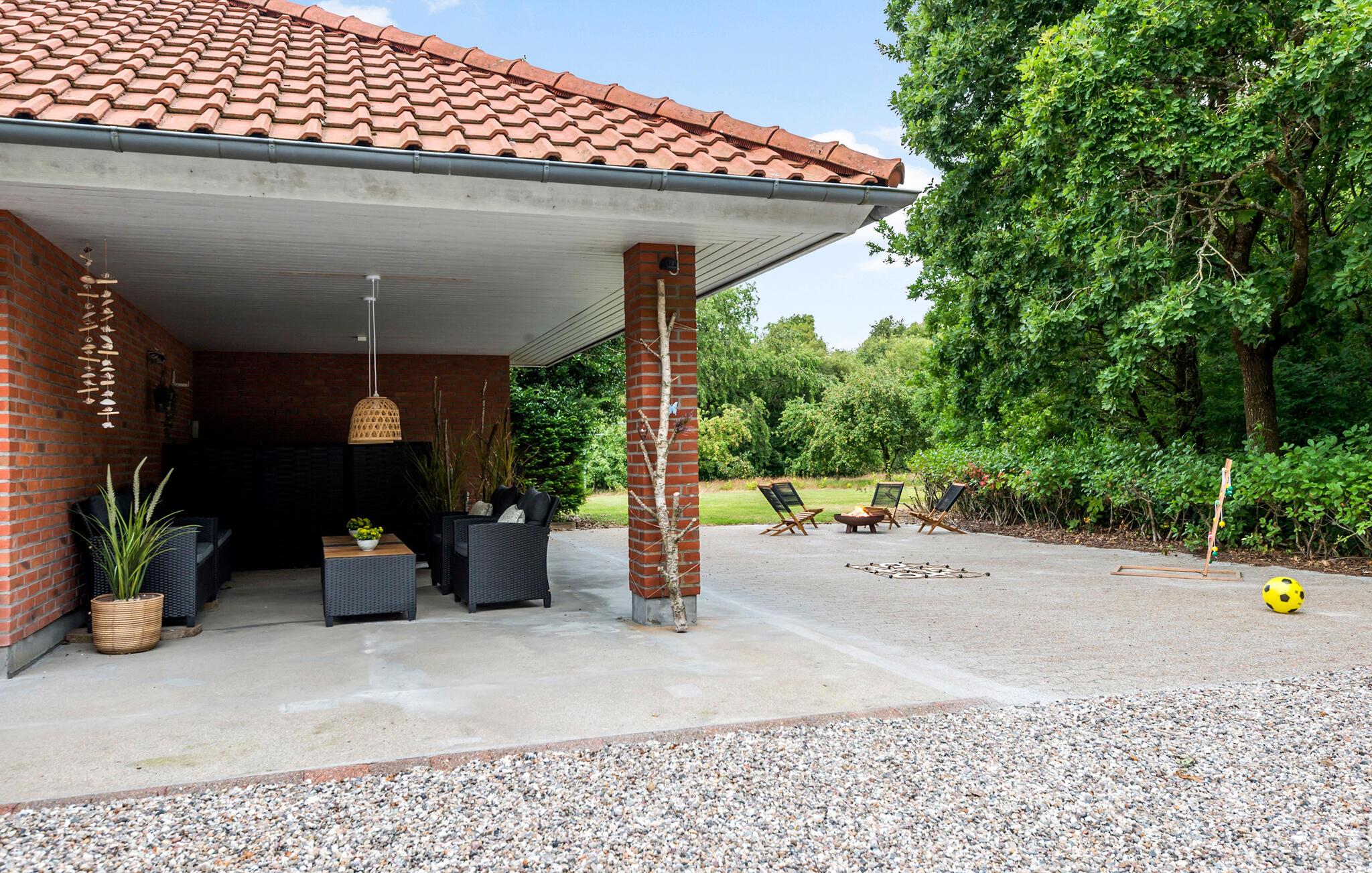 Udendørs er en stor overdækkede terrasse, hvor I kan nyde grillmad og gode drinks langt ud på aftenen. Lad børnene gå på opdagelse i haven, mens I kan slappe af i hængekøjen og nyde udsigten til søen.