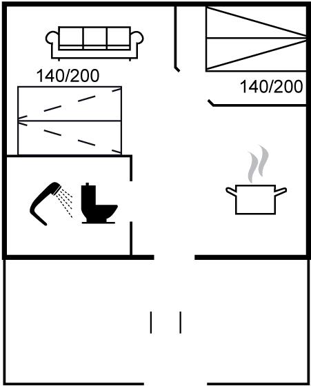 Bemærk, at der i opholdsstuen findes en dobbelt sovesofa (140 x 200 cm).