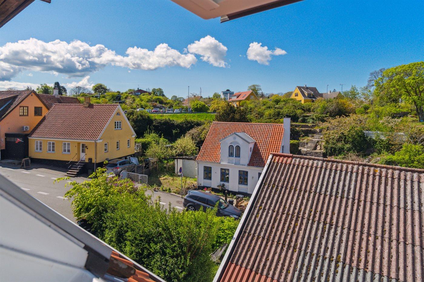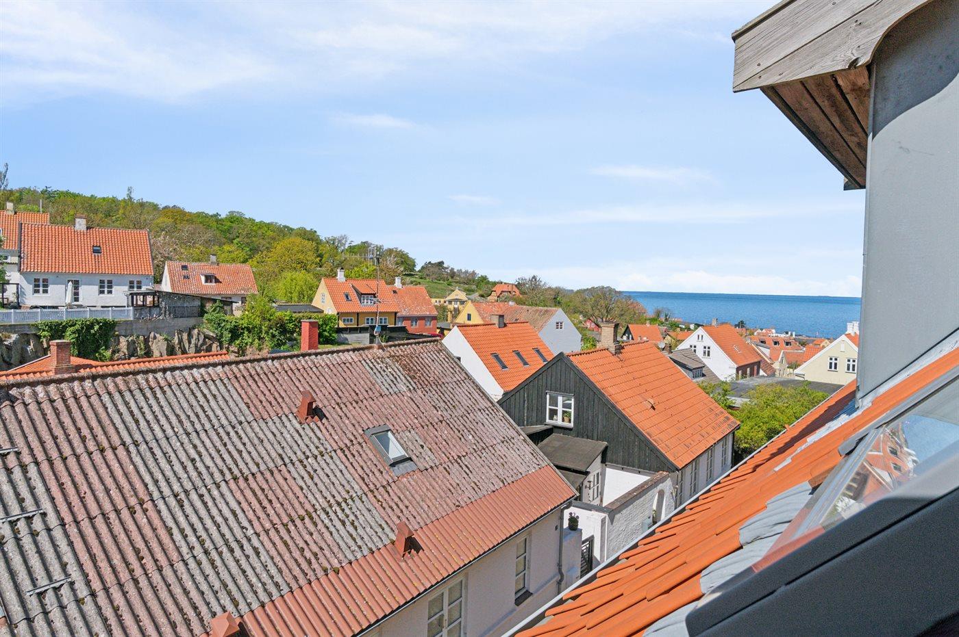 Charmerende ferielejlighed i to plan med havudsigt i hjertet af Gudhjem, tæt på butikker og fælles swimmingpool.