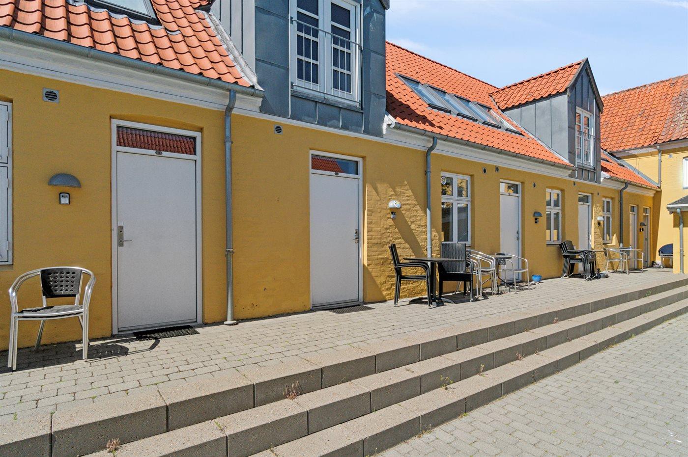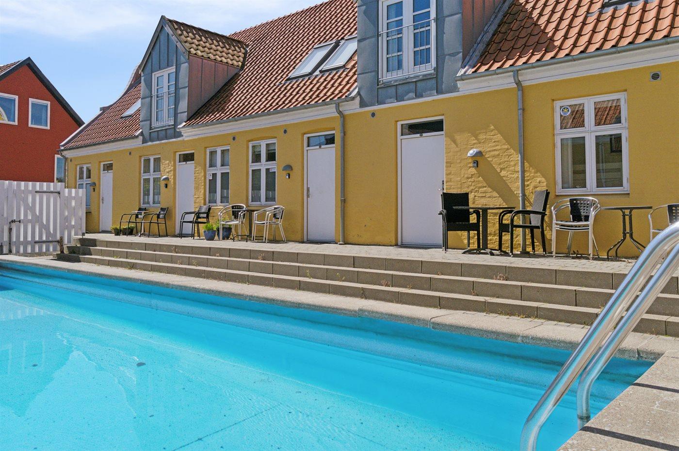 I den flisebelagte gård er der en fælles udendørs swimmingpool (uopvarmet) - poolen kan benyttes fra 1. juni til 30. september. Supermarked lige ved komplekset, så der er ikke langt til morgenbrødet under ferien. Restauranter, Røgeri, is og chokolade og små cafeer - det hele er lige ved hånden. Husk gode travesko - gaderne i Gudhjem er stejle, men absolut charmerende.