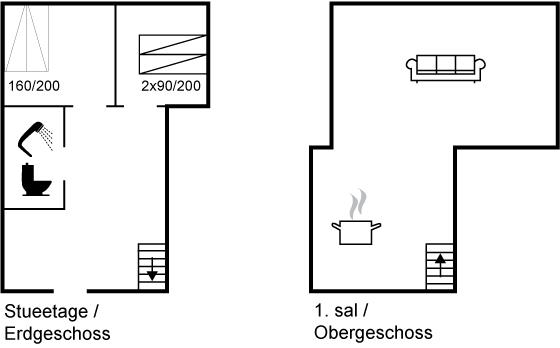 Der er i alt 2 soveværelser. Sovepladserne fordeler sig på: 2 sovepladser i dobbeltseng. 2 sovepladser i enkeltsenge.