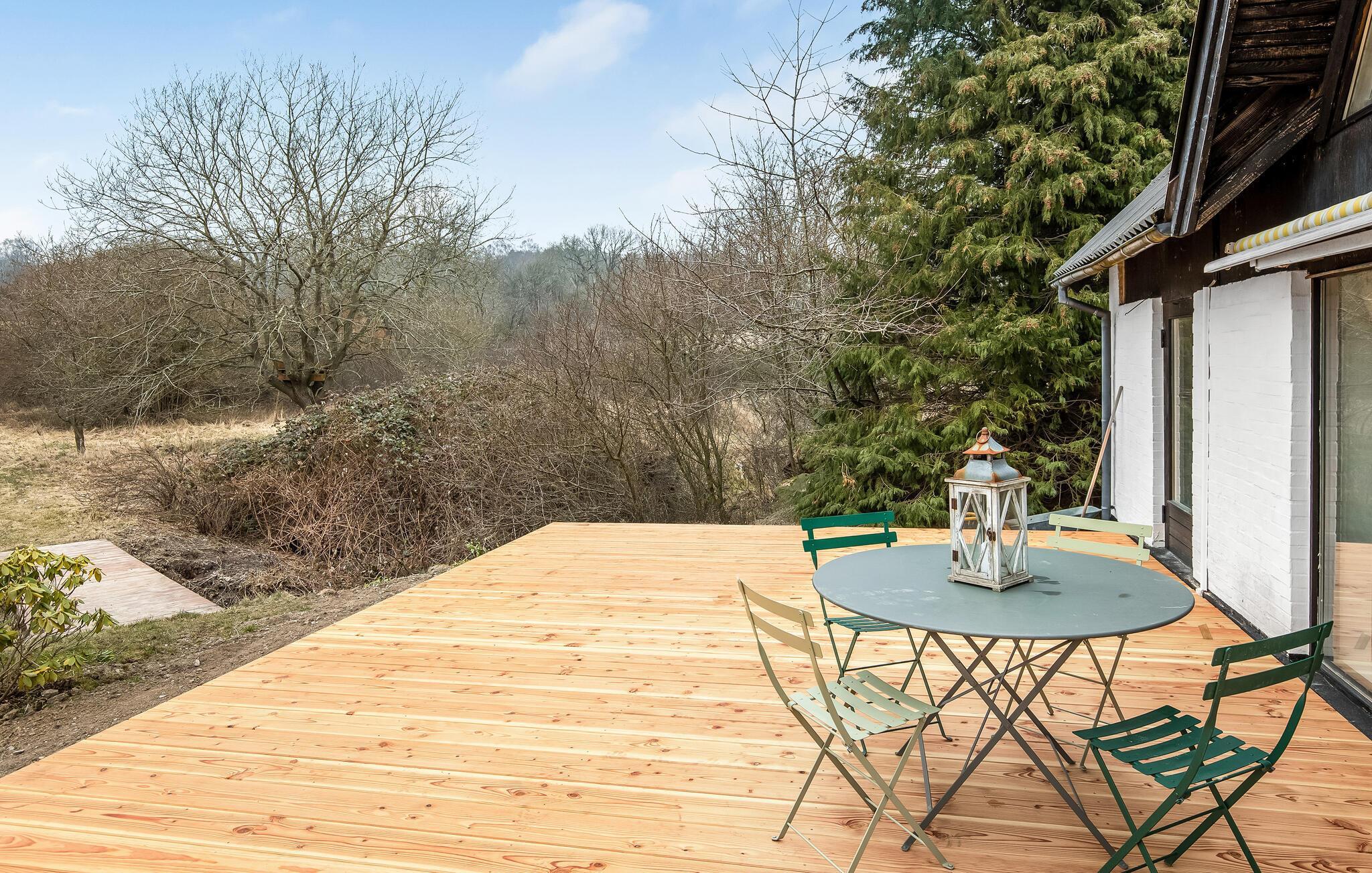 Charmerende sommerhus nær golf og vandrestier på Bornholm med delvis overdækket terrasse og unik natur.