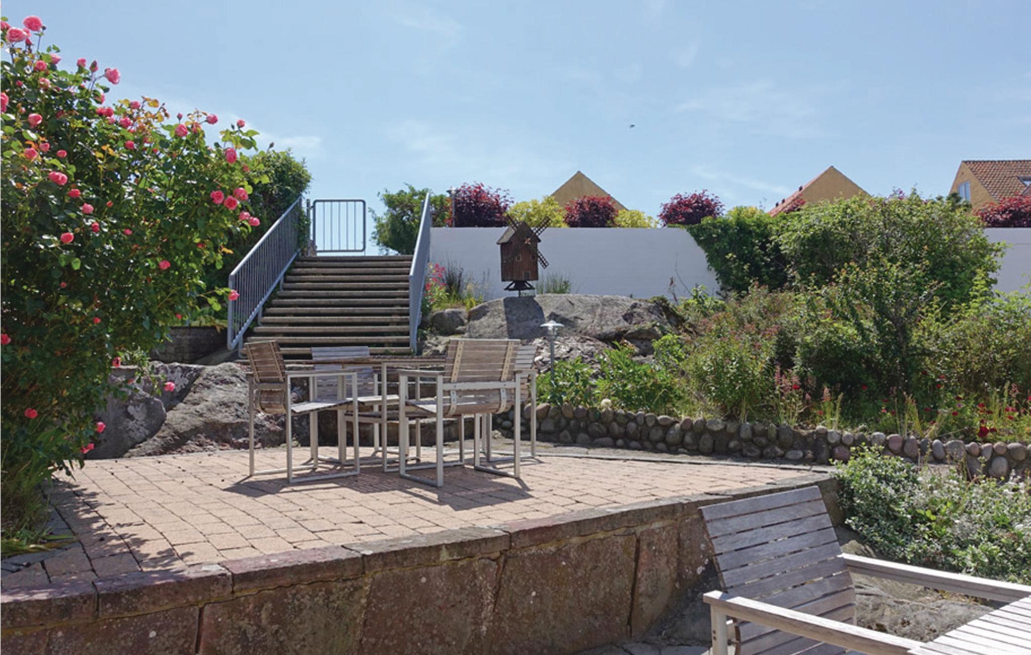 Hyggelig ferielejlighed i Gudhjem med adgang til fælles opvarmet pool og tæt på byens butikker og kystvandrestier.