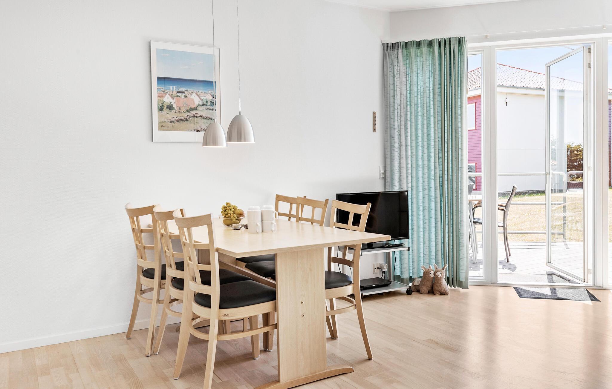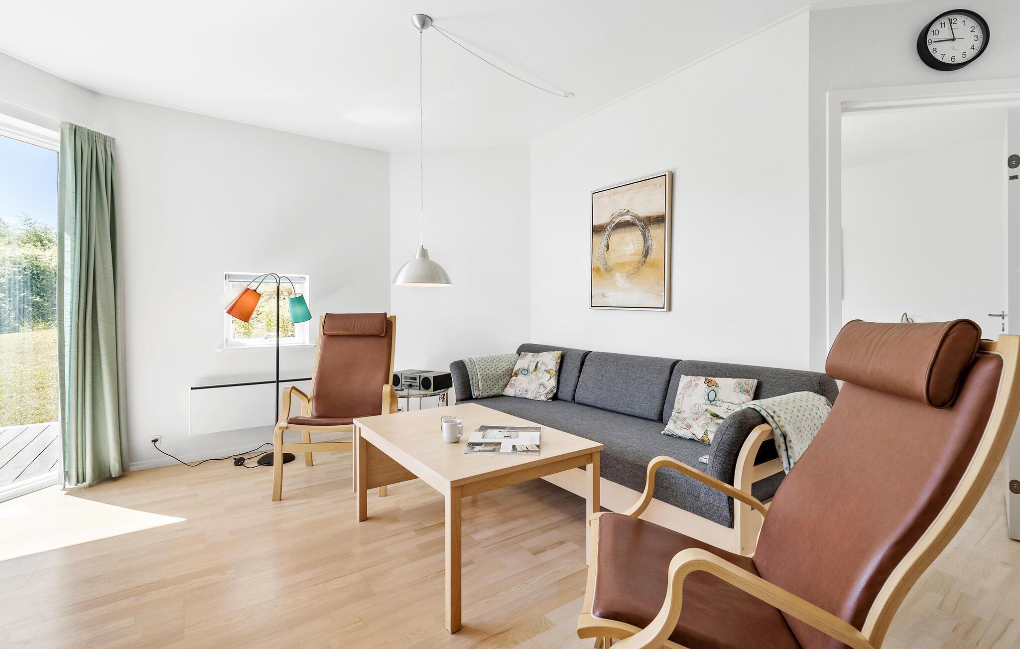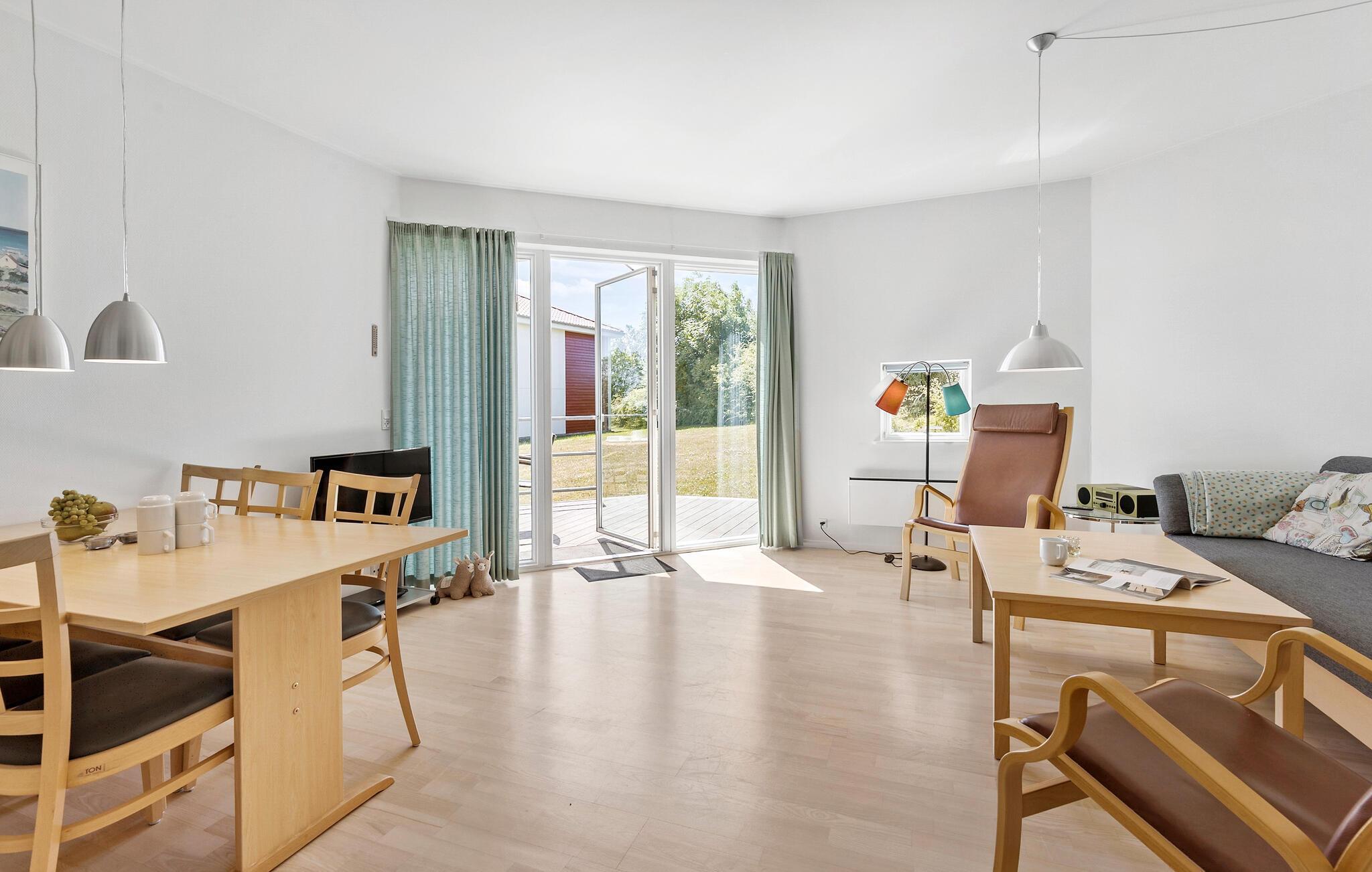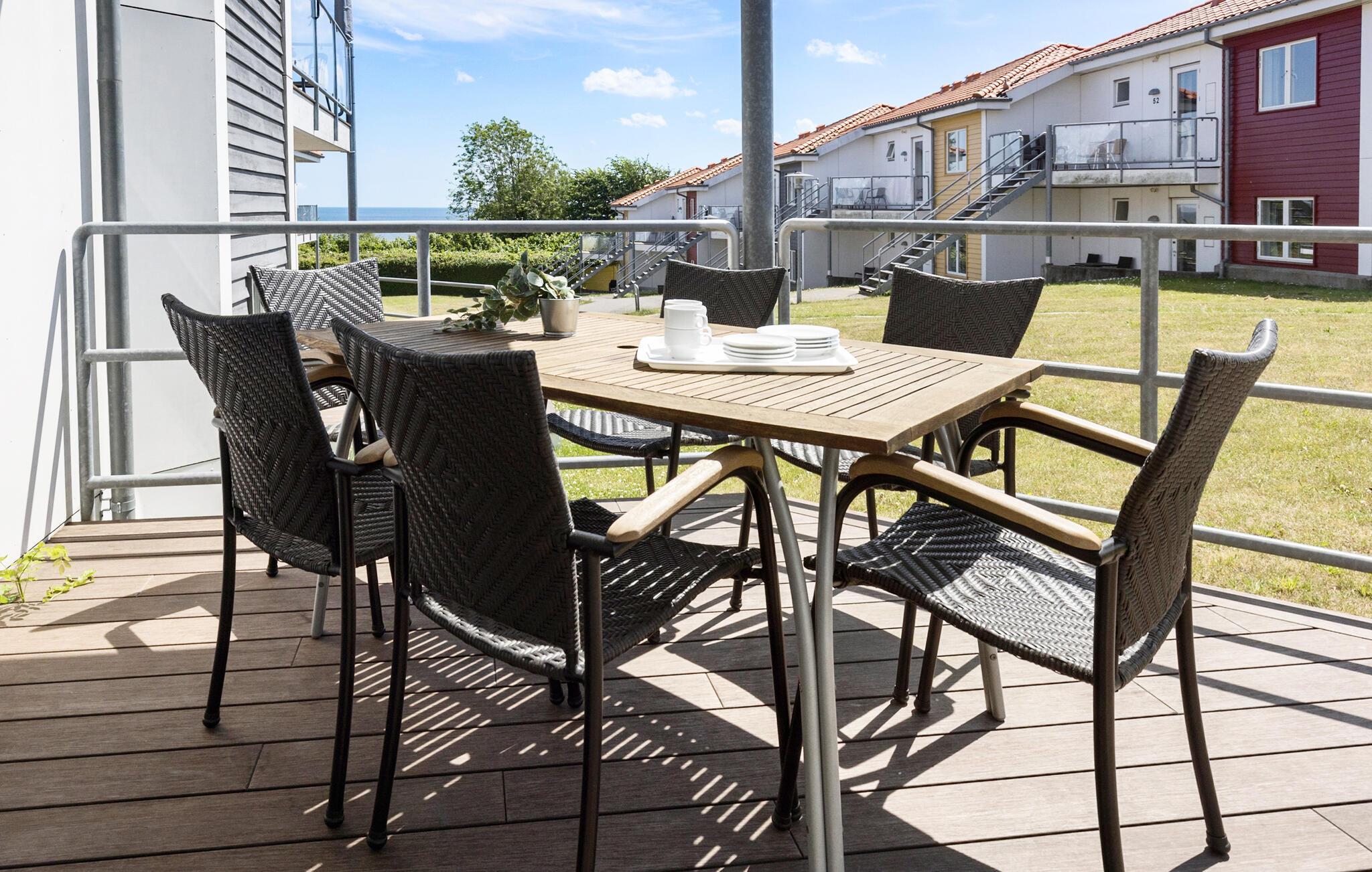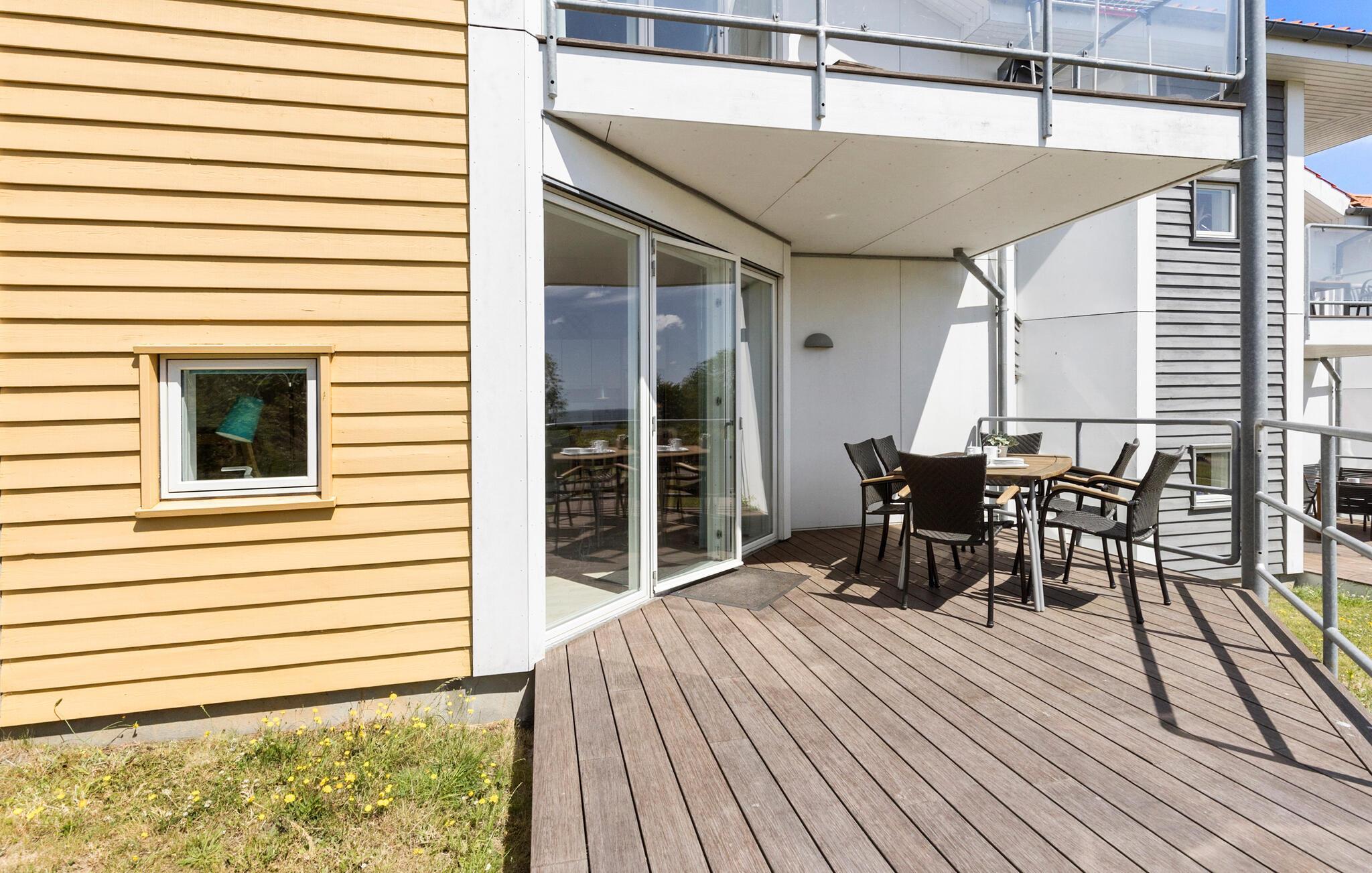 Til lejligheden hører to terrasser. Den ene er foran indgangsdøren, den anden er ved siden af stuen, så I kan finde sol, skygge og læ efter behov i løbet af dagen. Herfra kan I også spejde ud over havet, som kun er en kort gåtur væk.