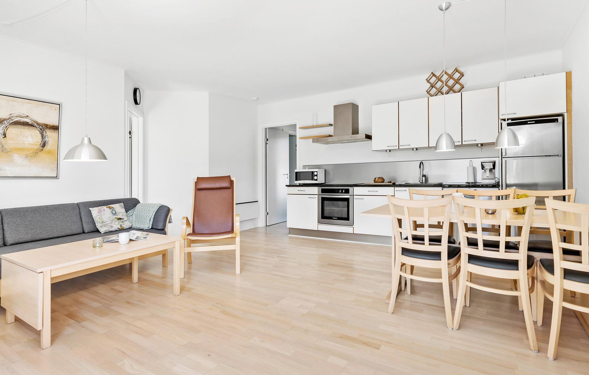 Lejlighederne i komplekset er identiske, og hvis I gerne vil rejse som en større flok, finder I et stort udvalg af boliger, så I kan holde ferie sammen og stadig nyde mulighed for privatliv og god komfort. Indretningen fremtræder lyst og komfortabelt med velvalgte materialer og et fuldt udstyret køkken, hvor I kan tilberede familiens livretter efter en herlig dag på farten. Senere kan I hive brætspillene frem eller rykke over i stuen med snacks og en god film, mens I lægger planer for de kommende dage.