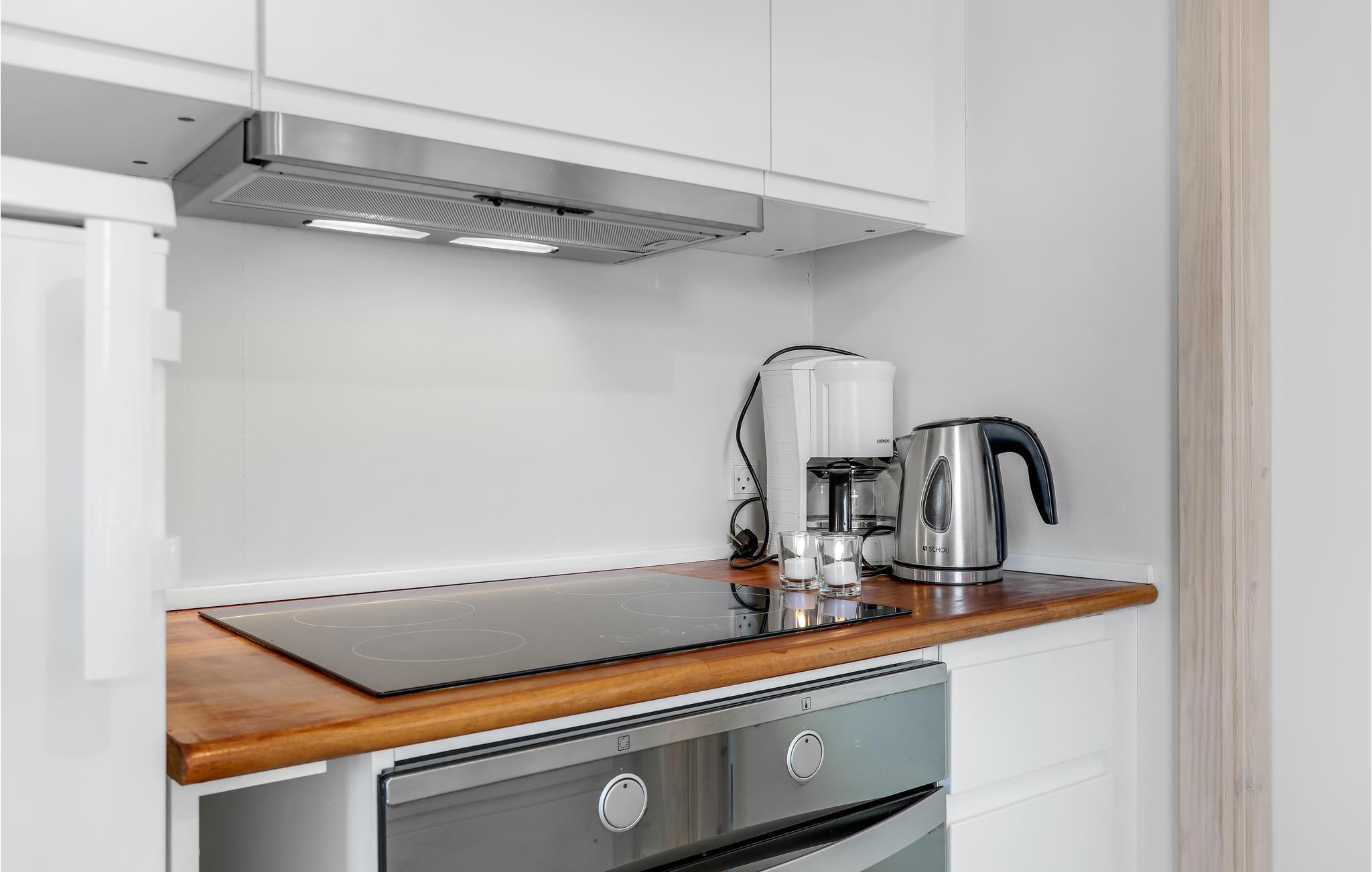 Huset er pænt og moderne indrettet, og så er rummene godt fordelt. I stuen er der et skønt lysindfald fra de store vinduer ud mod terrassen, så her får I gode rammer til at nyde måltiderne og slappe af efter dagens eventyr. I har nem adgang til vandet og øens mange attraktioner.