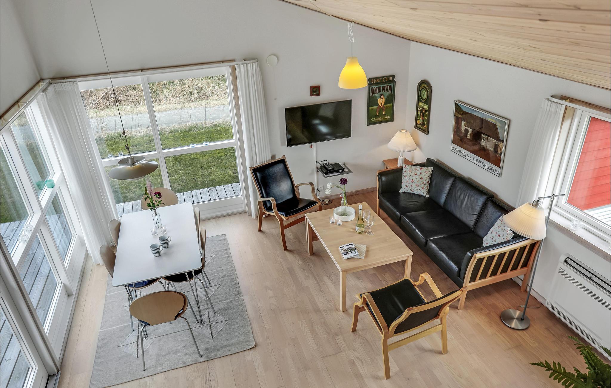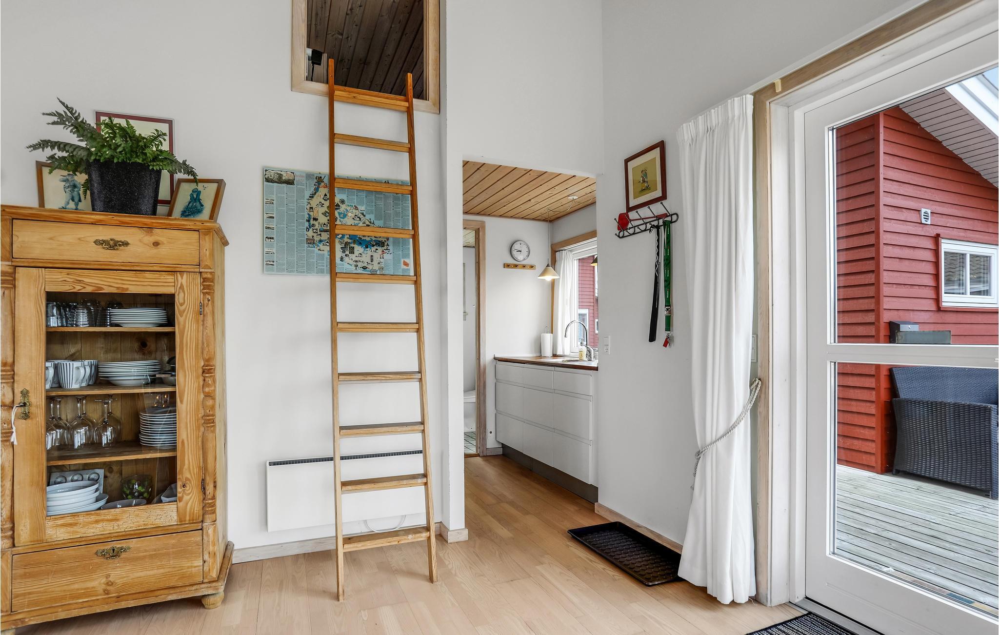 Dette hus er moderne og meget smart indrettet. Mens det ene soveværelse er i selve huset, er det andet i et separat udhus. Børnene får plads på loftet, som kan nås med en stige. Stuen imponerer med store vinduespartier og glasdøre med udgang til terrassen. Her kan du roligt nyde din morgenkaffe, mens du planlægger dagens aktiviteter. Om aftenen kan du enten slappe af her eller i stuen med TV.