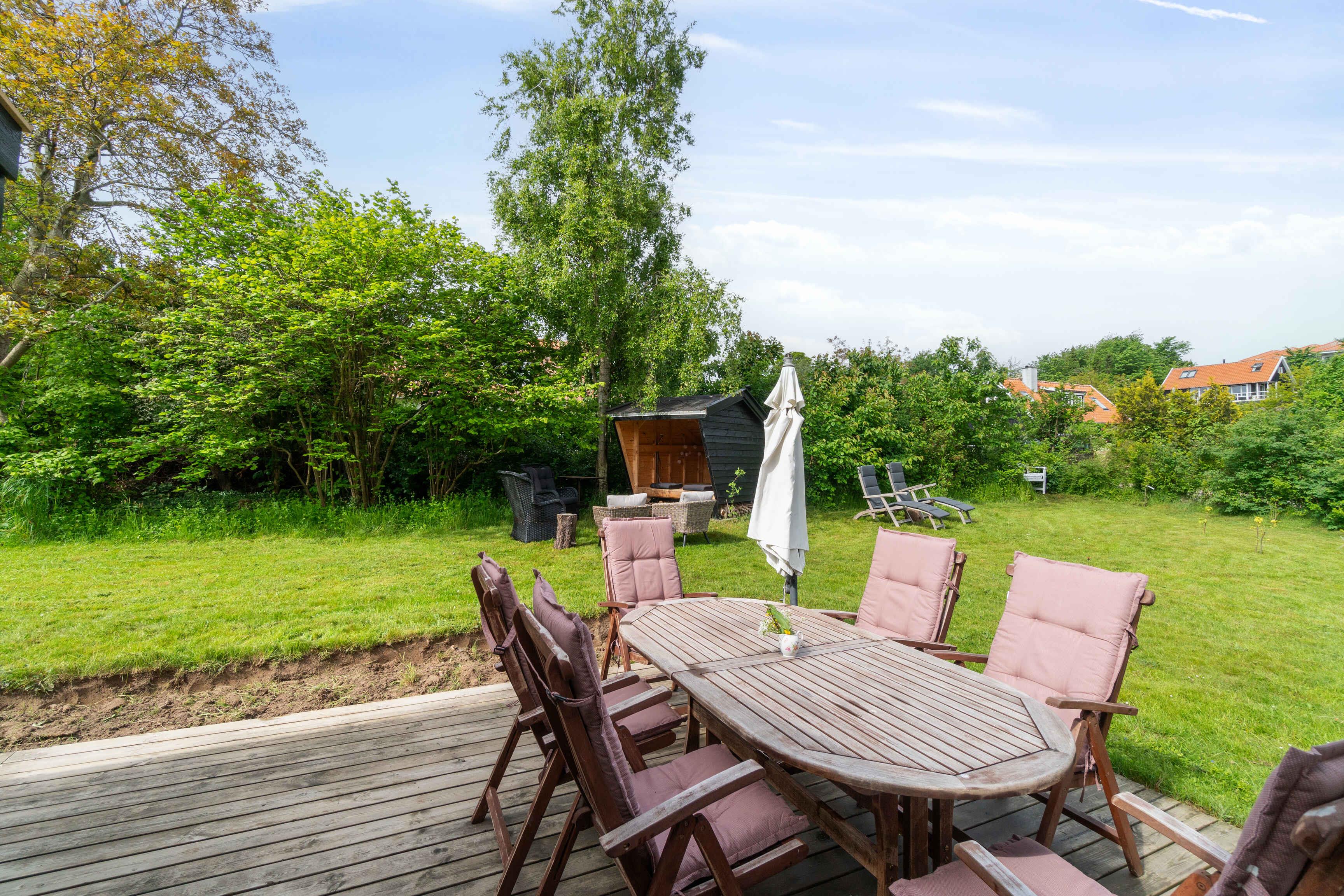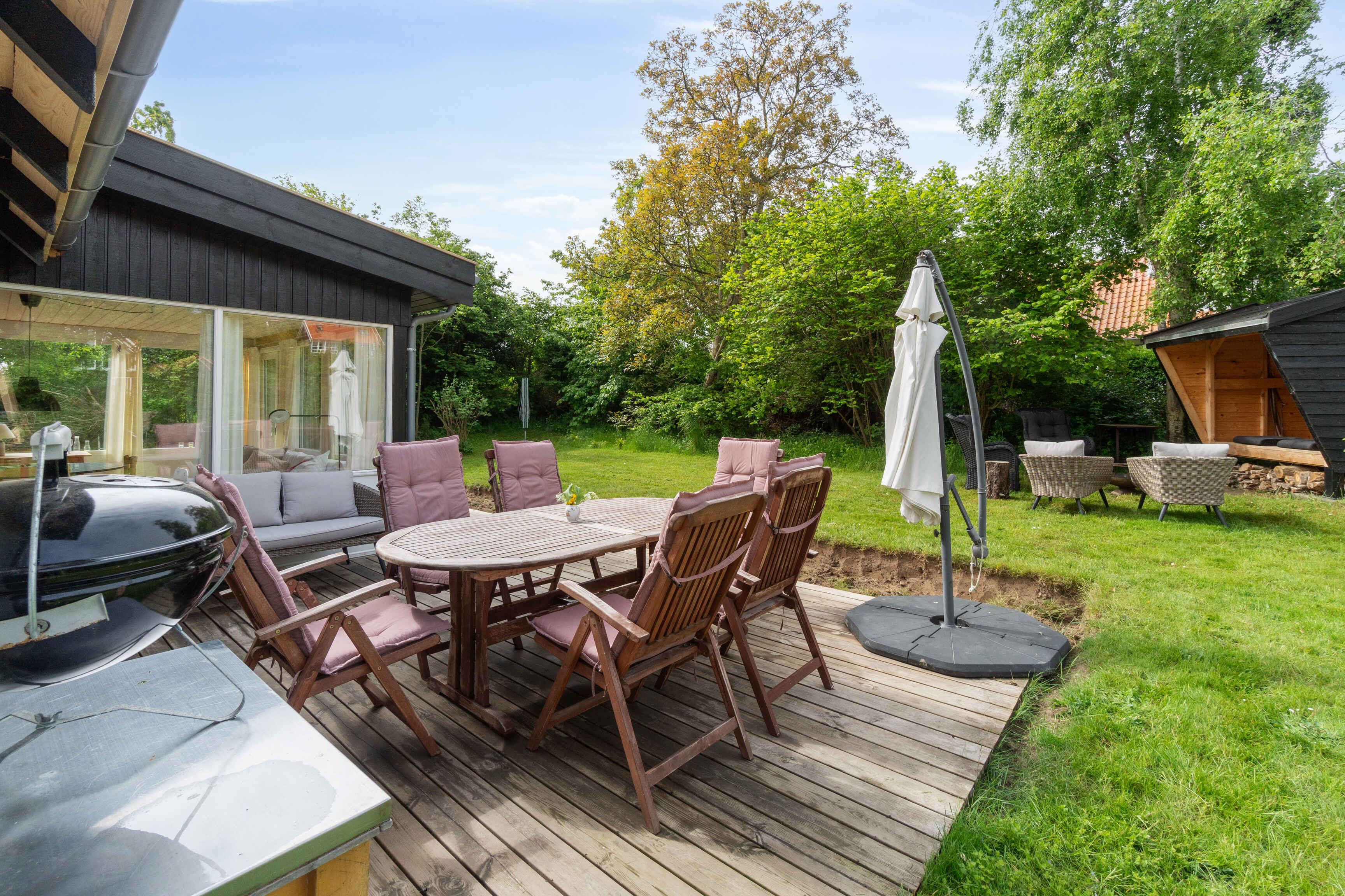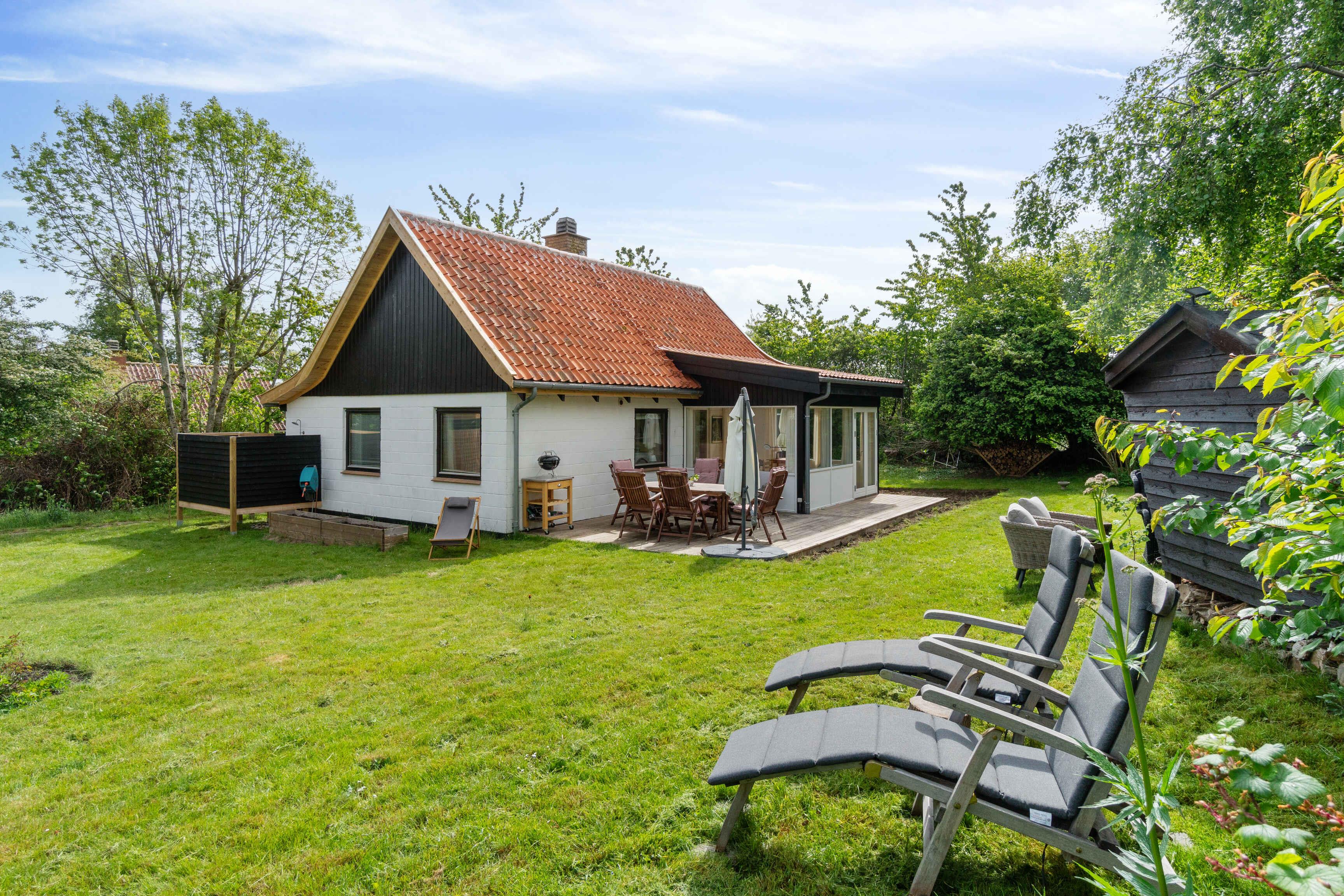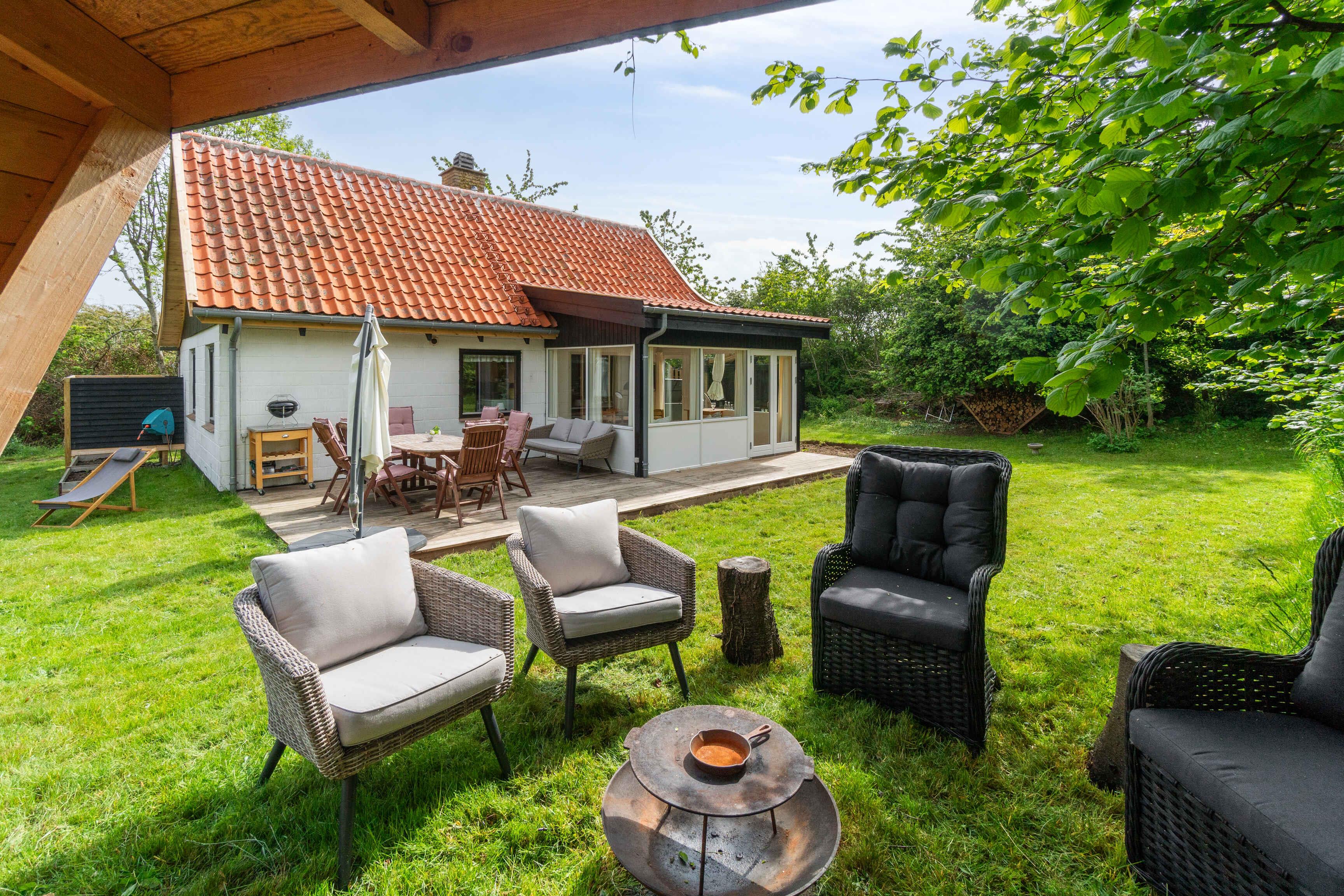 Charmerende sommerhus i Melsted nær hav og naturskønne omgivelser med udestue, stor terrasse og have.