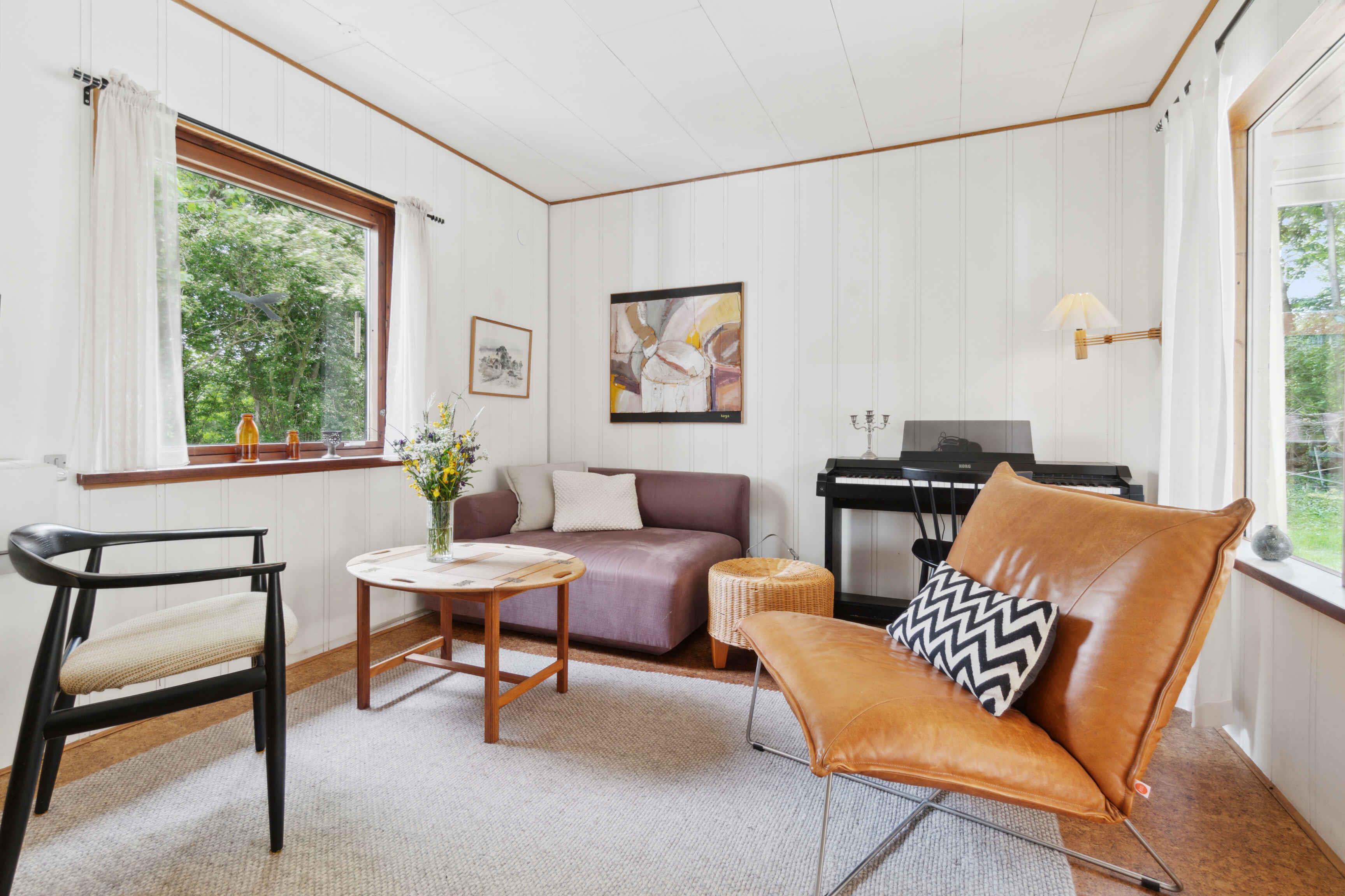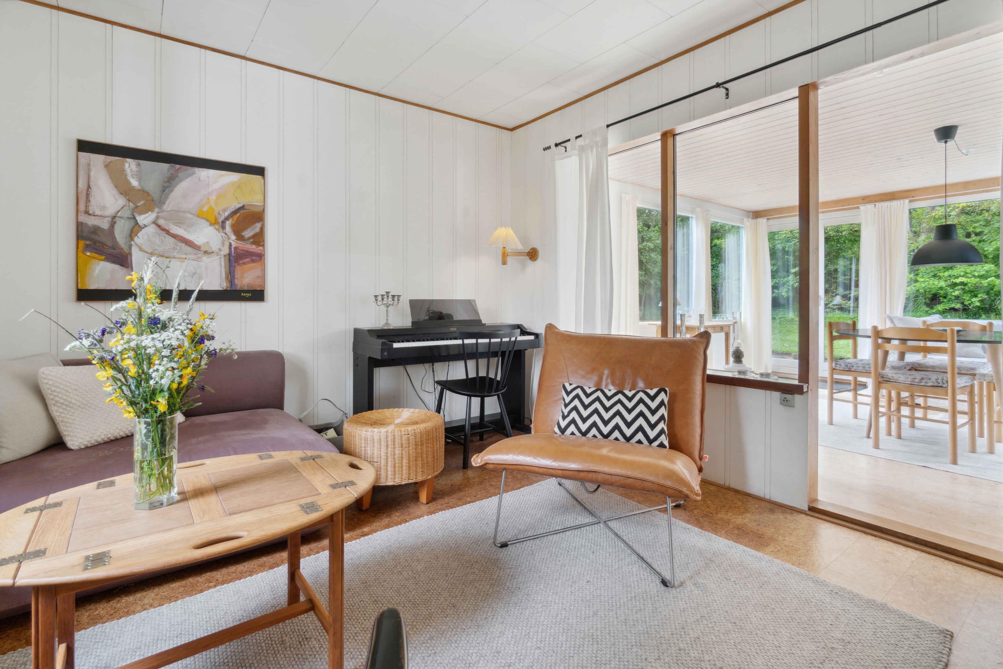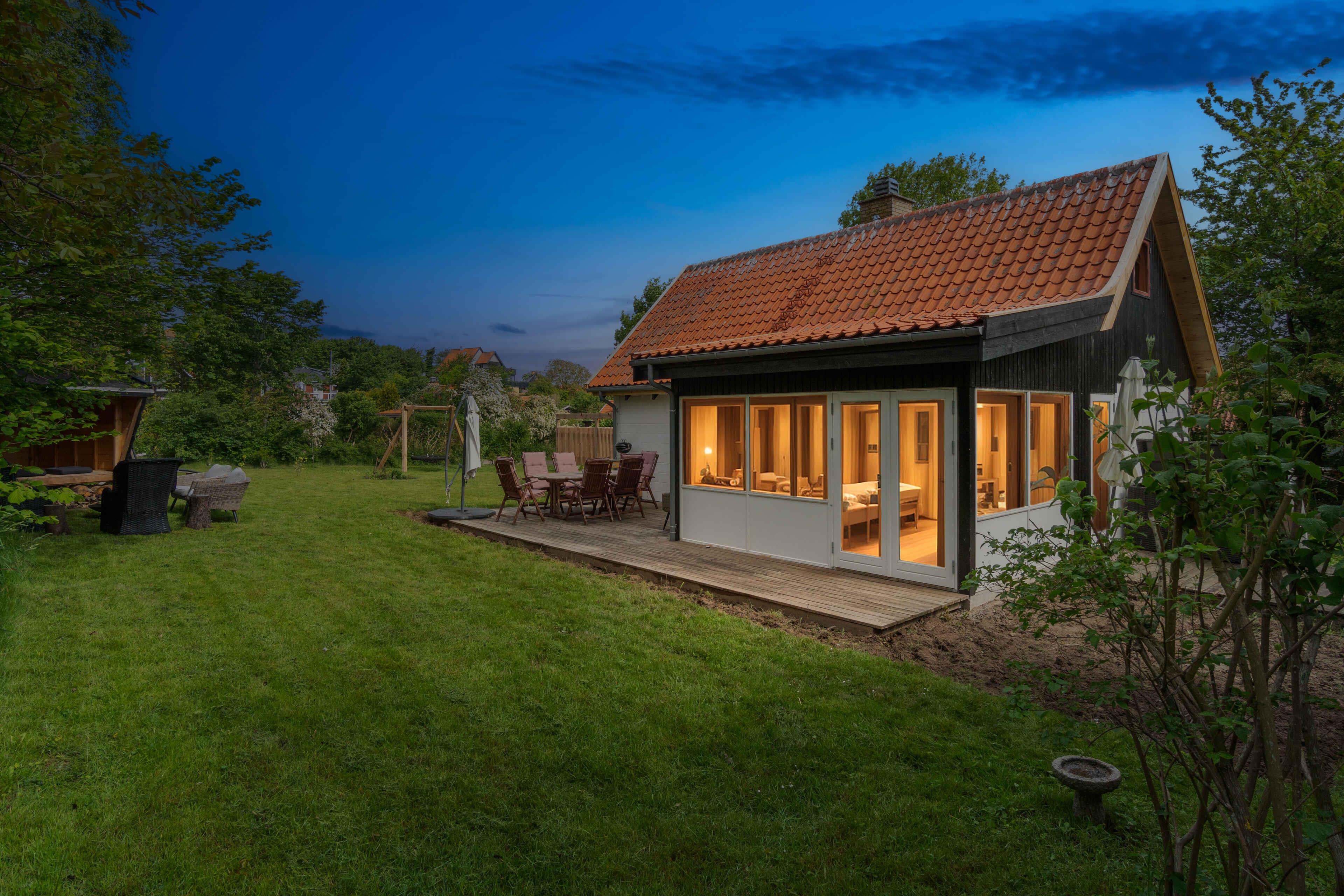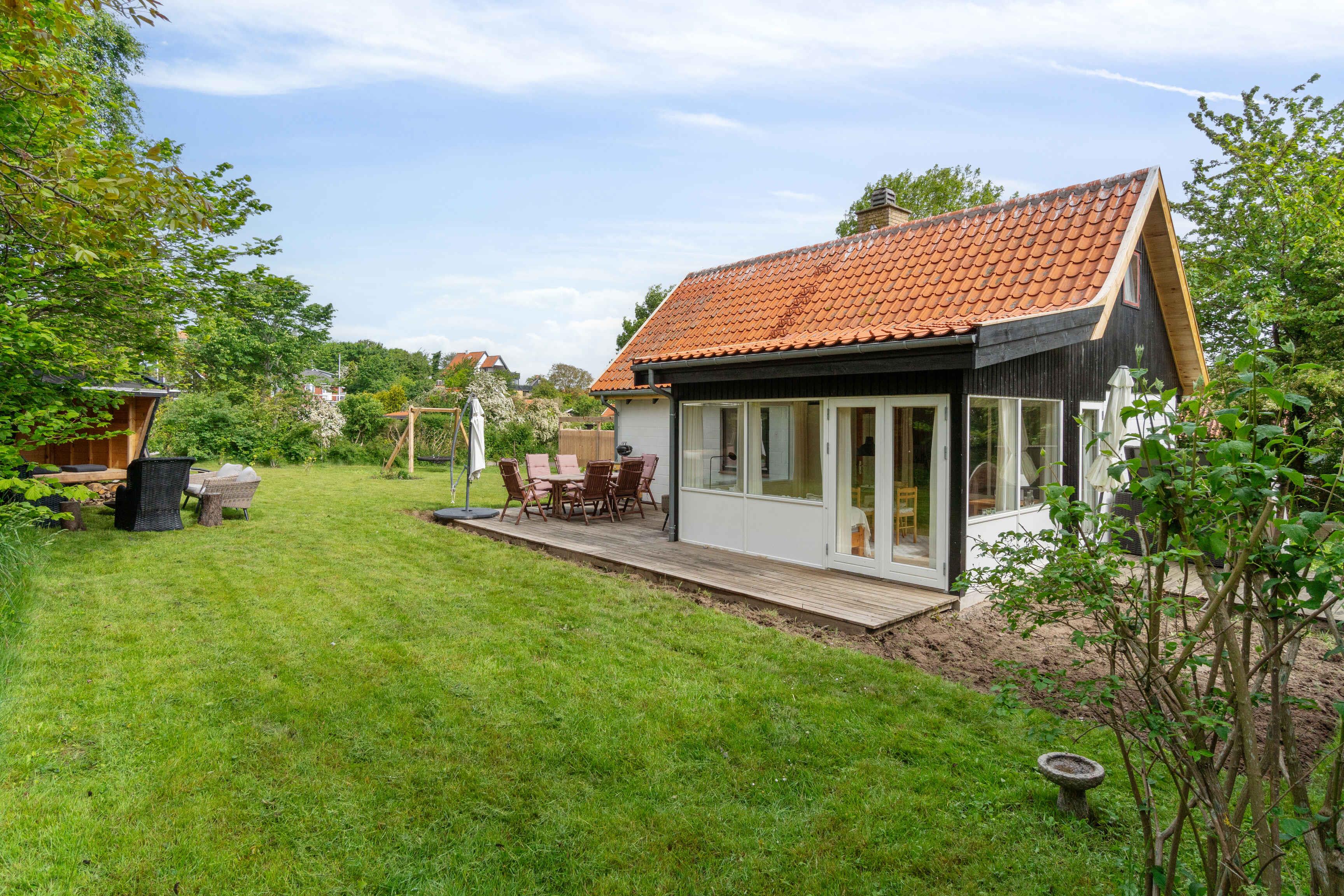 Charmerende sommerhus i Melsted nær hav og naturskønne omgivelser med udestue, stor terrasse og have.