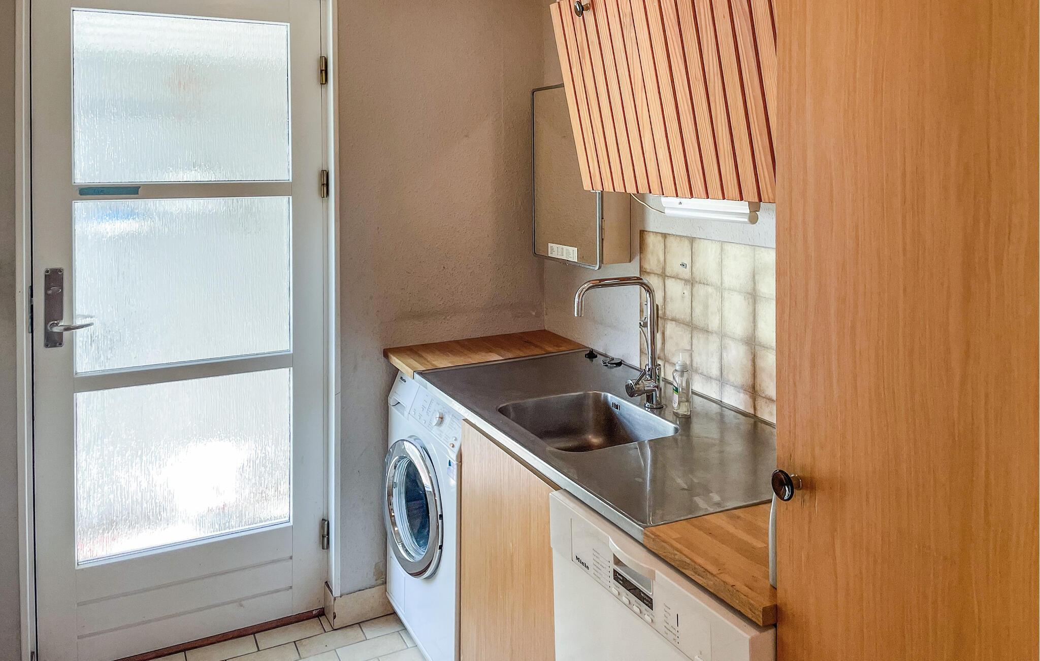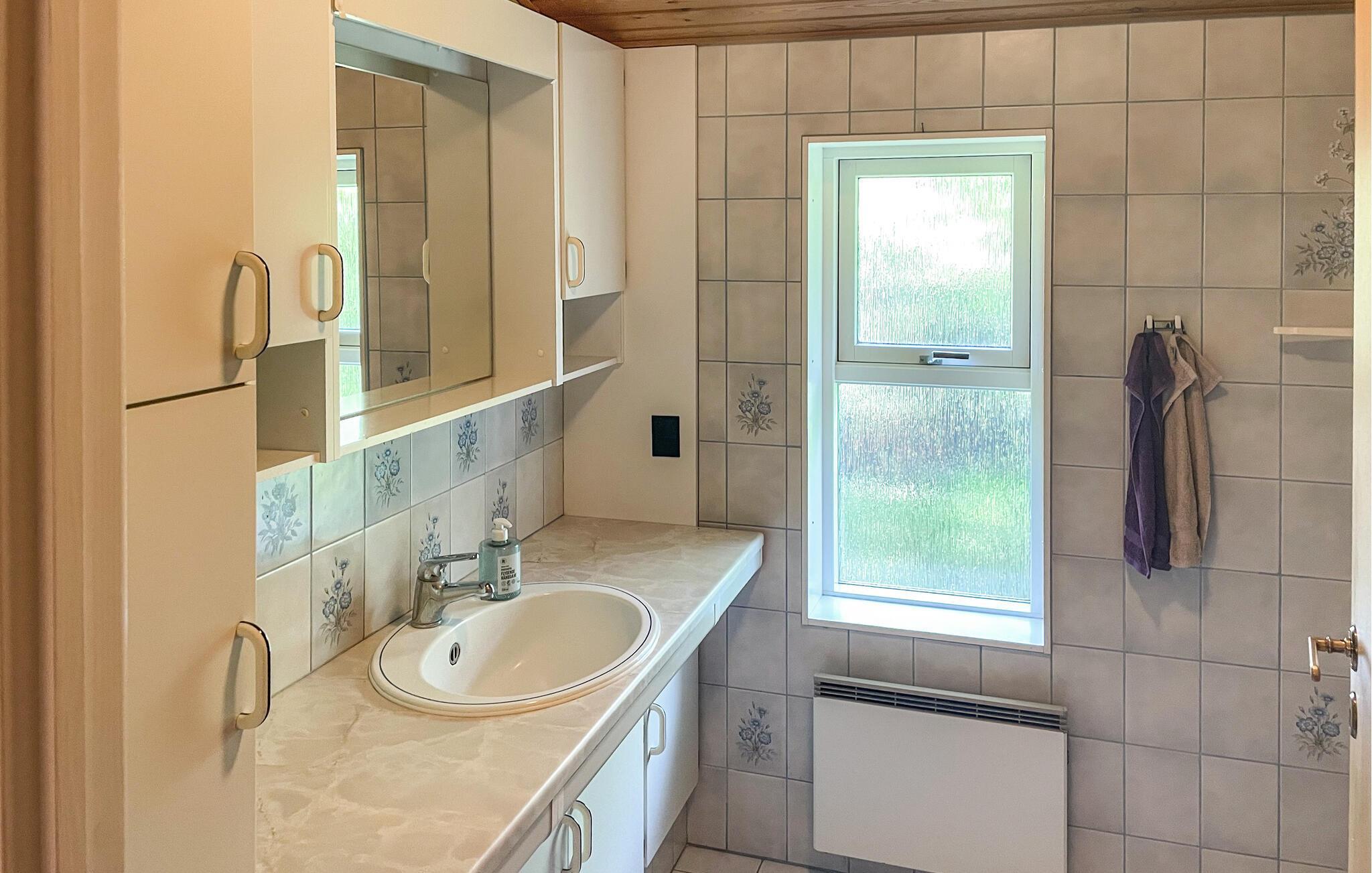 Jeres feriehus byder jer velkommen med en fredelig beliggenhed lige ved kysten. Start dagen med en kop kaffe ved vinduet, mens blikket glider ud over vandet og de første solstråler lyser haven op. Her bor I i rolige omgivelser, men med mange muligheder for en afvekslende ferie. Hyg jer i den lyse opholdsstue med loft til kip og brændeovn. Slap af i sofaen, læs en bog, eller spil kort i godt selskab. Det store spisebord giver plads til fælles måltider, og det praktiske køkken indbyder til madlavning.