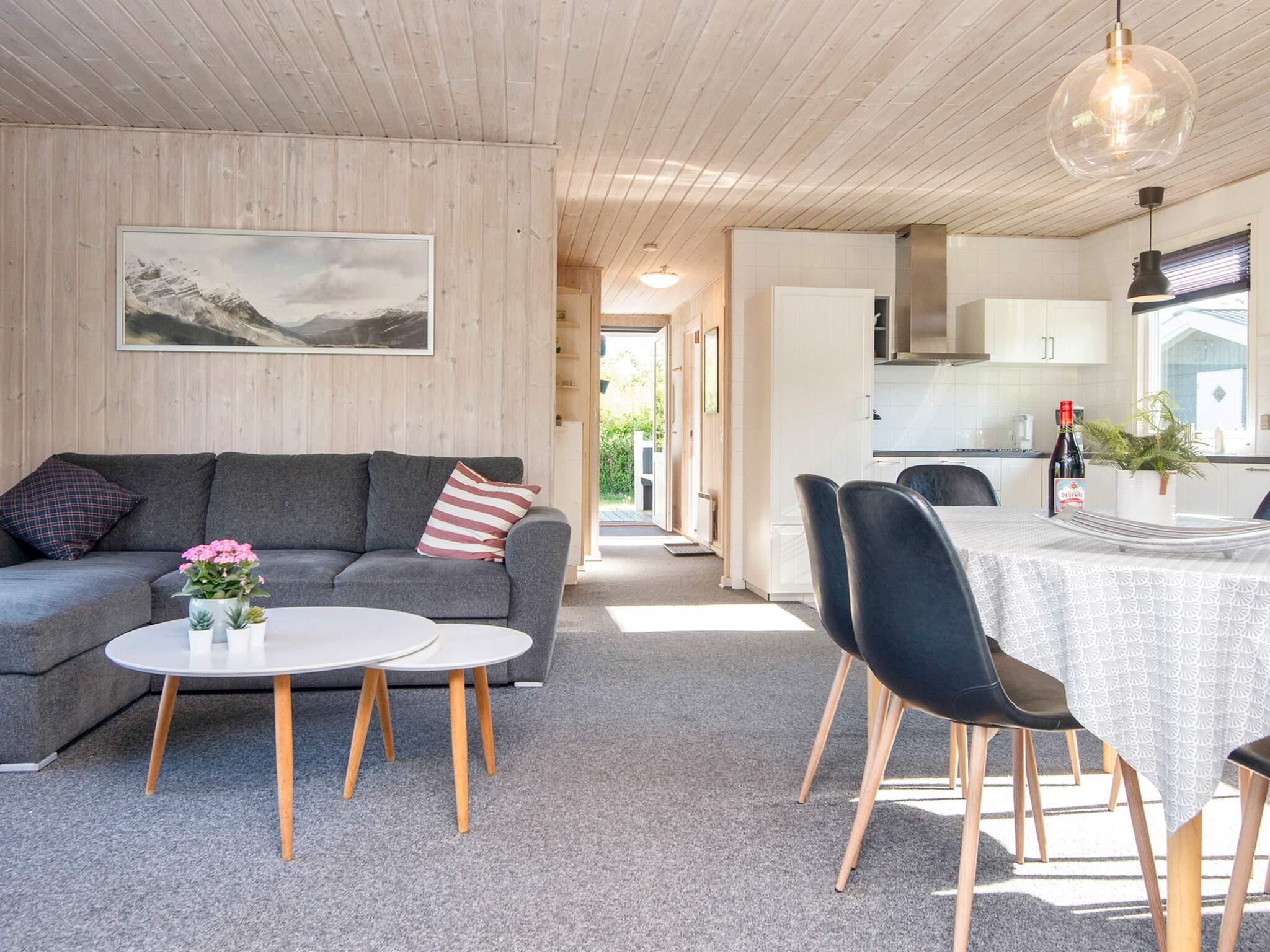 Dette gennemtænkt designede feriehus kombinerer komfort, charme og en fantastisk beliggenhed, kun 20 minutters kørsel fra de pulserende byer Silkeborg og Herning. For nyligt renoveret føles interiøret lyst, indbydende og moderne, mens det stadig bevarer den varme og hygge, der får et feriested til at føle sig som hjemme. I hjertet ligger et åbent køkken og en stue, hvor madlavning, spisning og afslapning flyder sømløst sammen - perfekt til familier eller små grupper, der ønsker at tilbringe kvalitetstid sammen. Fra det hyggelige opholdsrum åbner store døre direkte ud til terrassen, så naturligt lys fylder rummet og udvider dit opholdsområde ud i det fri.