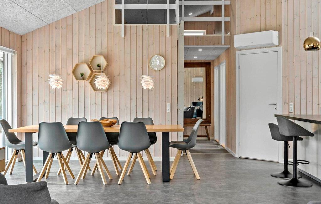 Oplev ren afslapning i de lyse værelser i dette smagfuldt indrettede sommerhus. Tilbered jeres livretter i det åbne køkken og nyd dem i den stilfulde atmosfære ved det store spisebord. Afslut dagen i den hyggelige opholdsstue med et glas vin eller spændende brætspil.