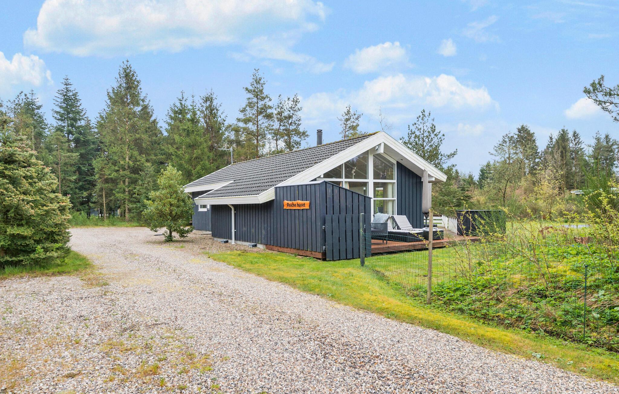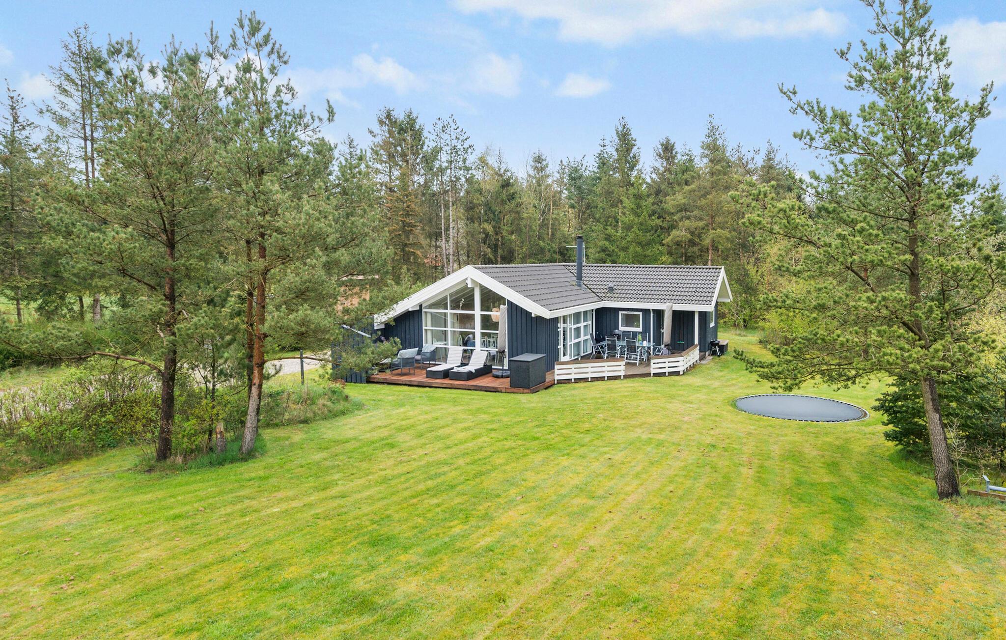 Hyggeligt feriehus i Bording omgivet af natur med moderne faciliteter og plads til afslapning.