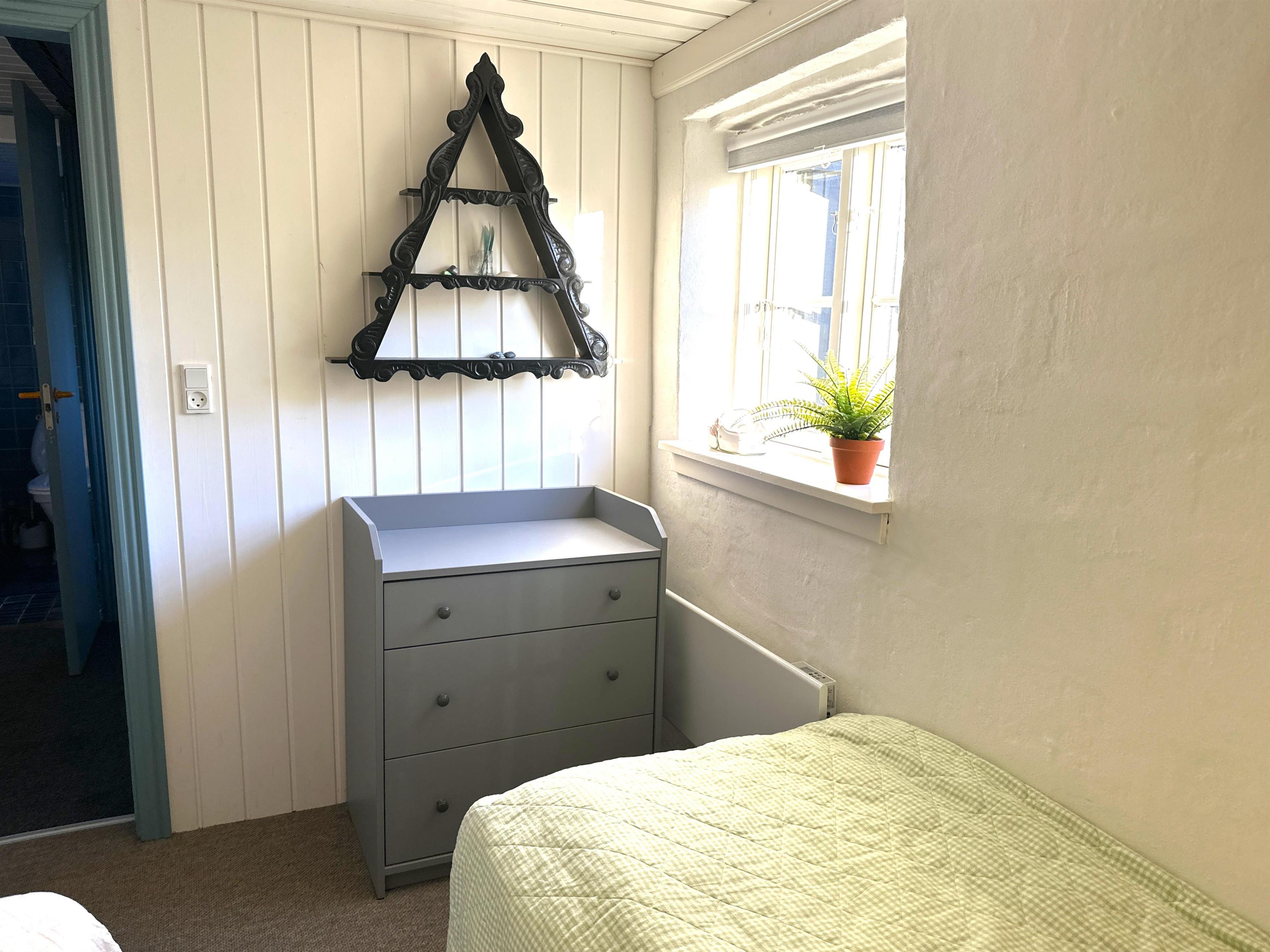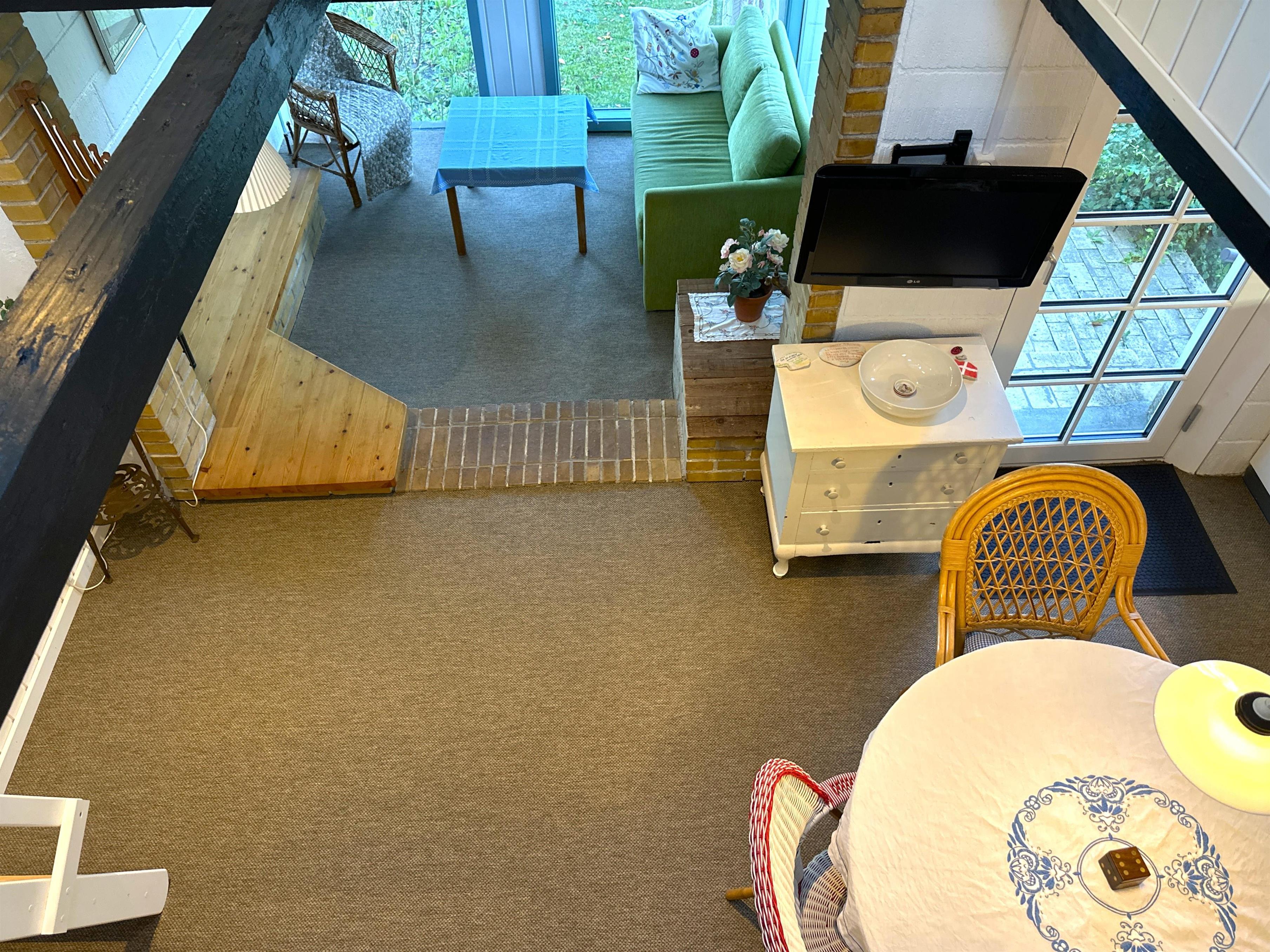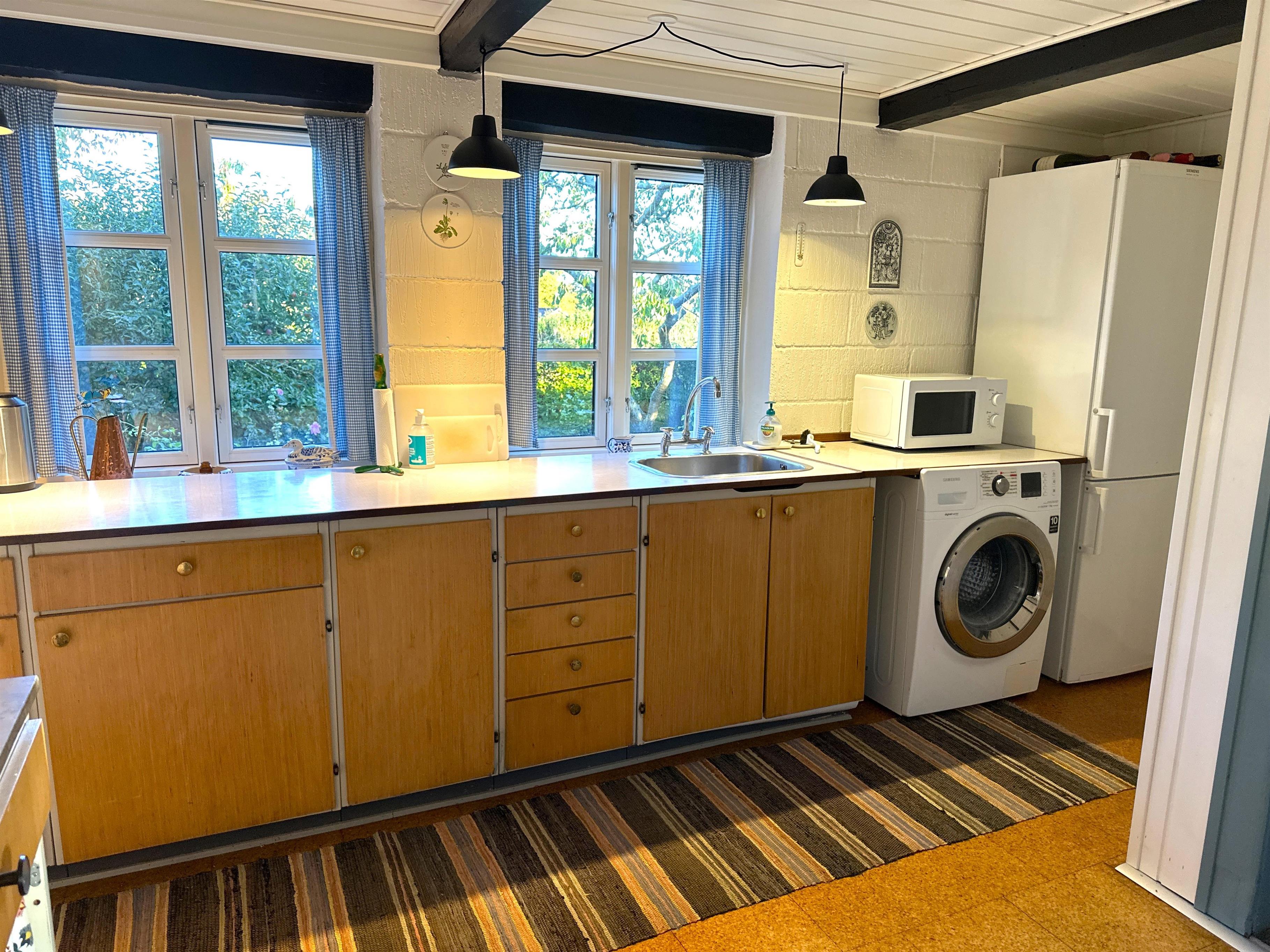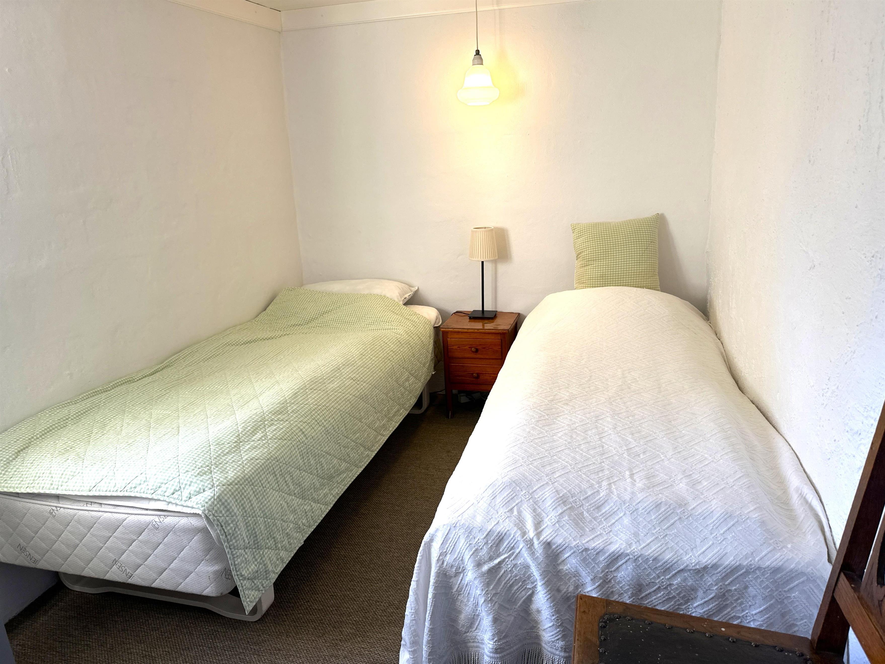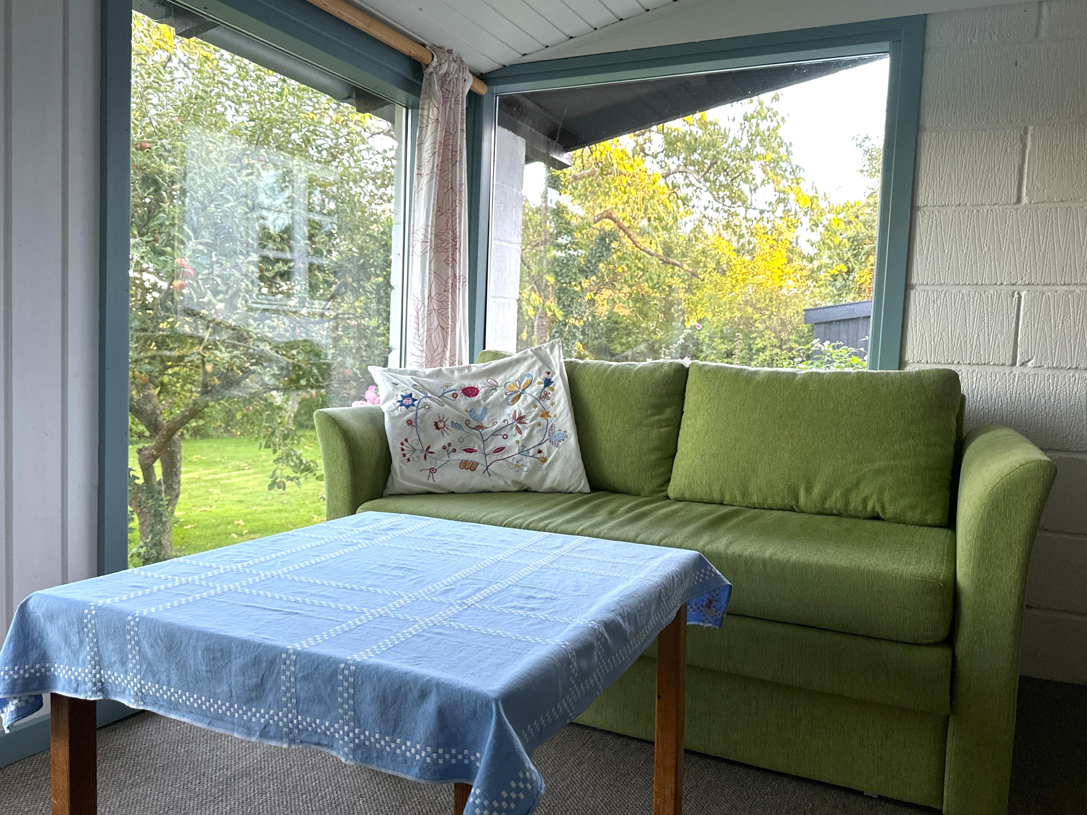 Når man træder ind, mødes man af køkkenet og en stor spisestue, som danner rammen om måltider og samvær. Der er desuden en mindre spiseplads tæt på køkkenet, som er perfekt til stille morgenstunder eller kaffe om eftermiddagen. Havestuen, som er forbundet med alrummet, lukker lyset ind og gør huset lyst og indbydende også på dage med gråvejr. Der er to soveværelser – ét med dobbeltseng og ét med to enkeltsenge – samt en hems med to ekstra enkeltsenge. Badeværelset indeholder badekar og mulighed for bruser, så man kan vælge efter stemning og vejrlig.