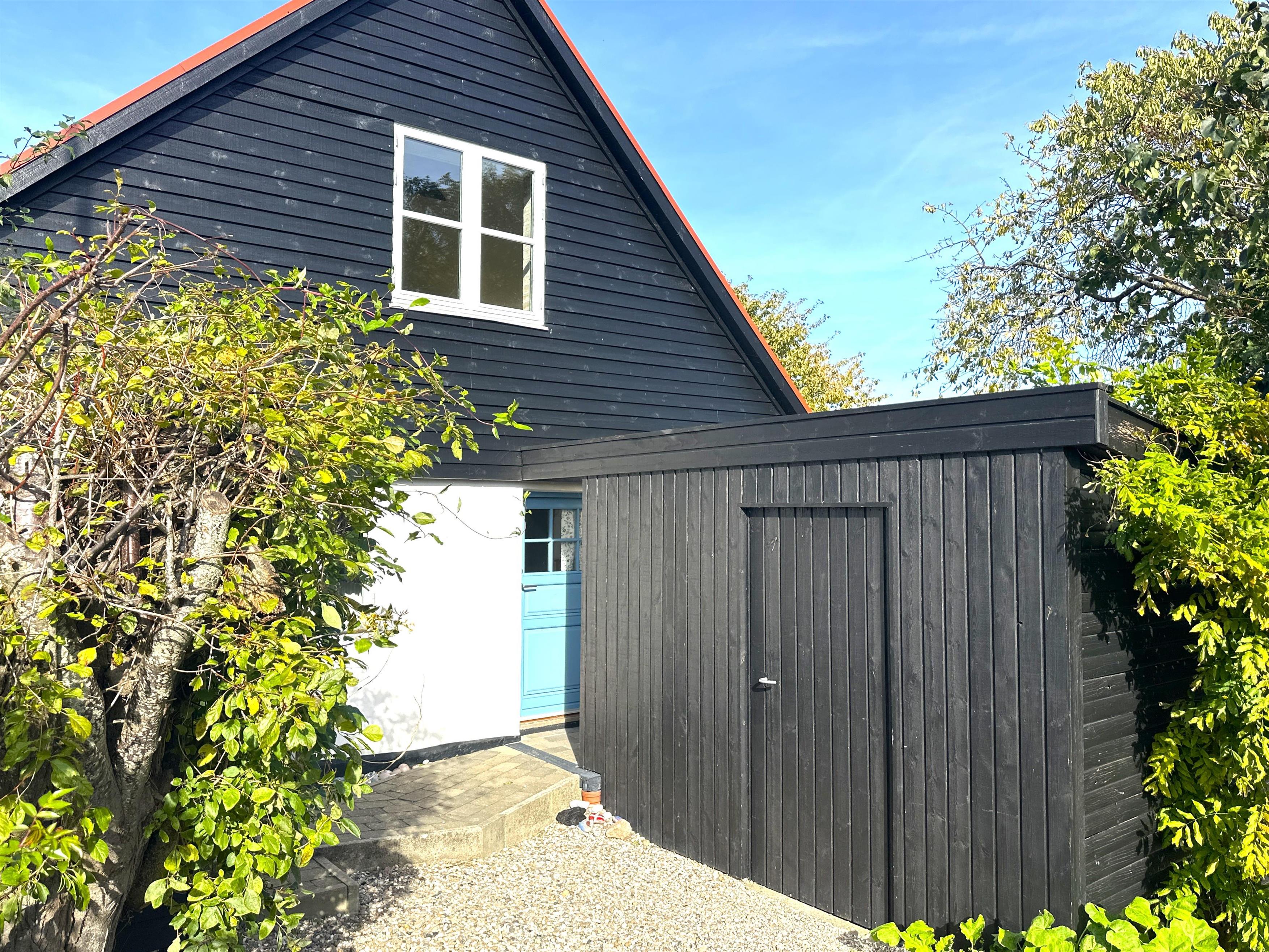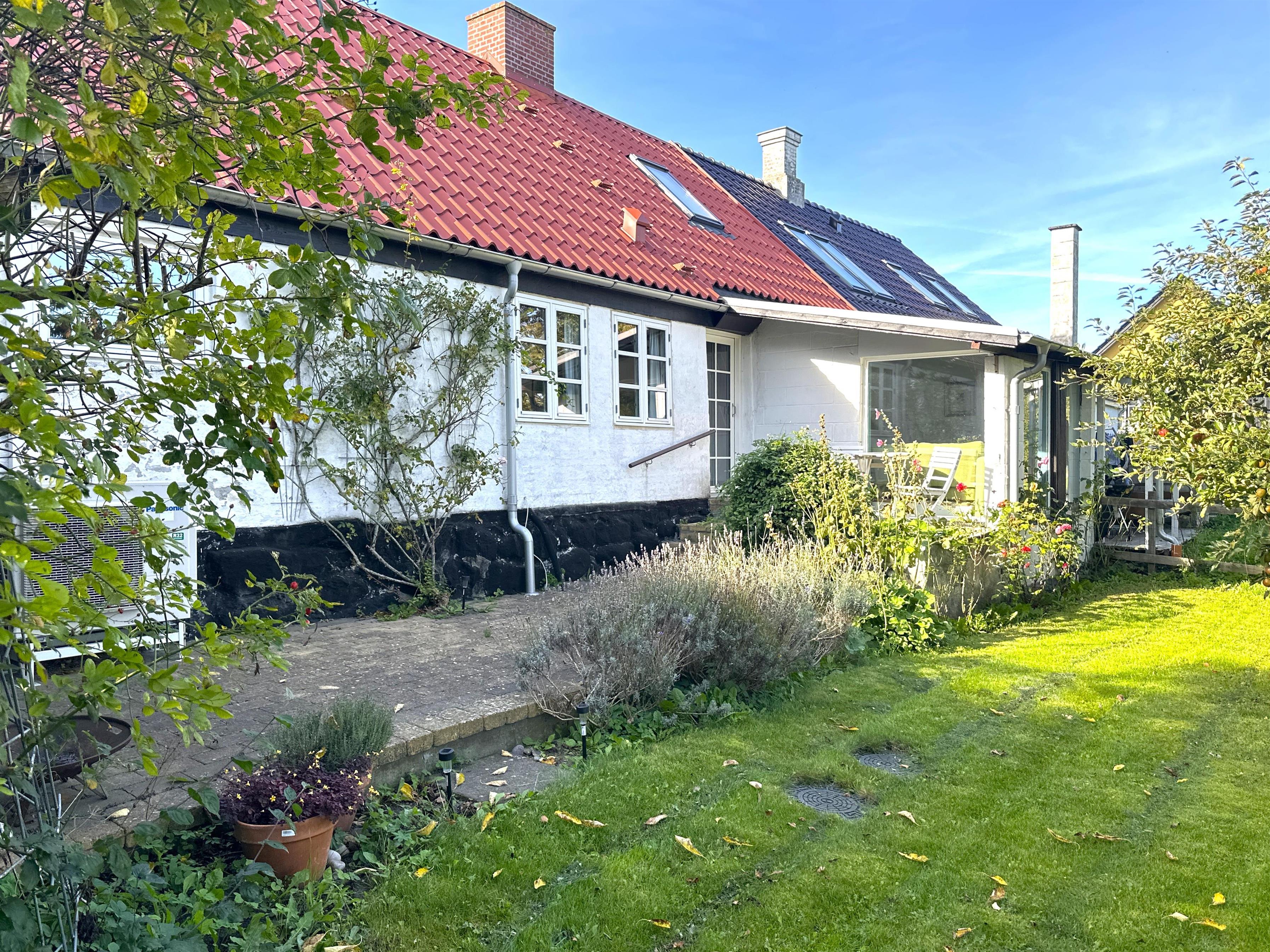 Terrasse med havemøbler og grill giver mulighed for udendørs ophold, både til frokosten om sommeren og til hyggelige aftener først og sidst på sæsonen. Haven og terrassen tilbyder ro, frisk luft og plads til leg eller afslapning.