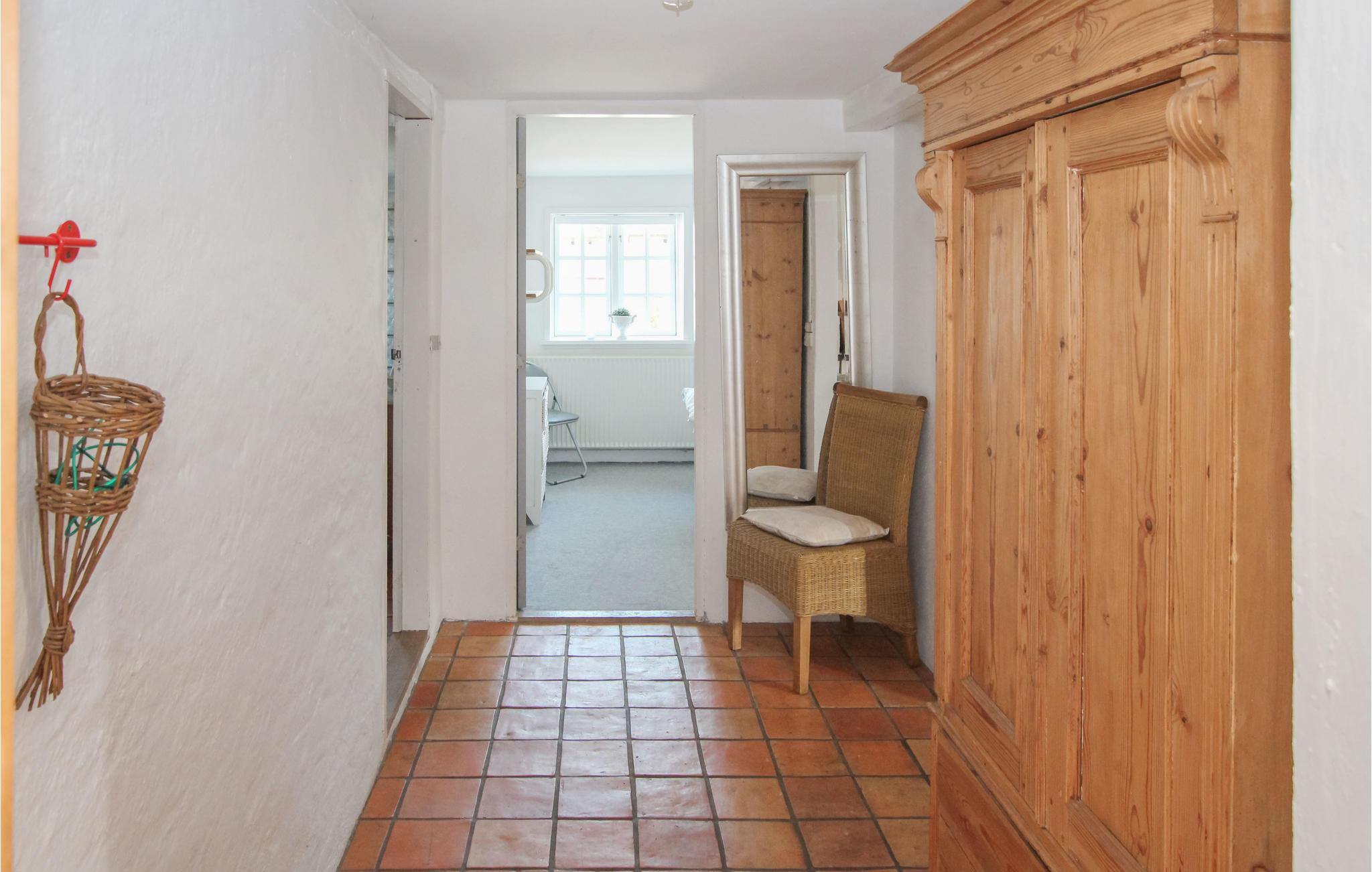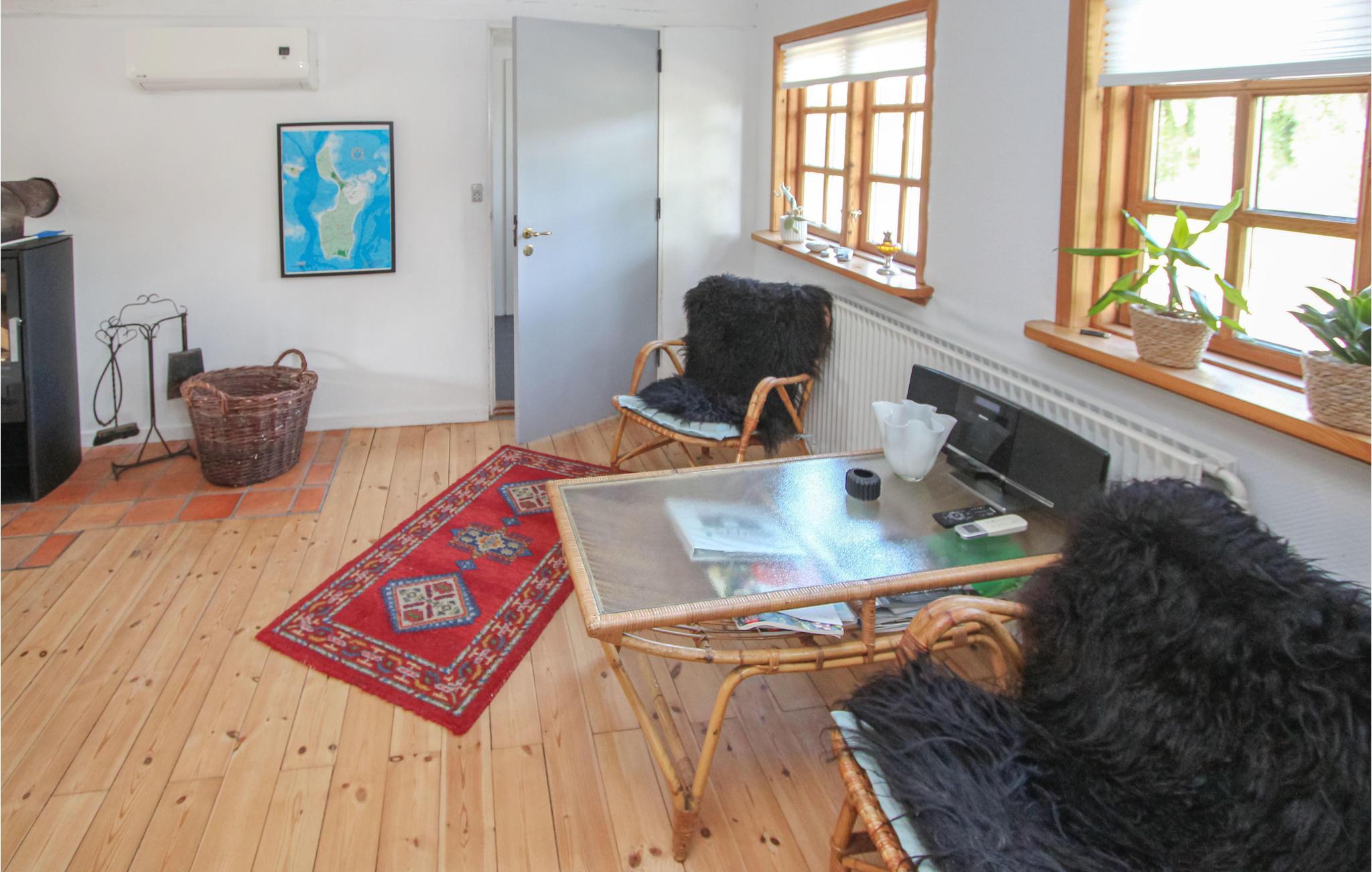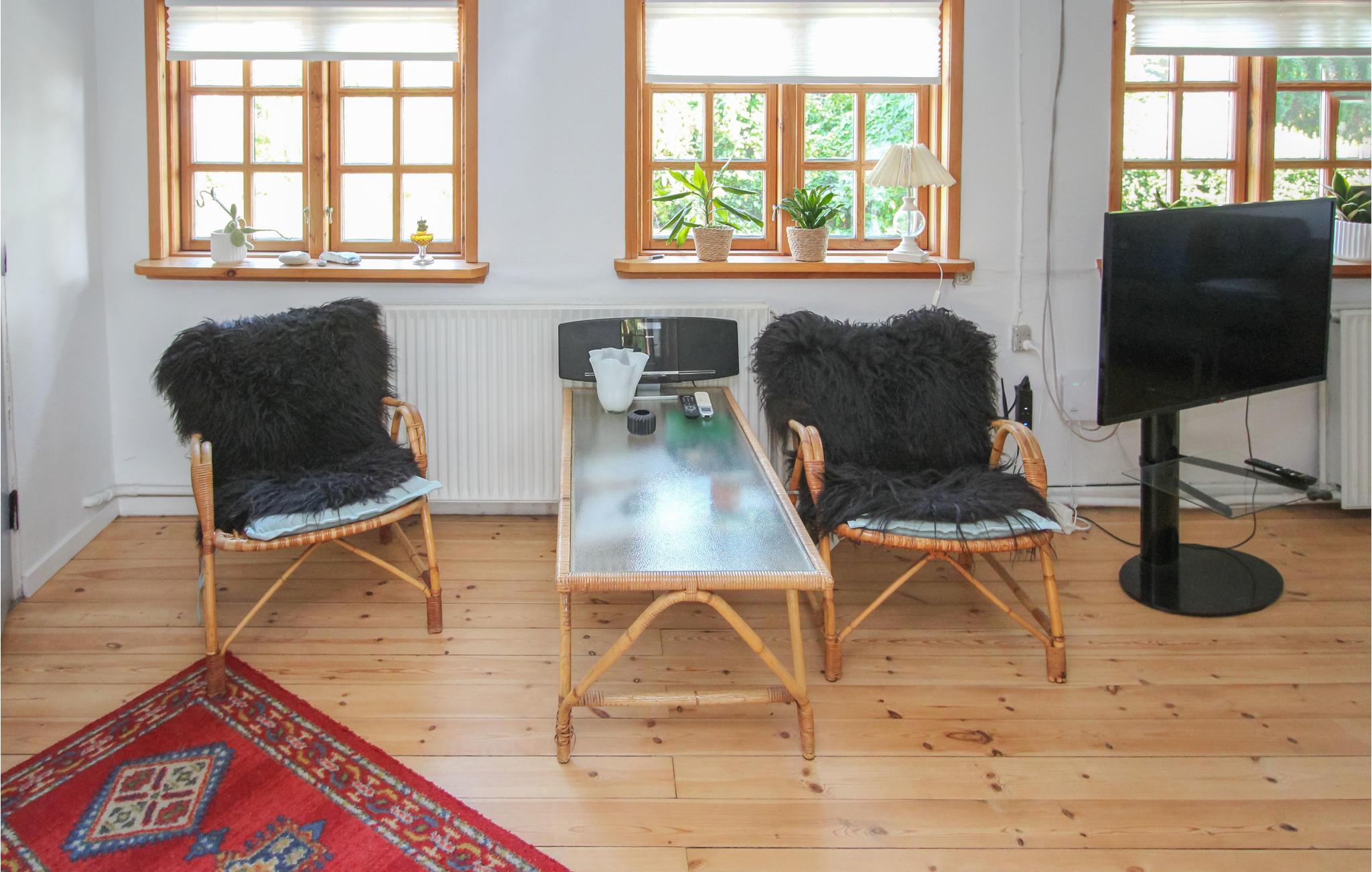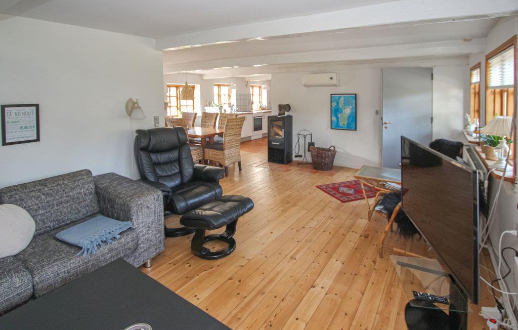Det indbydende sommerhus med stråtag byder jer velkommen på en smuk beliggenhed ved landsbyens dam. Husets er indrettet med smagfuldt design, hvor moderne og traditionelle elementer indgår i en vellykket blanding. En familie med børn vil føle sig hjemme her, og jeres firbenede ven kan også komme med på ferie. Nyd måltiderne sammen og de dejlige aftener med de knitrende flammer i brændeovnen.
