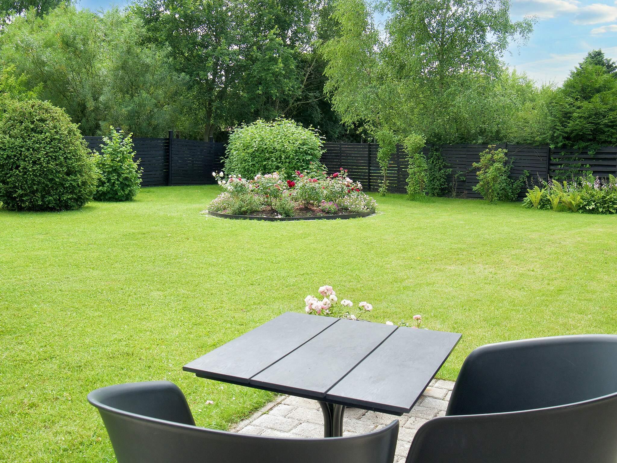 Haven, der er på godt 1.200 m², nyder solskin fra morgen til aften og er desuden helt afskærmet i en højde på mindst 170 cm. Huset er det sidste hus på en lukket sommerhusvej. Der er to parkeringspladser.