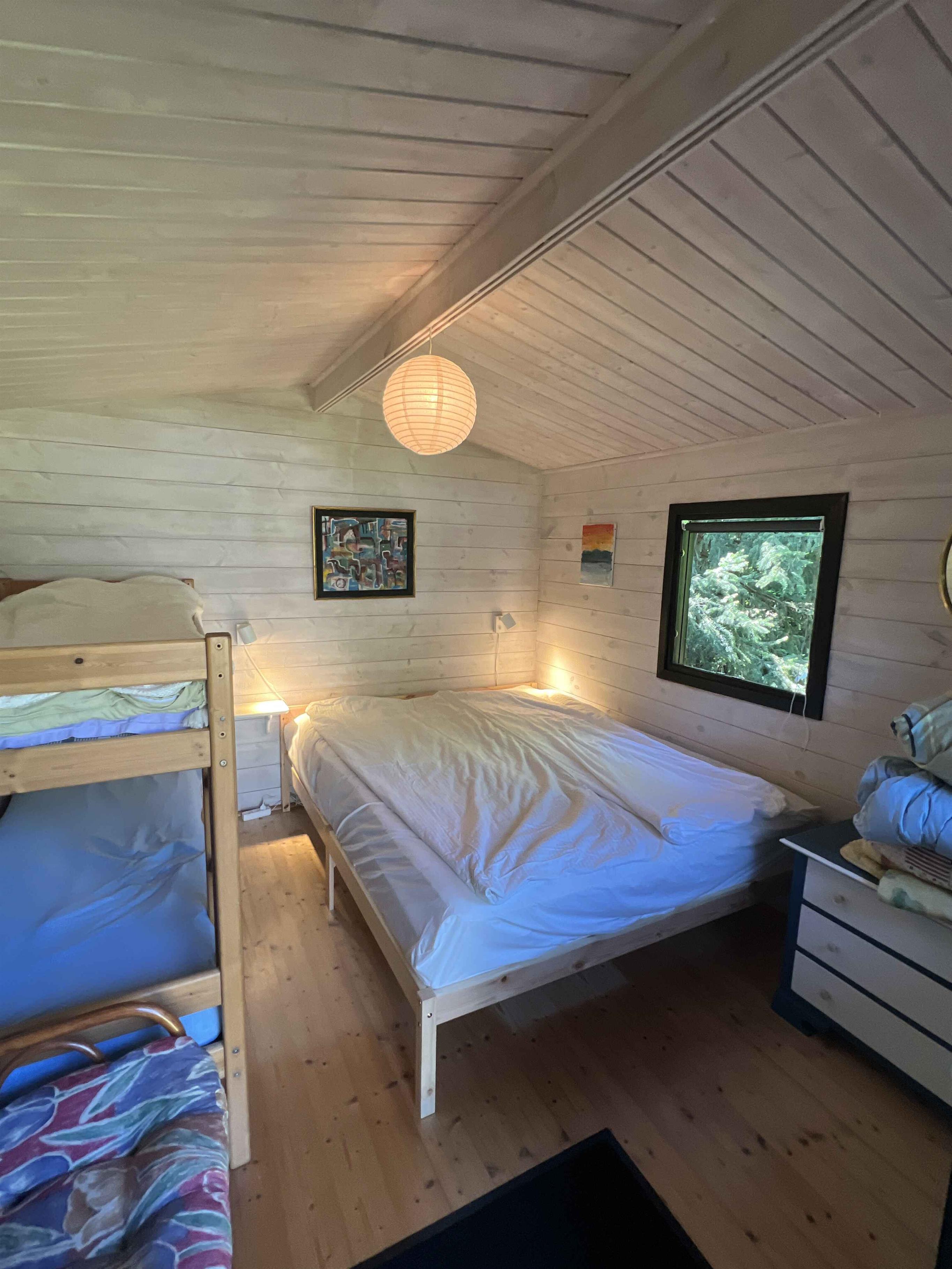 Hyggeligt nyrenoveret sommerhus på stor privat grund. 10 minutters gåtur til privat del af en af Danmarks bedste strande. Sommerhuset består af en hovedbygning med et soveværelse og bad, med to store terrasser (en overdækket). Derudover er der to hytter med et soveværelse hver. Der er i alt tre dobbeltsenge (nye 2025)(king, queen, queen) og en køjeseng. Så man kan komfortabelt være 8, incl. 2 er børn der vil sove i køjeseng. Veludstyret køkken med alt der skal bruges til at lave mad. (Kaffe, The, spisekammer m. krydderier). Udendørs møbler og solsenge. Diverse legetøj: Bolde, Badminton, kroket, Sandlegetøj, vandpistoler. Der er også en trækvogn til at bære sandlegetøj håndklæder mm. til stranden. Området byder på mange opleveleser: Smuk natur, Jættestuer, Havnebyen, Nykøbing sj. Sommerland Sjælland, Odshærred golfklub mm. Gudmindrup Strand er en af Sjællands bedste spots for Kitesurfing. 3 min i bil til indkøb (Rema Lumsås, SuperBrugsen Højby)