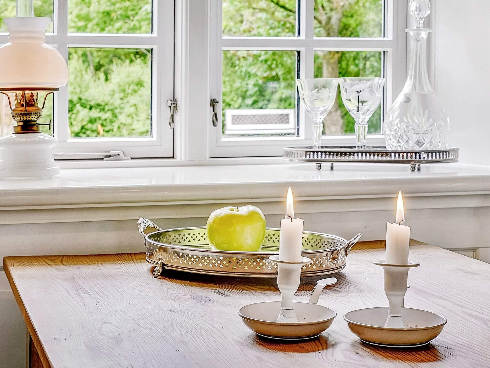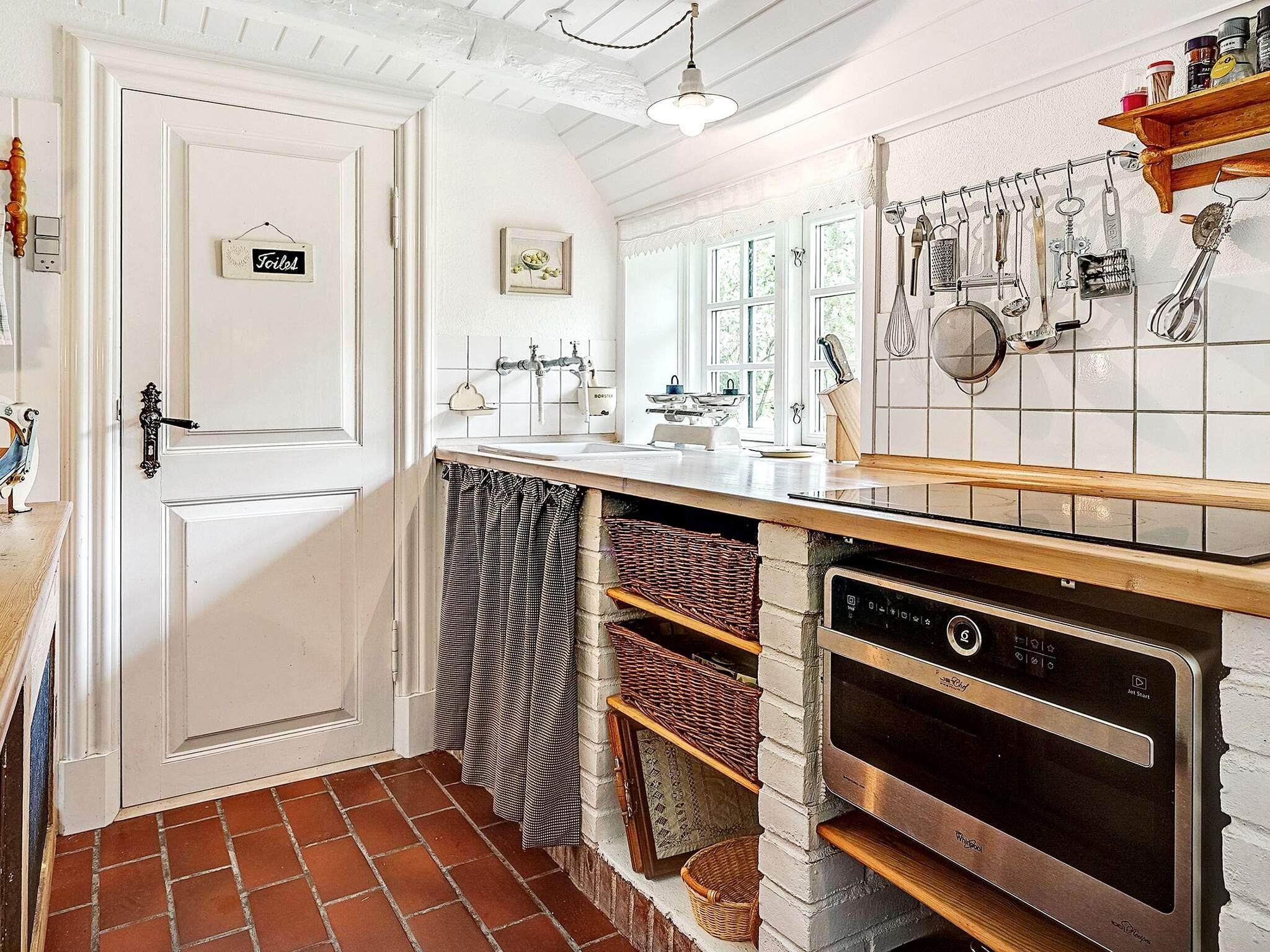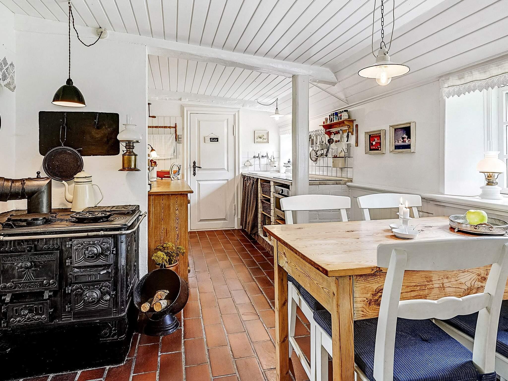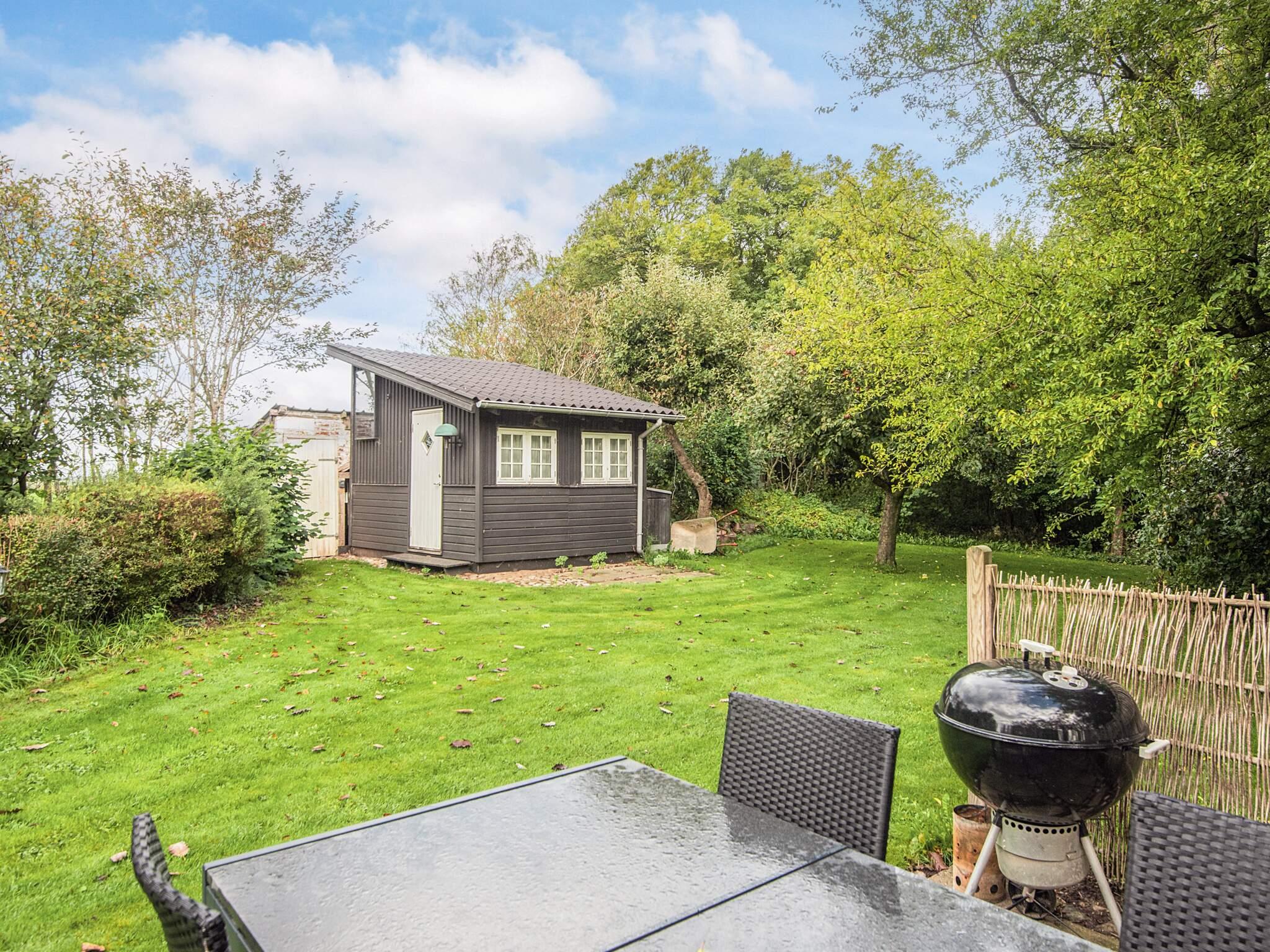 Udenfor er en dejlig have med frugttræer og en terrasse, hvor der er grill og havemøbler. Huset ligger fuldstændig ugenert for enden af markvej ud til åbne marker. Den antikke kakkelovn, må ikke benyttes. Udlejes ikke til ungdomsgrupper.