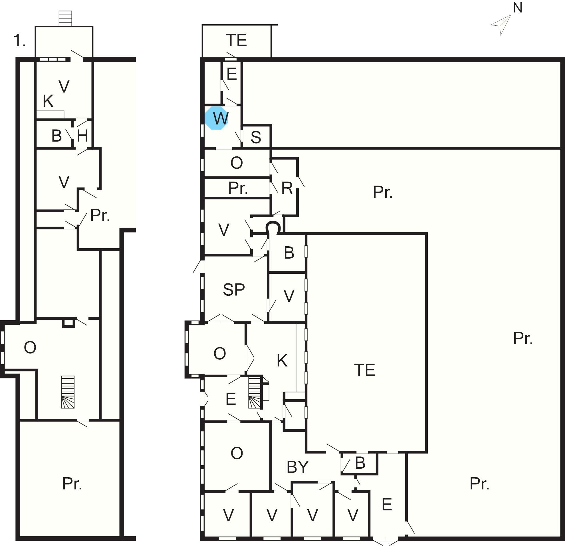 8 Soveværelser: (1DS)+(2S)+(2S)+(1DS)+(1DS)+(1DS)+(1DS)+(2S)