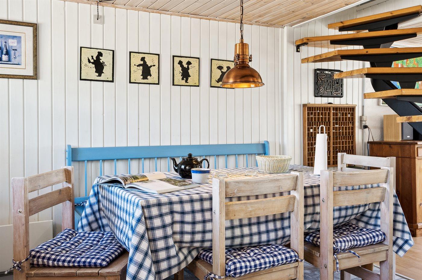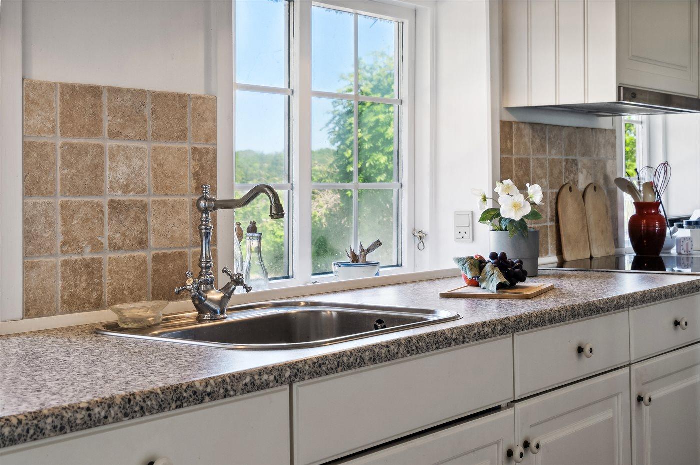 Køkkenet er udstyret med 1 køleskab. Der er 4 keramiske kogeplader, varmluftovn.